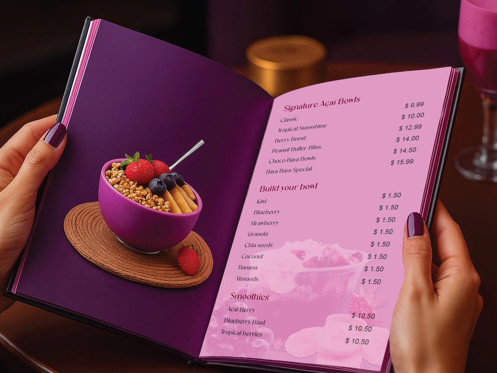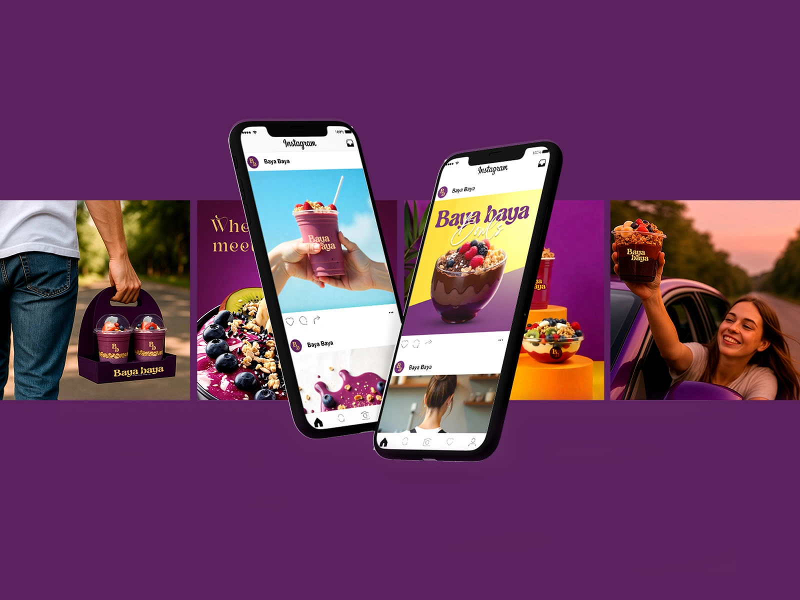 Baya Baya is a bold, tropical-inspired açaí bowl brand that celebrates rhythm, color, and wholesome goodness. Designed as a joyful retreat for modern eaters, the brand merges retro flair with tropical freshness inviting customers to indulge in a flavorful escape with every bowl.
