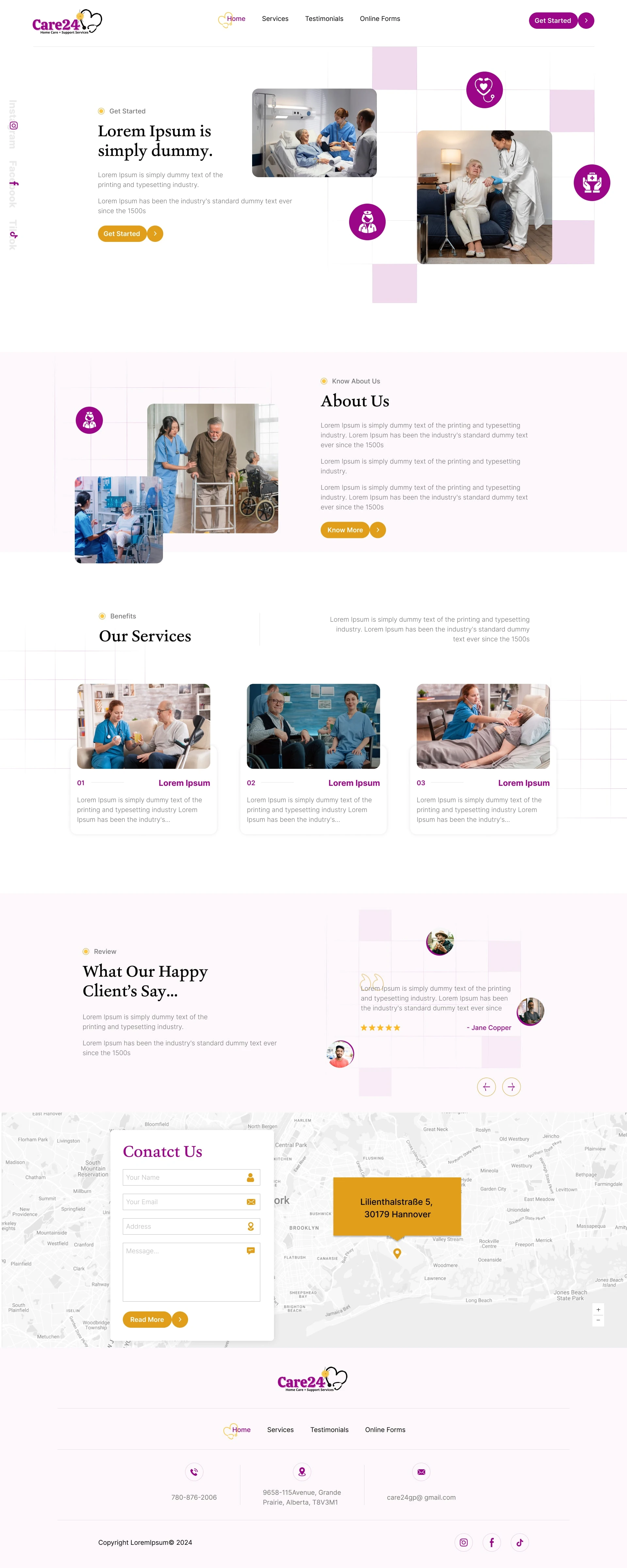 Designed a clean and compassionate website for a home health care and support services provider. The layout features a welcoming hero section, service highlights, testimonials, and a clear contact flow to build trust with users. Soft color tones, friendly imagery, and clear typography were used to create an approachable, user-friendly experience while ensuring smooth navigation and accessibility across all devices.