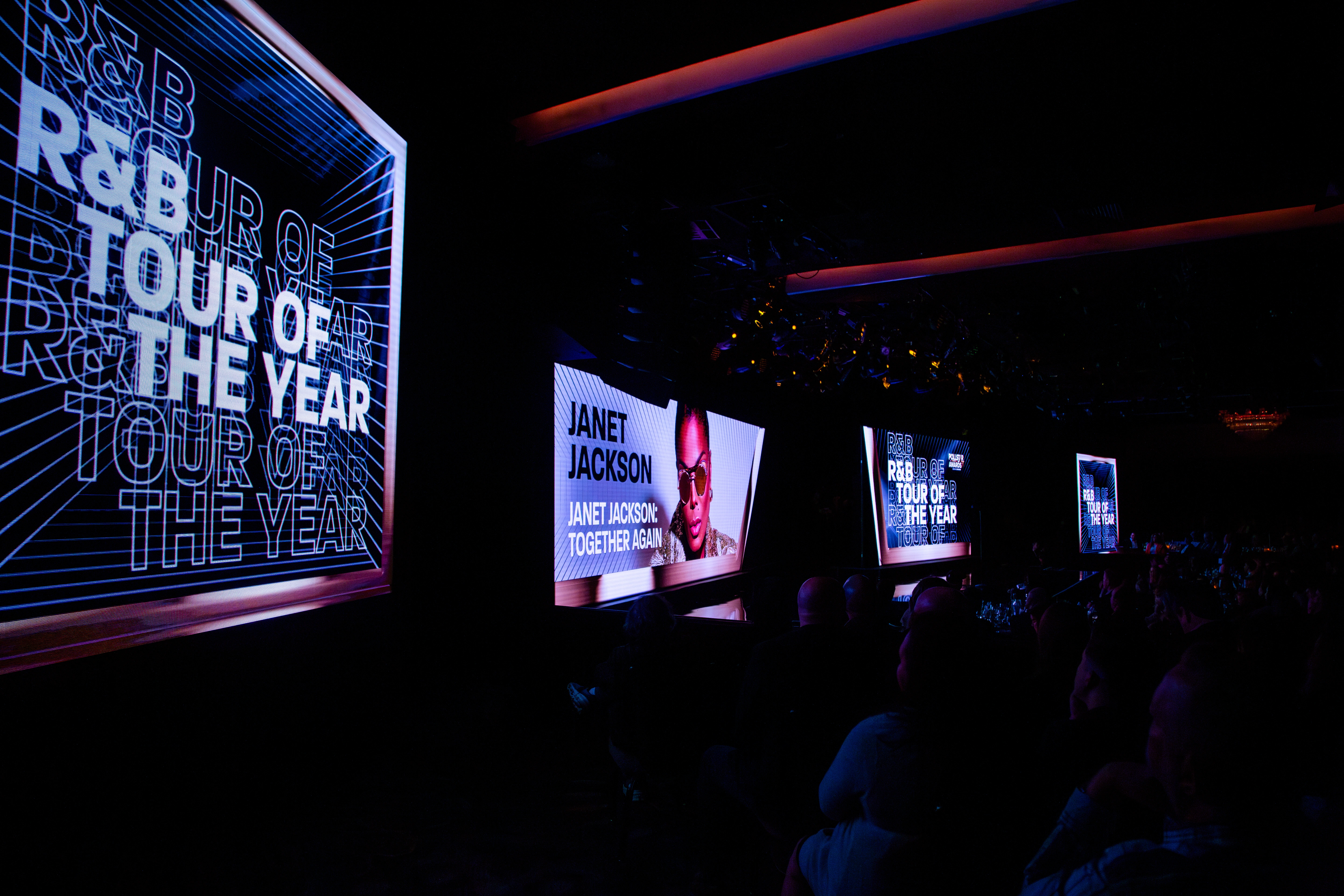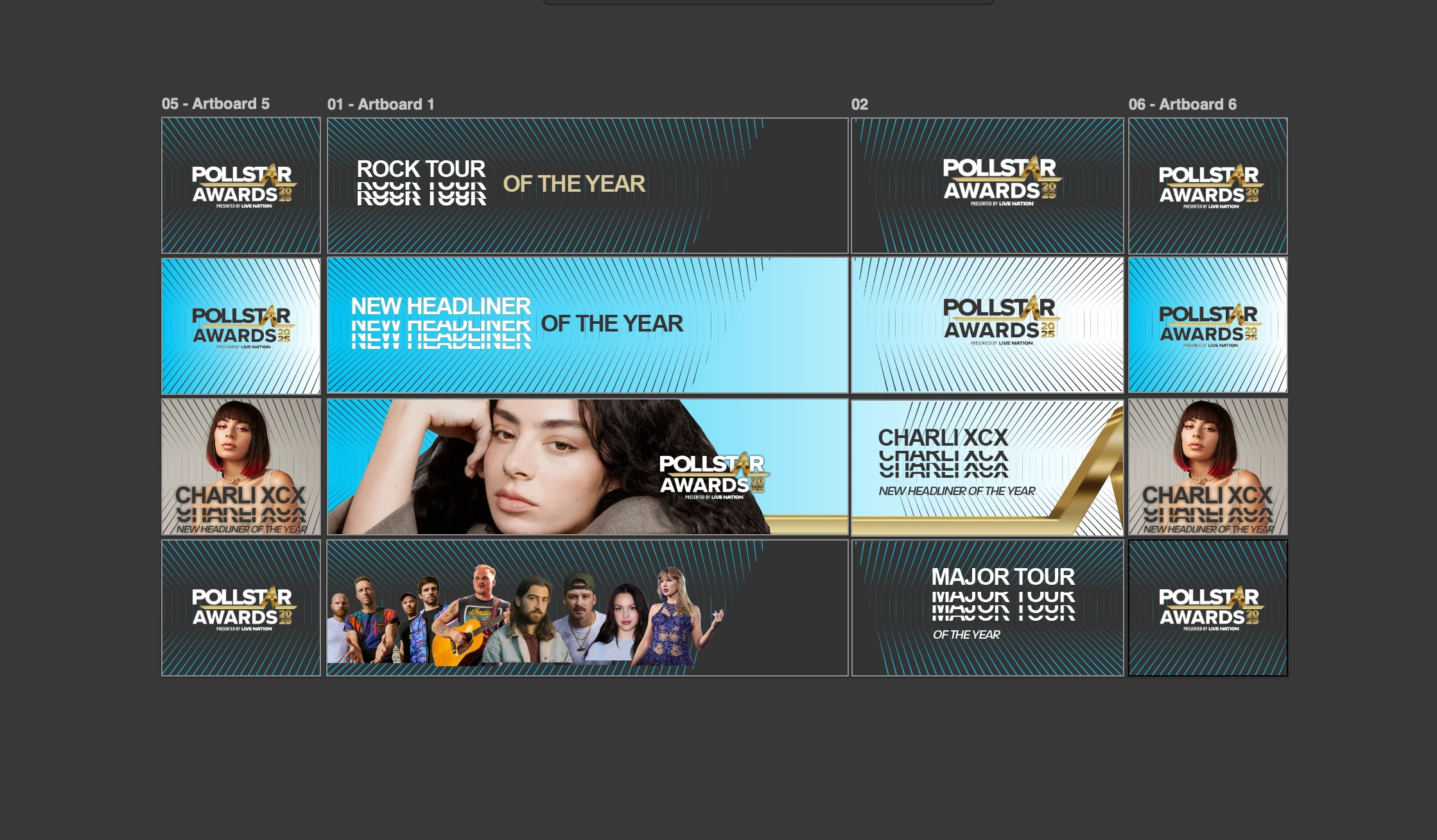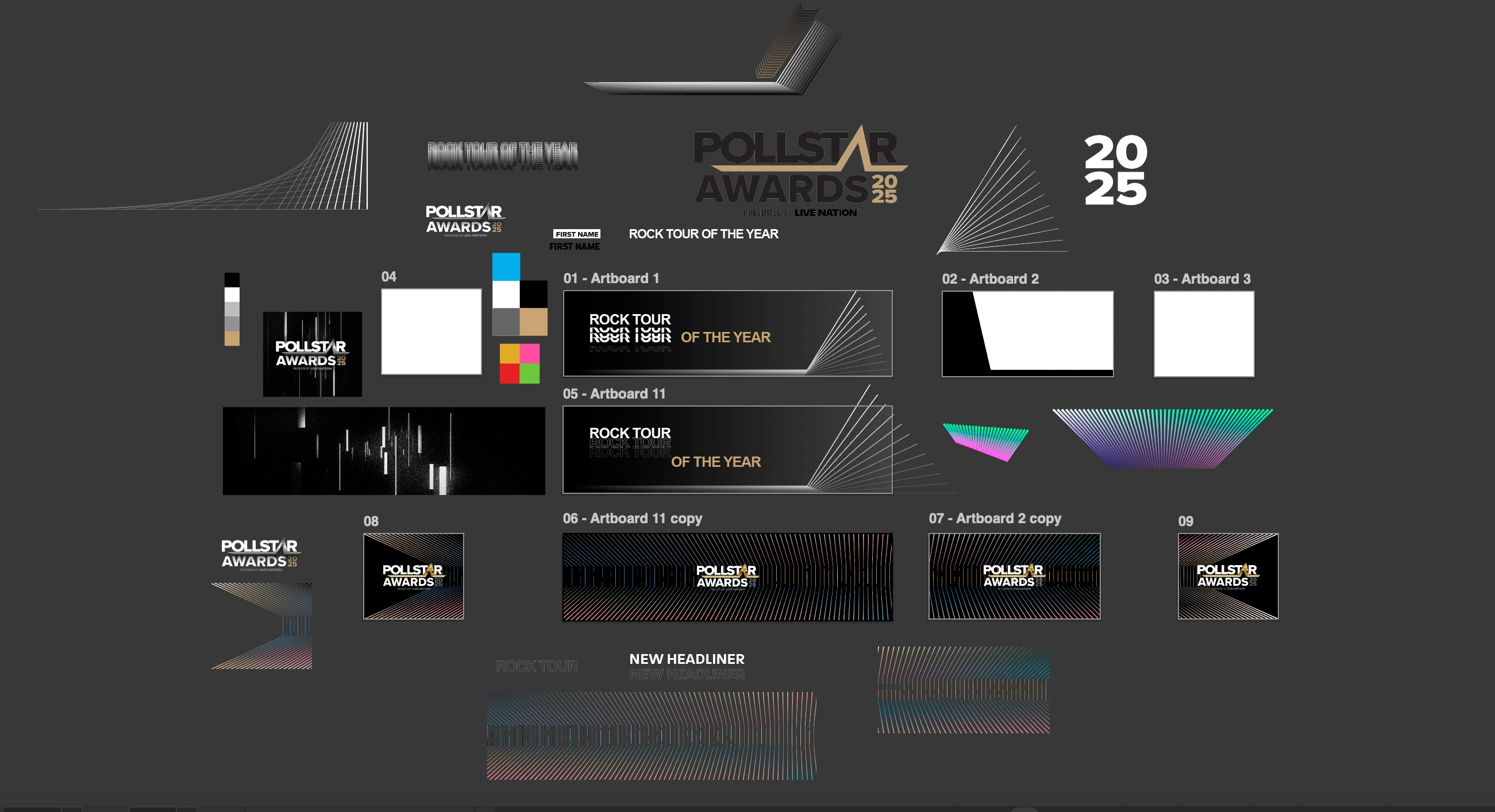 Following the static design phase, motion designer Fabiana Fonseca developed transitions and animations that brought the screen graphics to life. These motion pieces added dynamic energy to the visual systems, creating seamless transitions between nominee reveals, winner announcements, and category presentations. The animations were carefully crafted to maintain legibility across dual-screen configurations while enhancing the celebratory atmosphere of the live event, with timing considerations that accommodated the rapid pace of the awards ceremony.