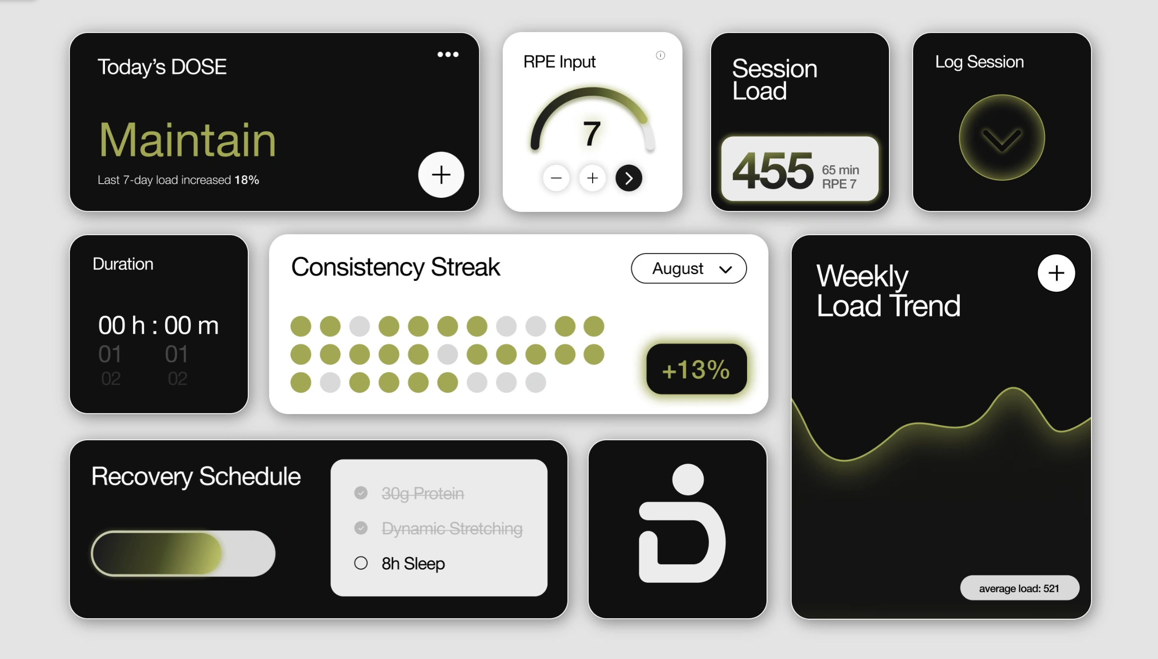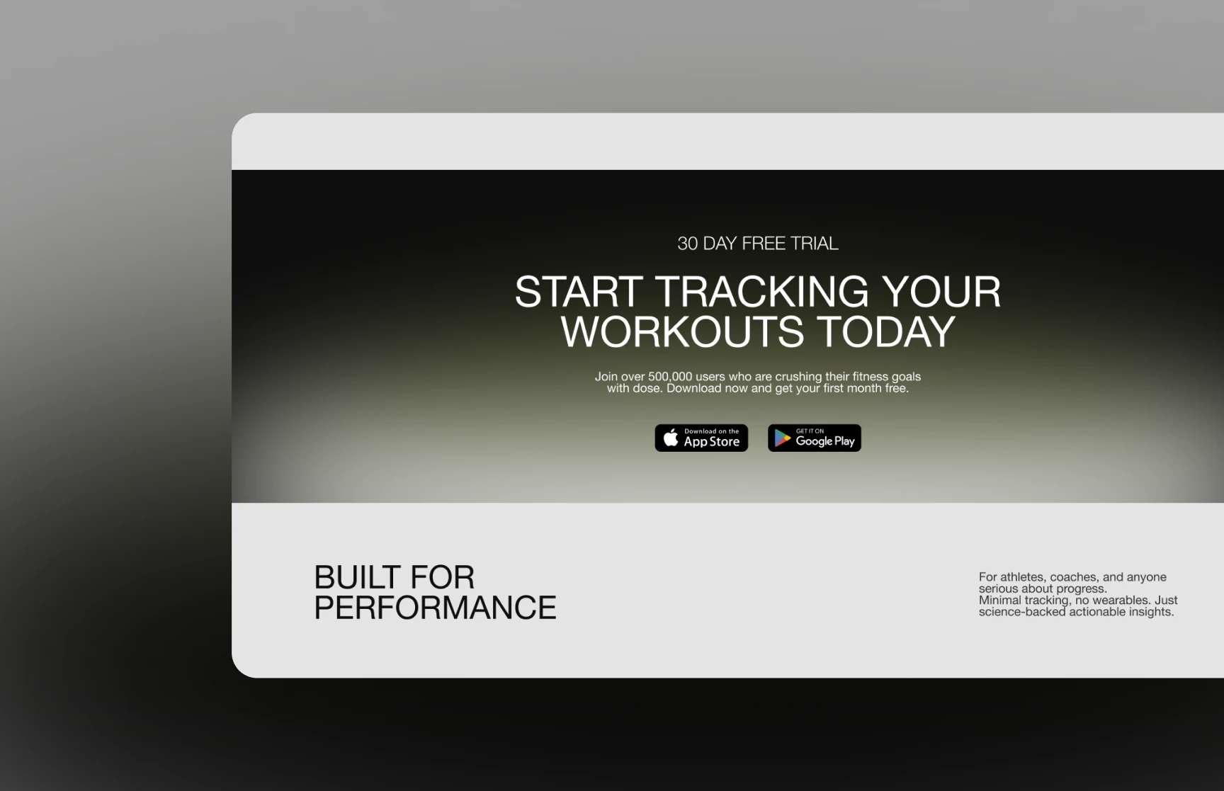DOSE is a training load app that helps athletes train smarter, not harder. I designed the full brand, UI, and landing experience around clarity and performance.