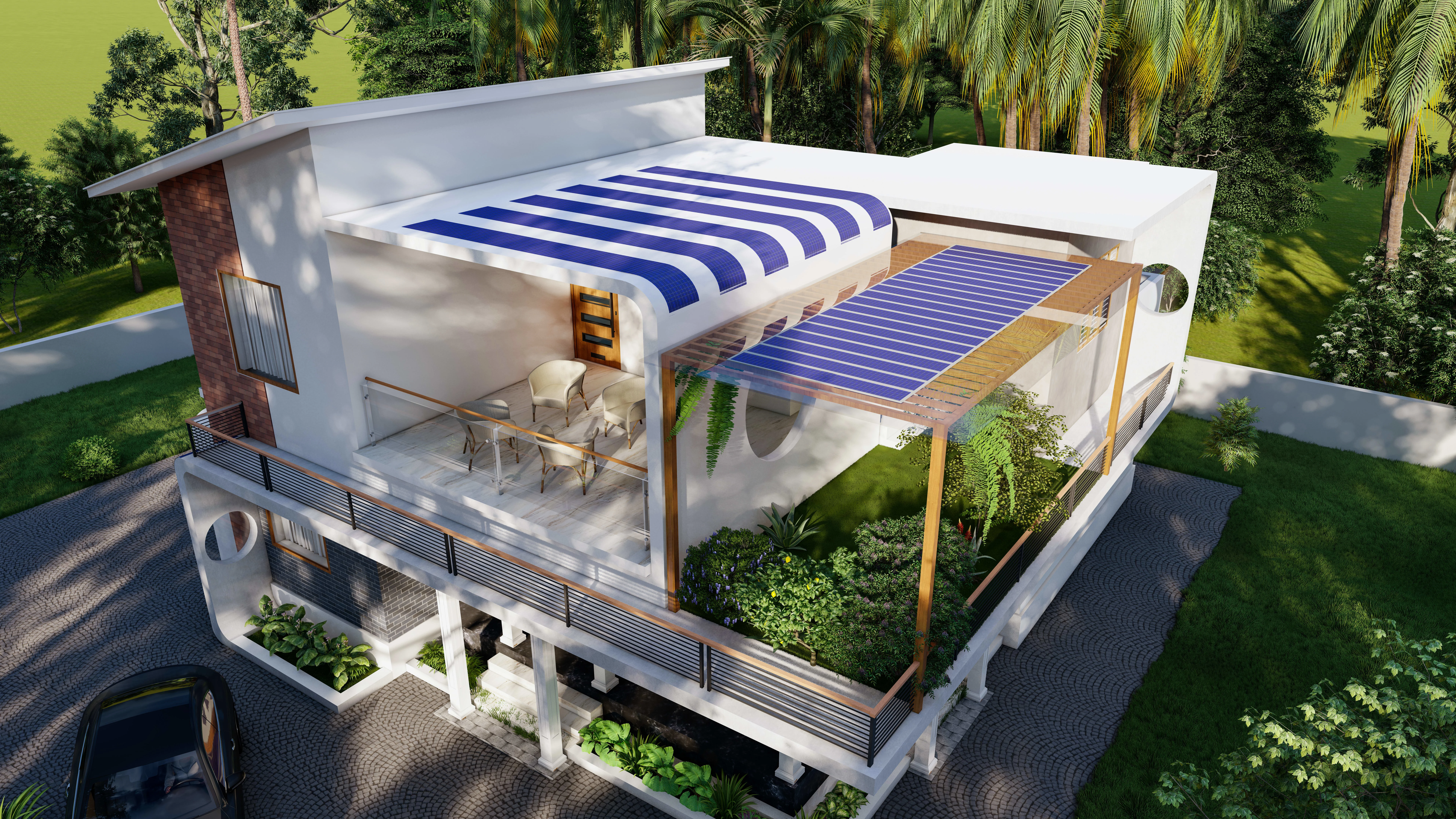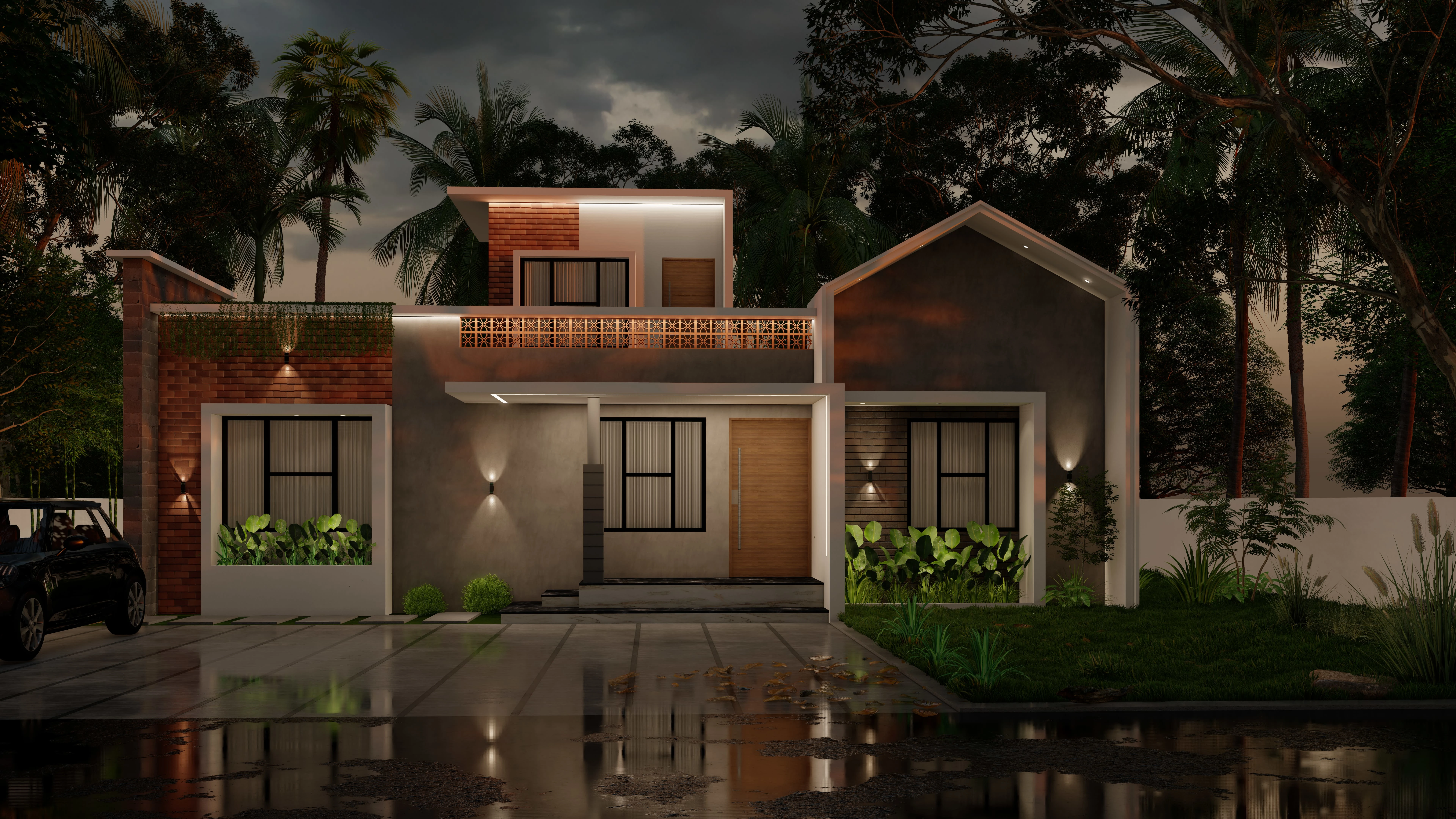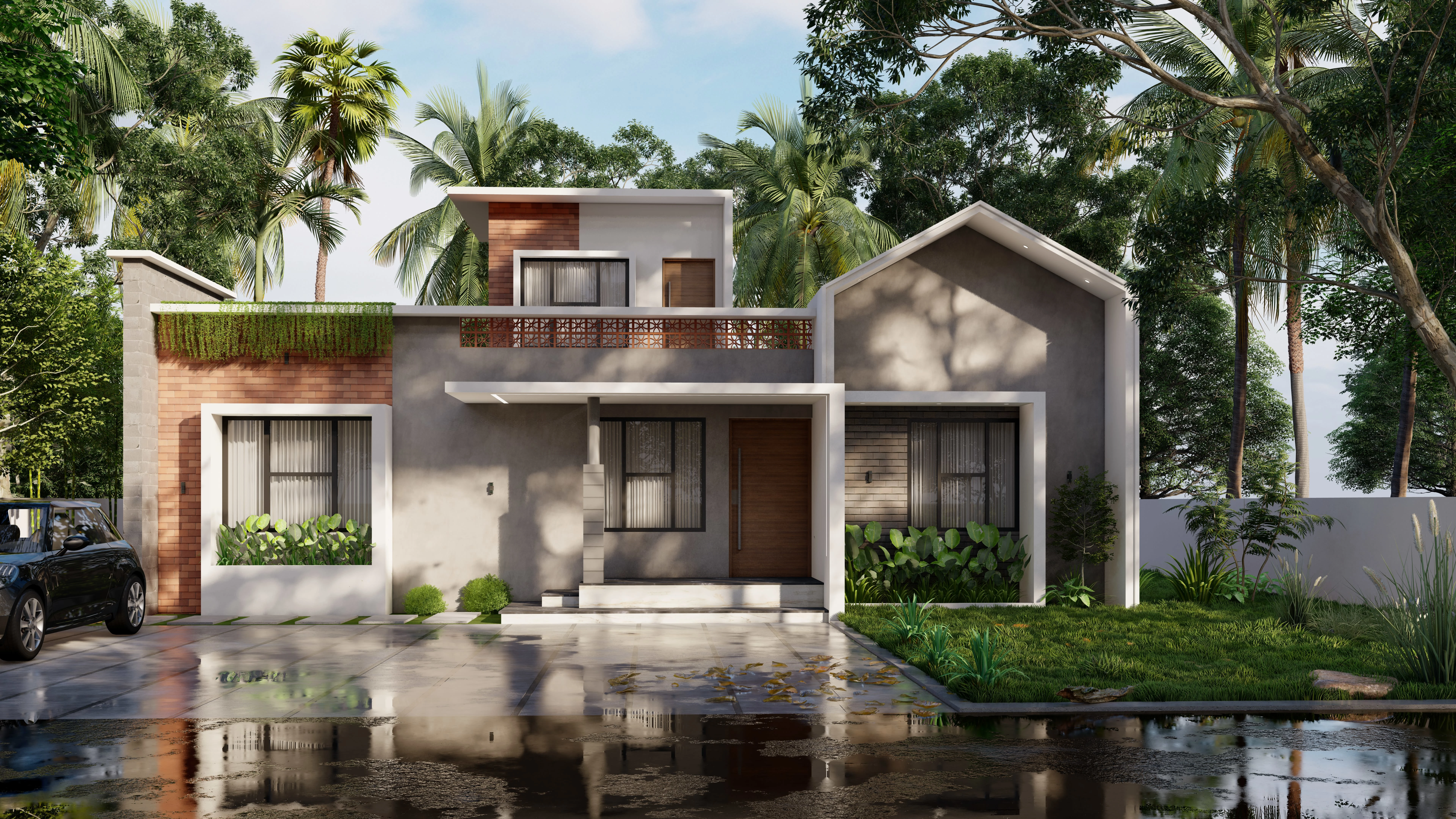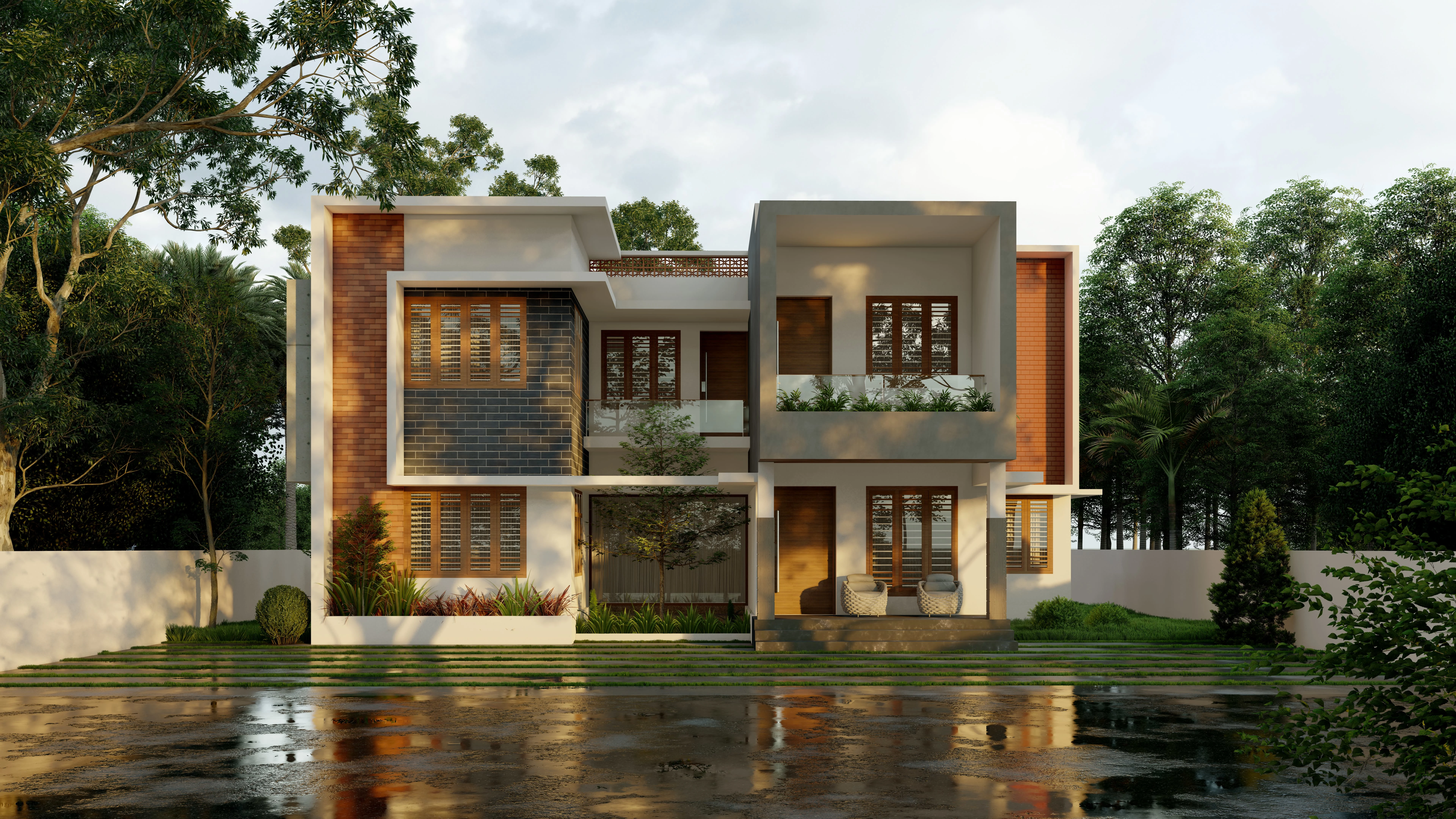 Produced photorealistic renderings of a residential building exterior, highlighting key architectural features and landscaping design choices.