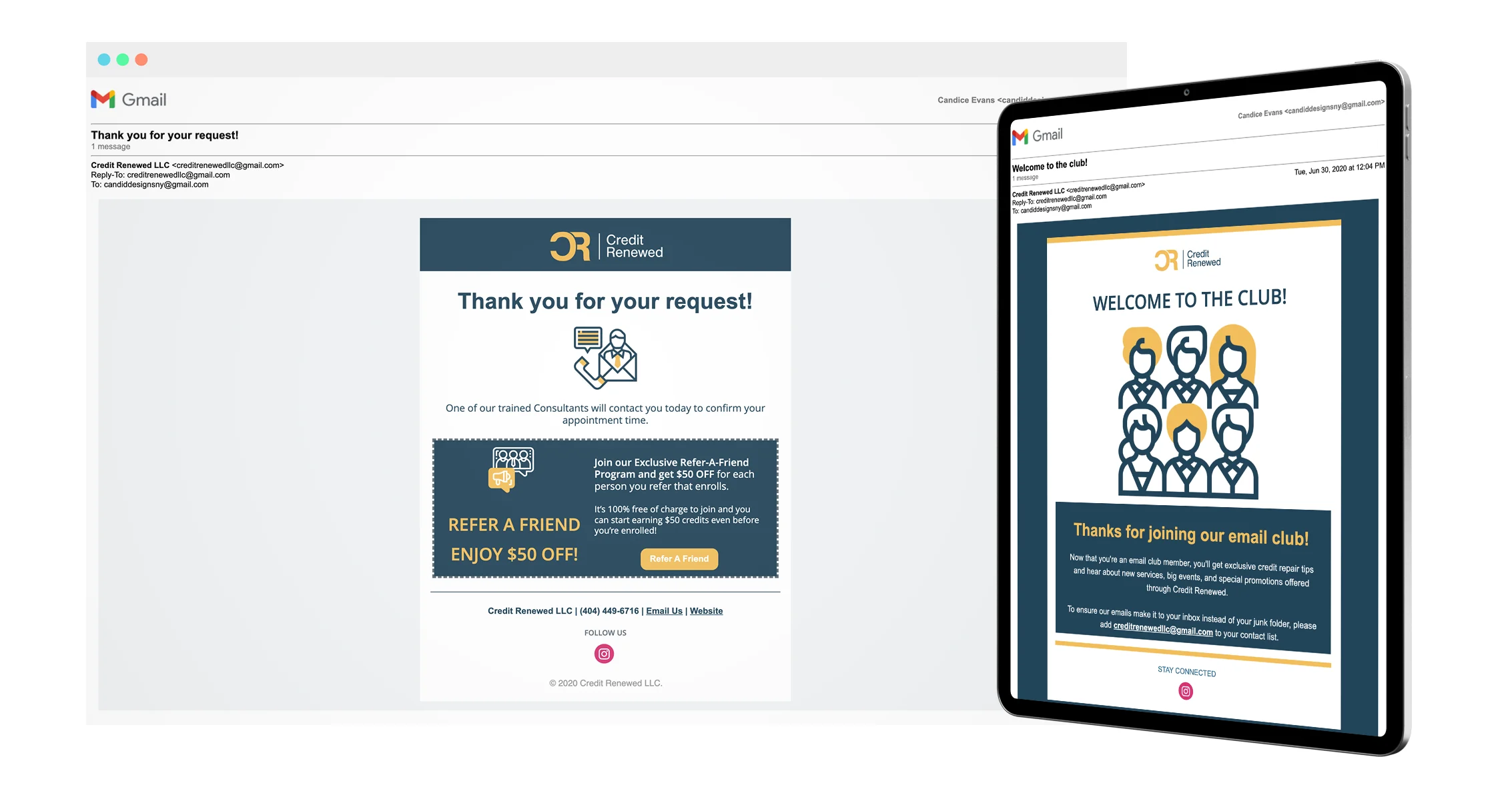 We worked with Credit Renewed to redesign their website utilizing the Wix Platform with provided content from their partner site and develop a effective newsletter campaign to capture and retain new leads from website inquiries.