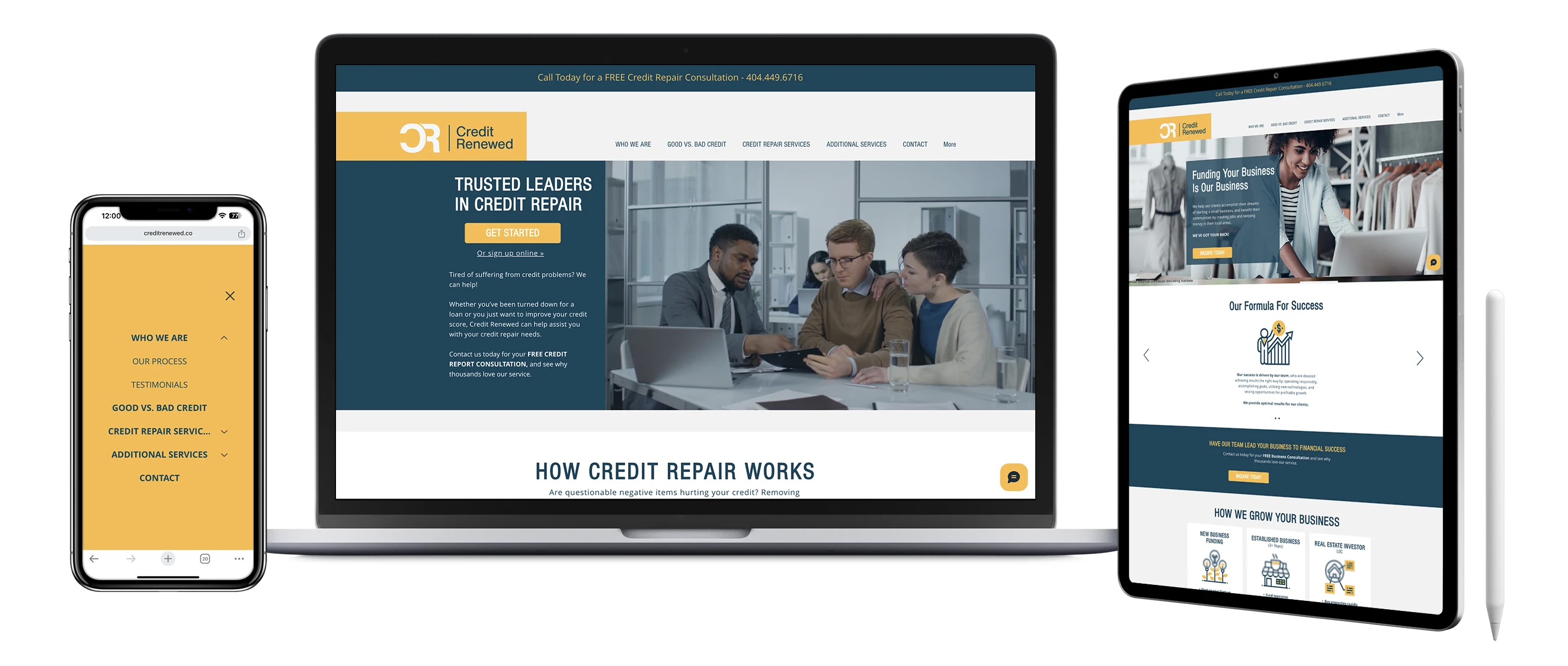 The goal of the redesign is to allow Credit Renewed to increase awareness of their credit repair and business/personal funding services to their target audience, including positioning their brand apart from their competition. Additionally, all aspects of the new site design took into consideration the need for a mobile-friendly platform, giving customers a better user experience.