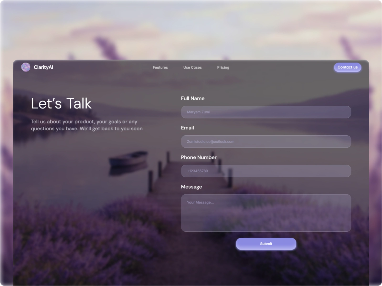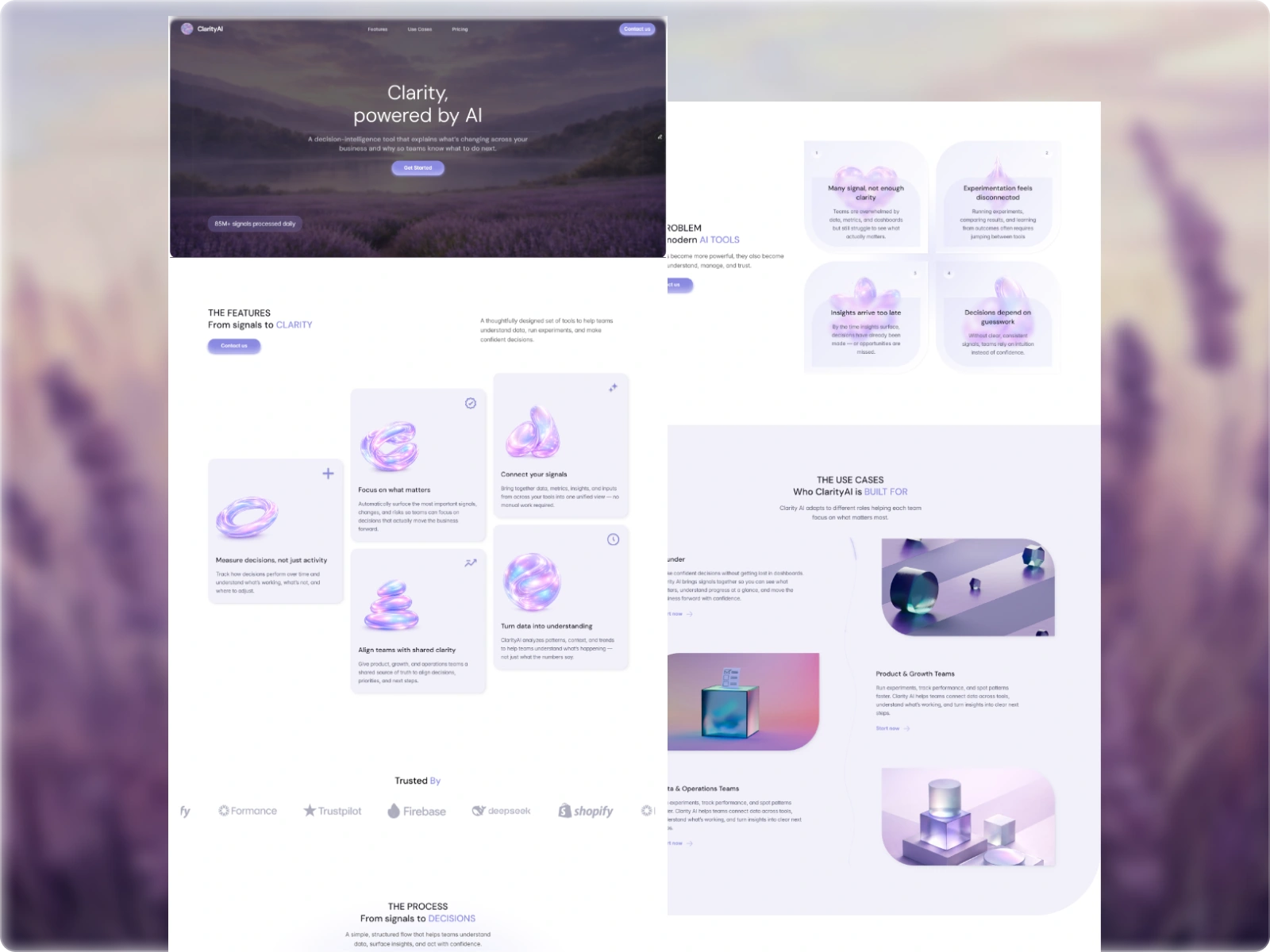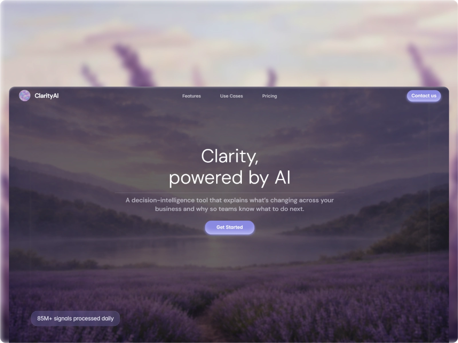 The hero section was designed to communicate value instantly. Instead of technical AI jargon, the focus is on clarity and decision support. The layout emphasizes a single promise, a concise explanation, and a strong primary call to action. Background visuals support the mood without distracting from the message, reinforcing trust and credibility from the first scroll.