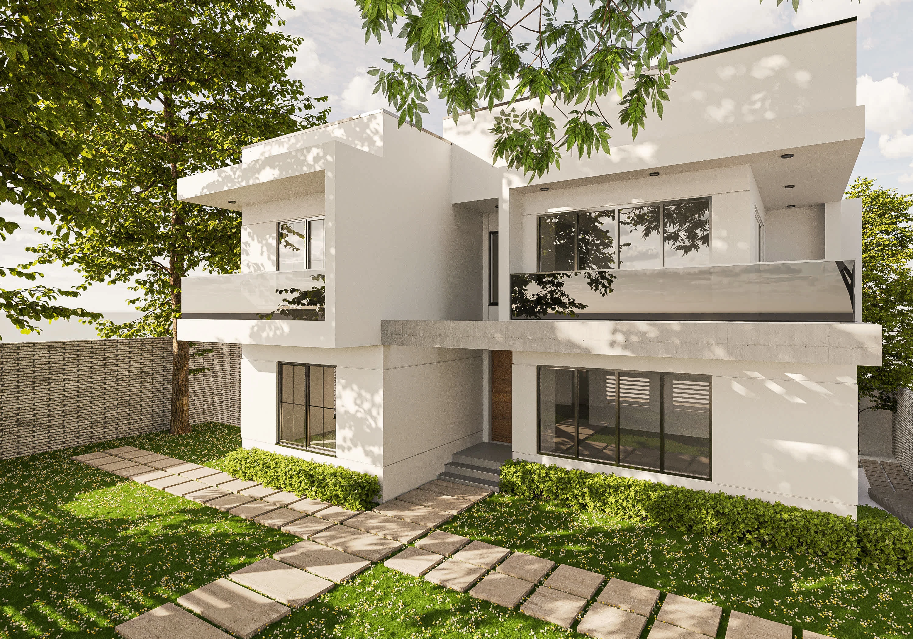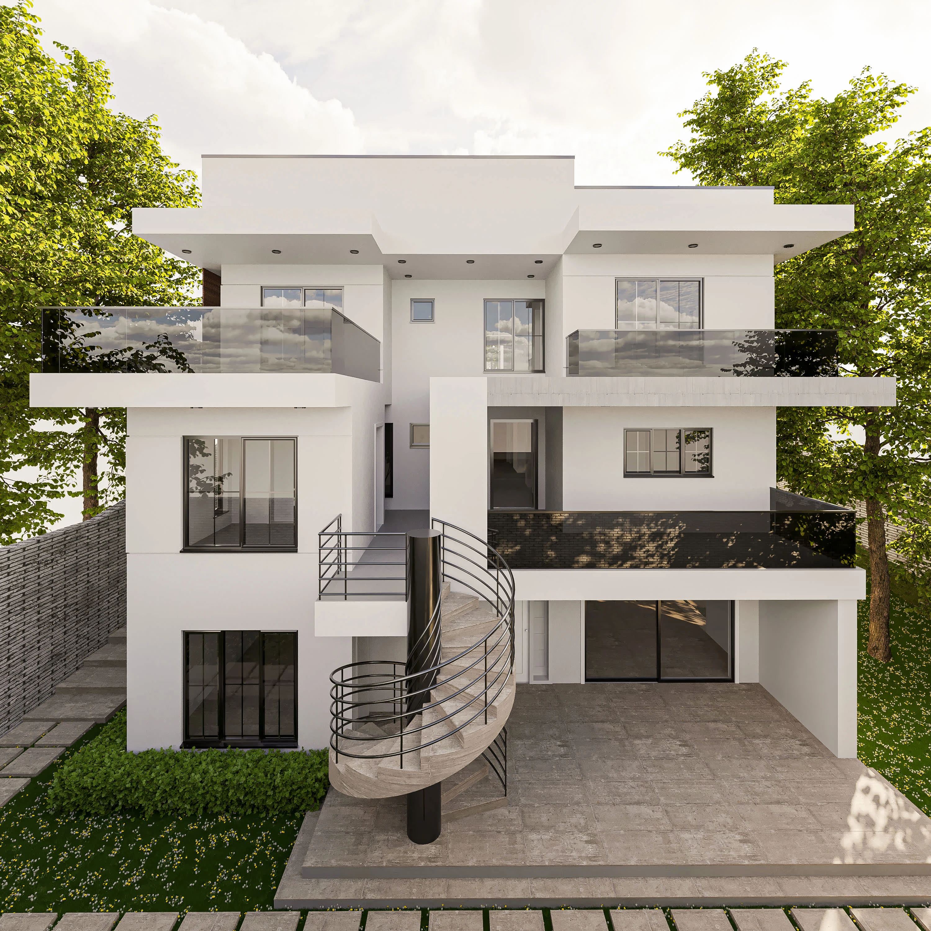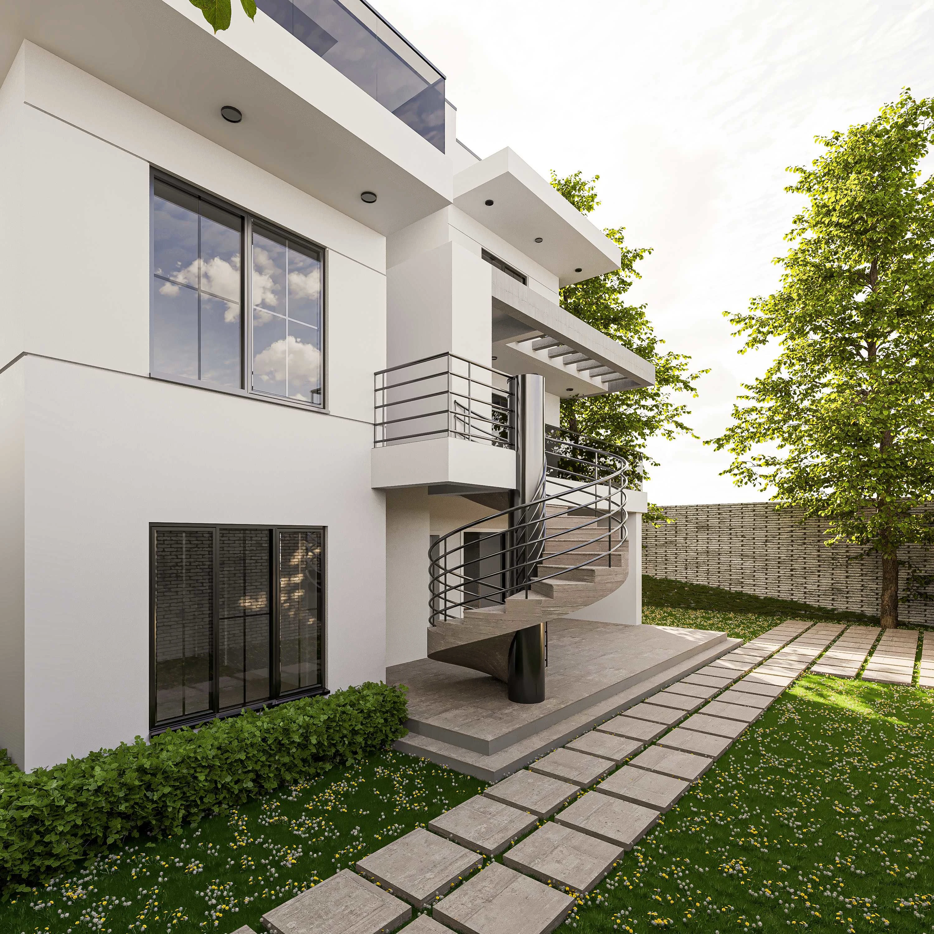 White residential house exterior design.
