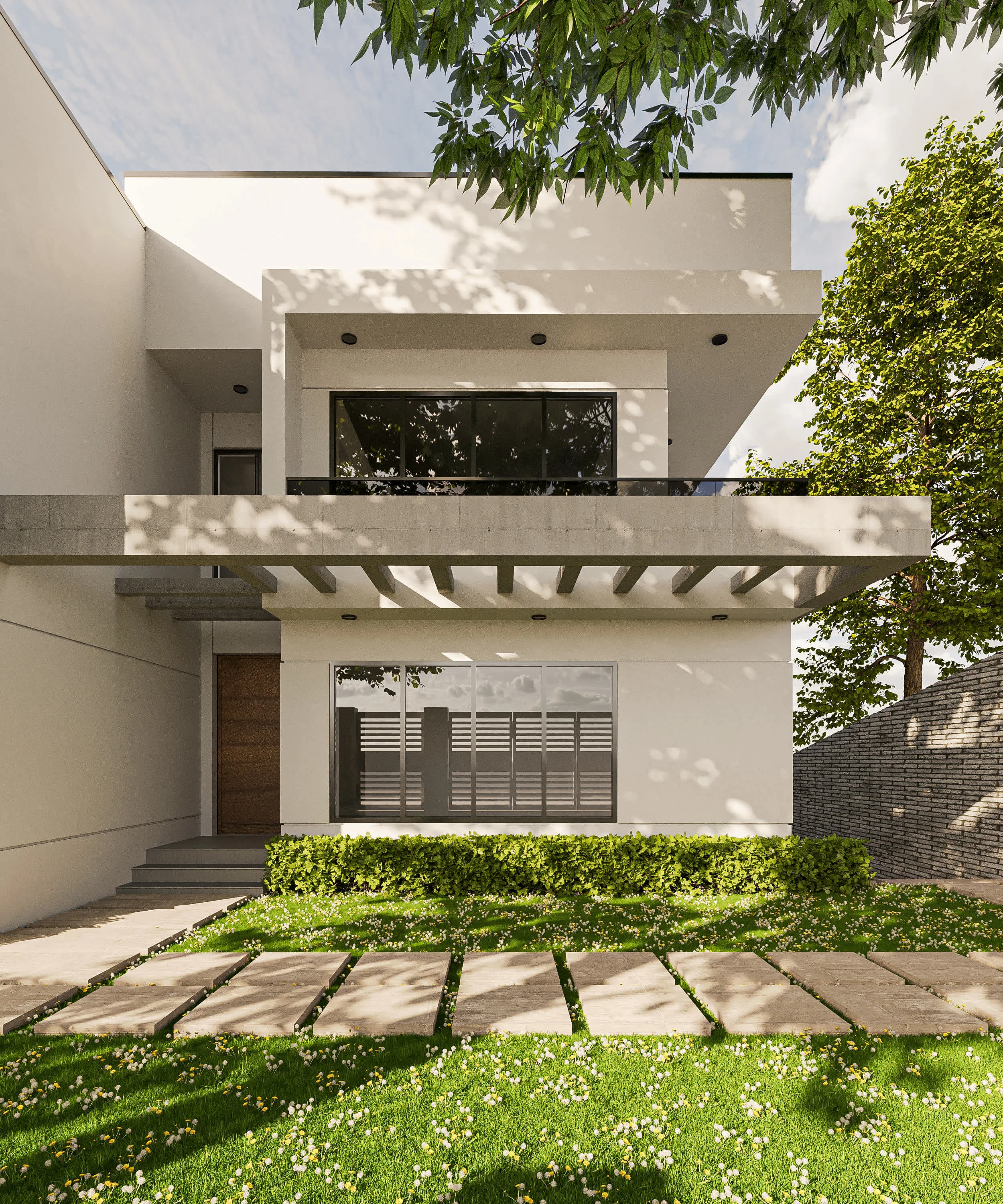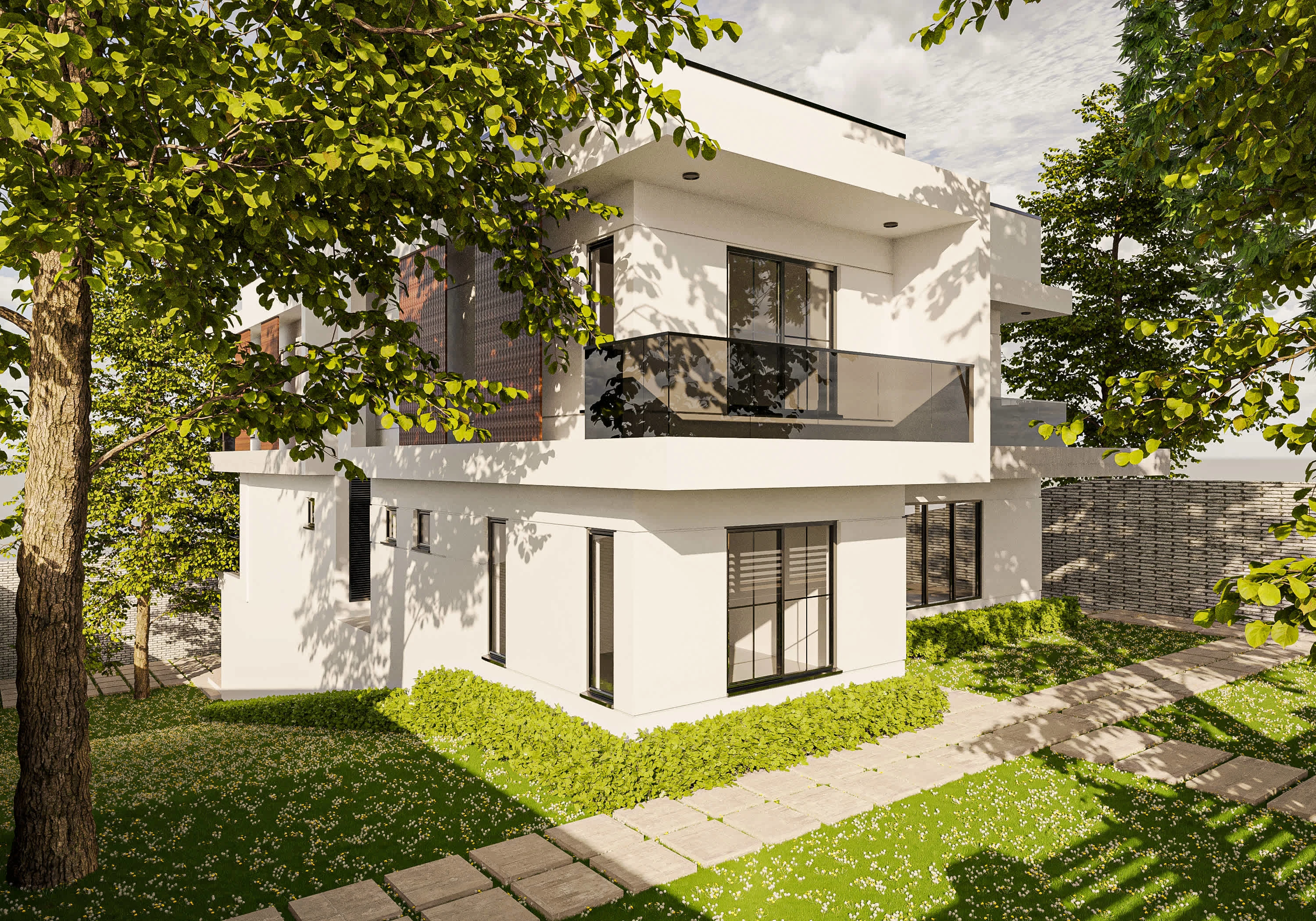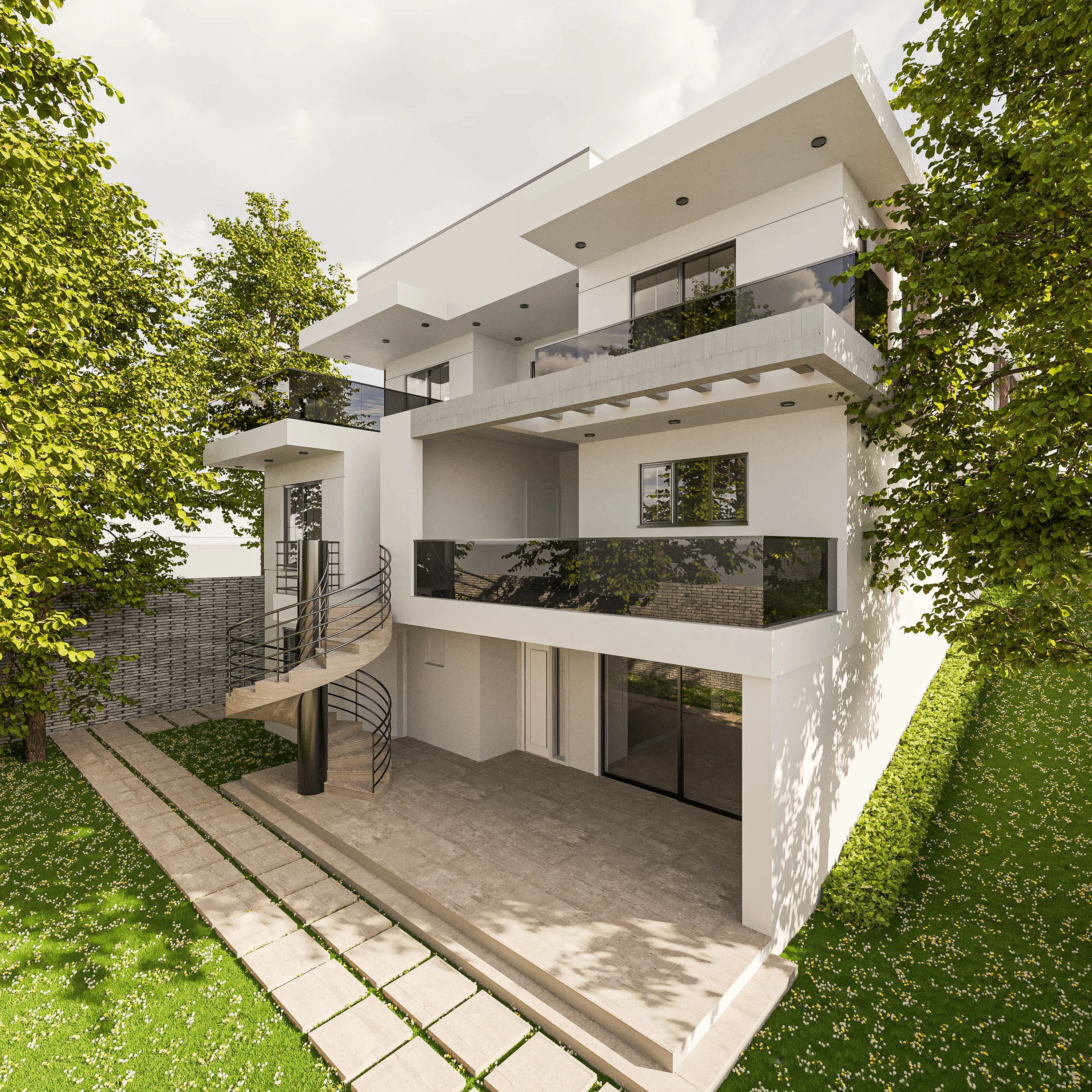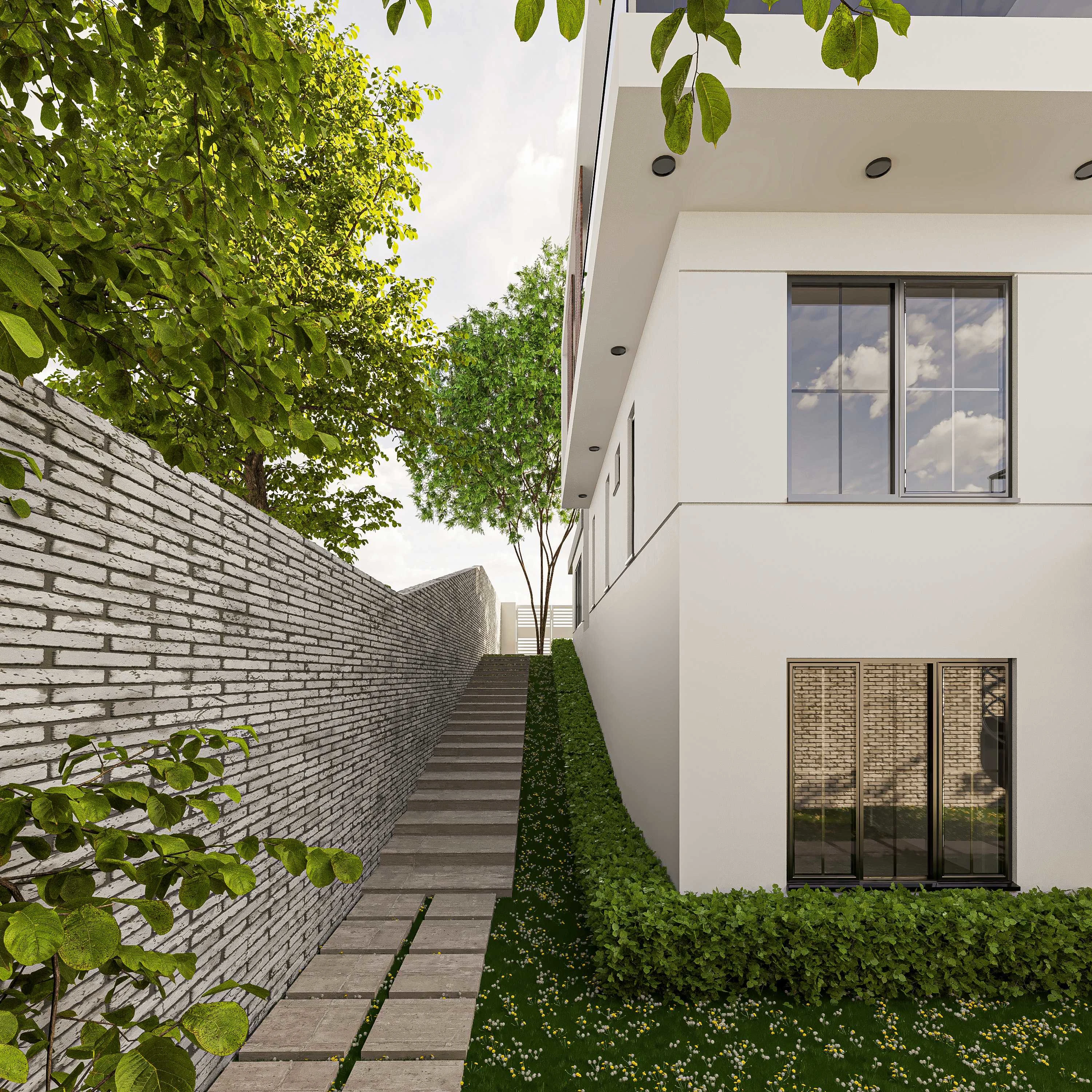White residential house exterior design.