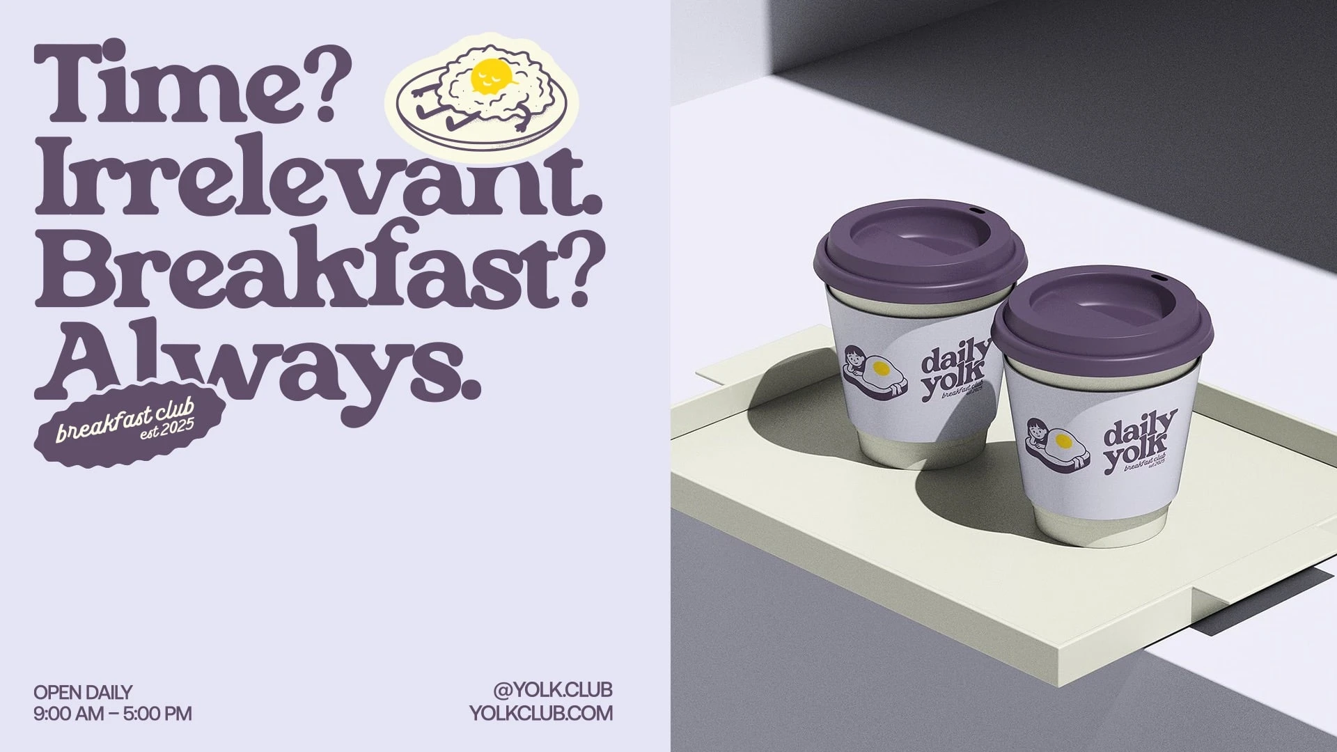 Daily Yolk is a brand identity for a modern all-day breakfast club where taste isn’t tied to time.