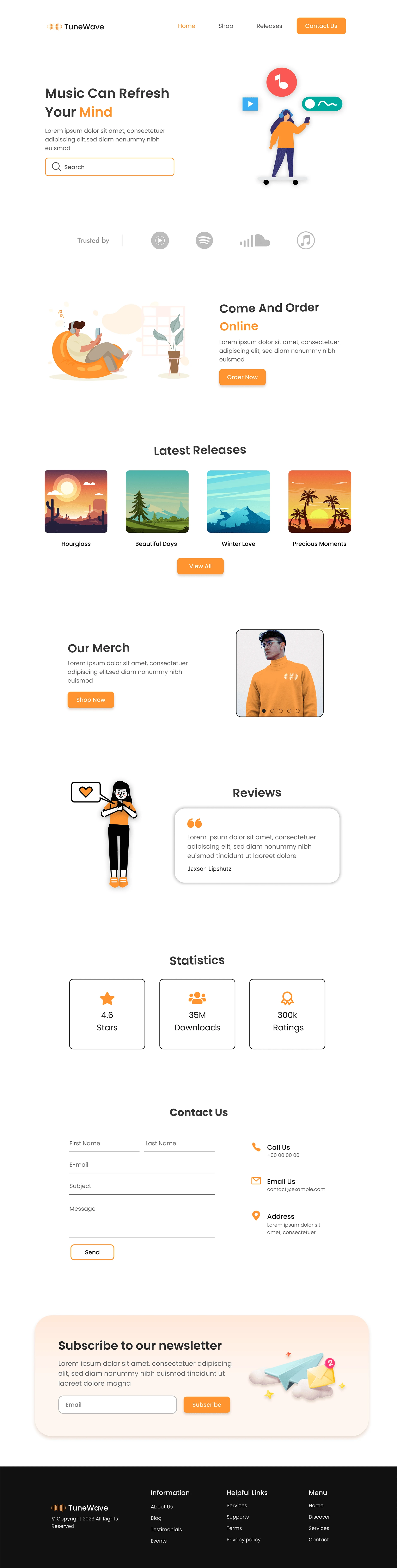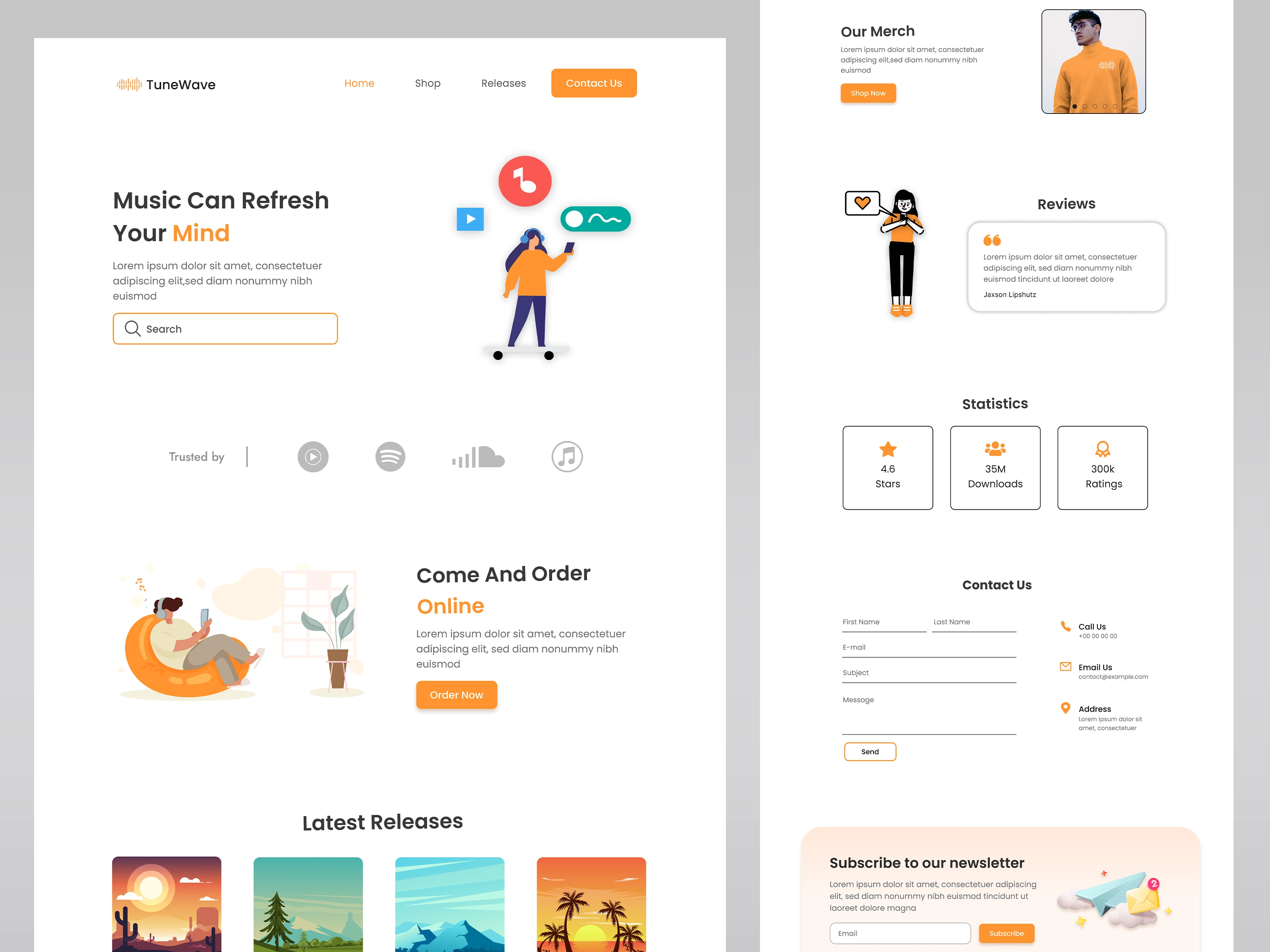 This music website has an orange design.