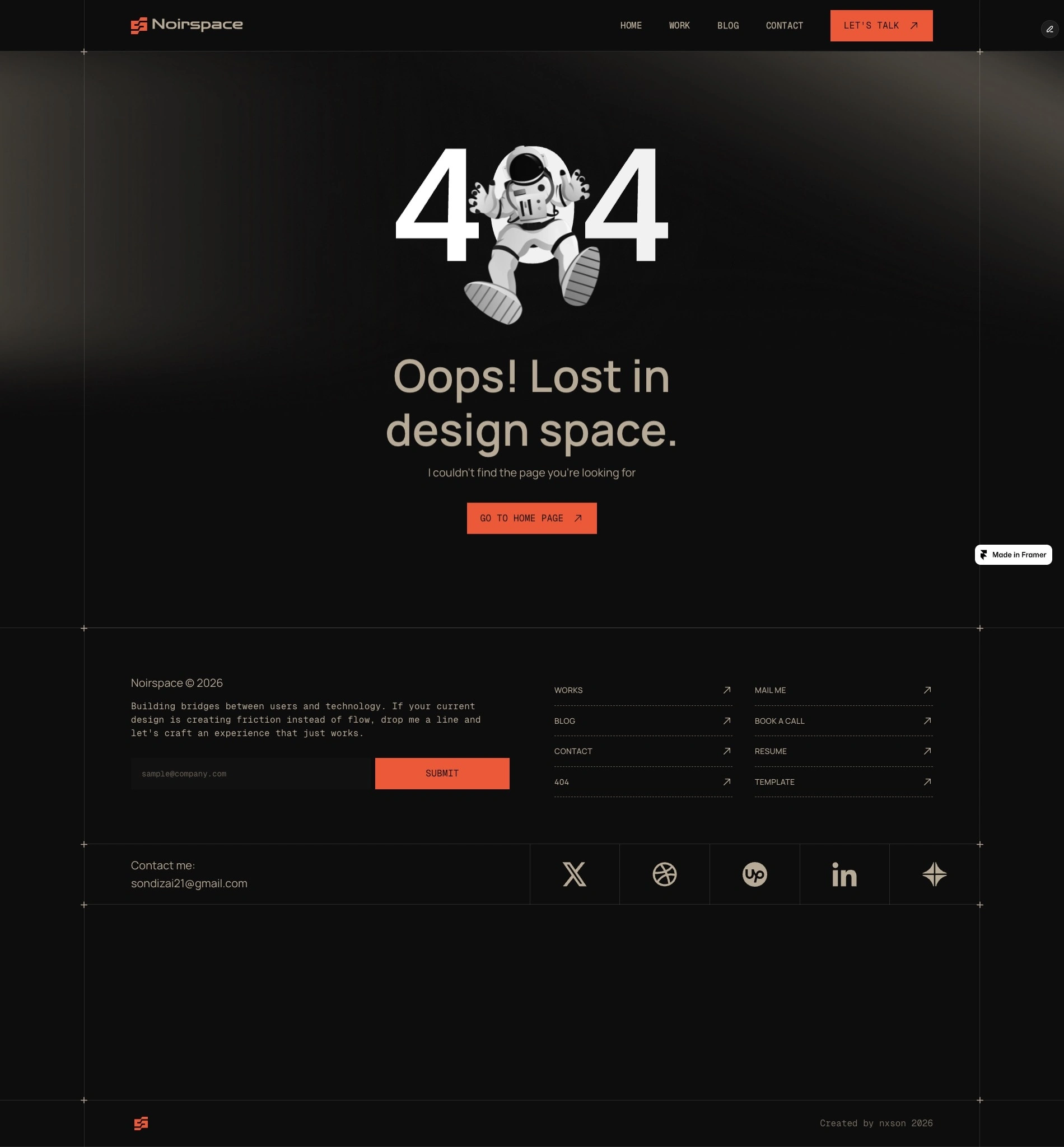 Noirspace explores how a dark-mode interface can elevate a designer’s portfolio. Built with Framer, the design focuses on clean composition, subtle motion, and modular sections that allow creatives to present their work, services, and results with clarity while remaining fully responsive and easy to adapt.