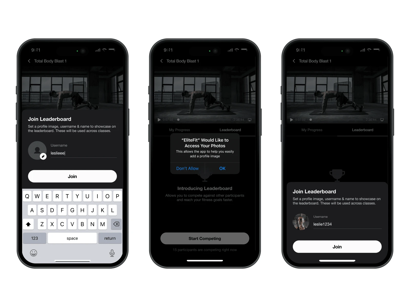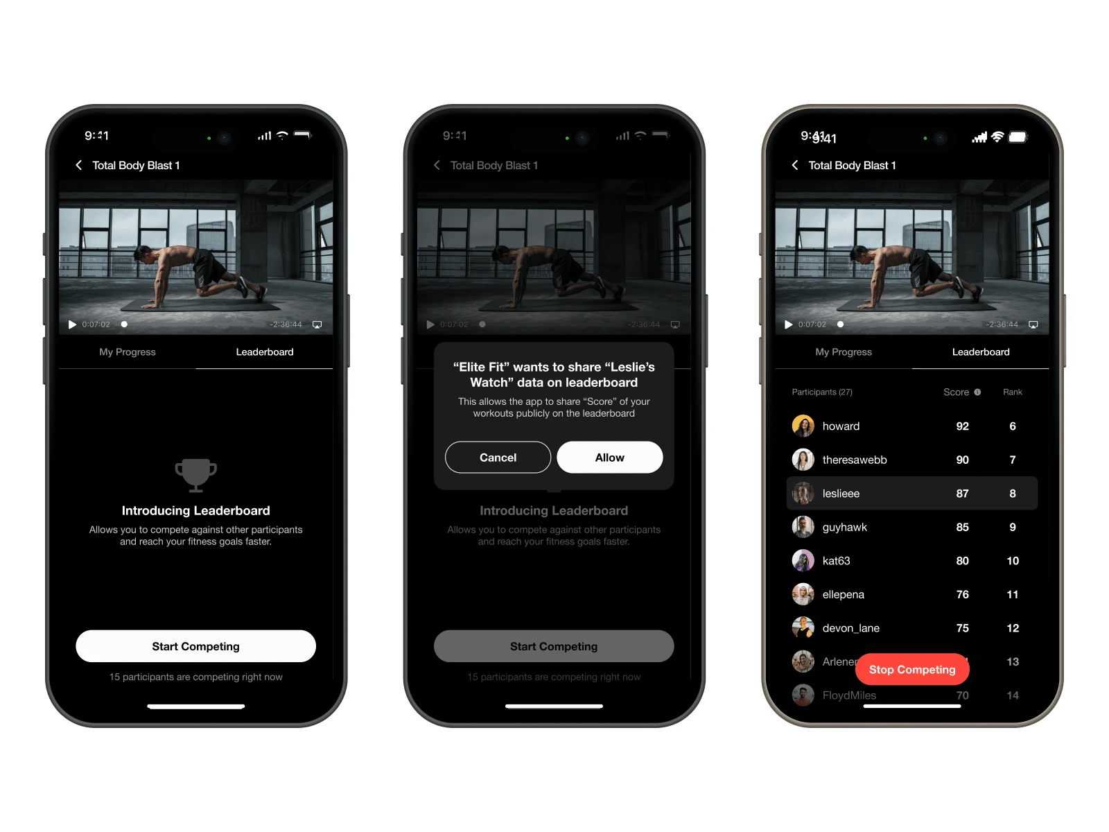 Fitness app leaderboard to encourage healthy competition among participants during classes