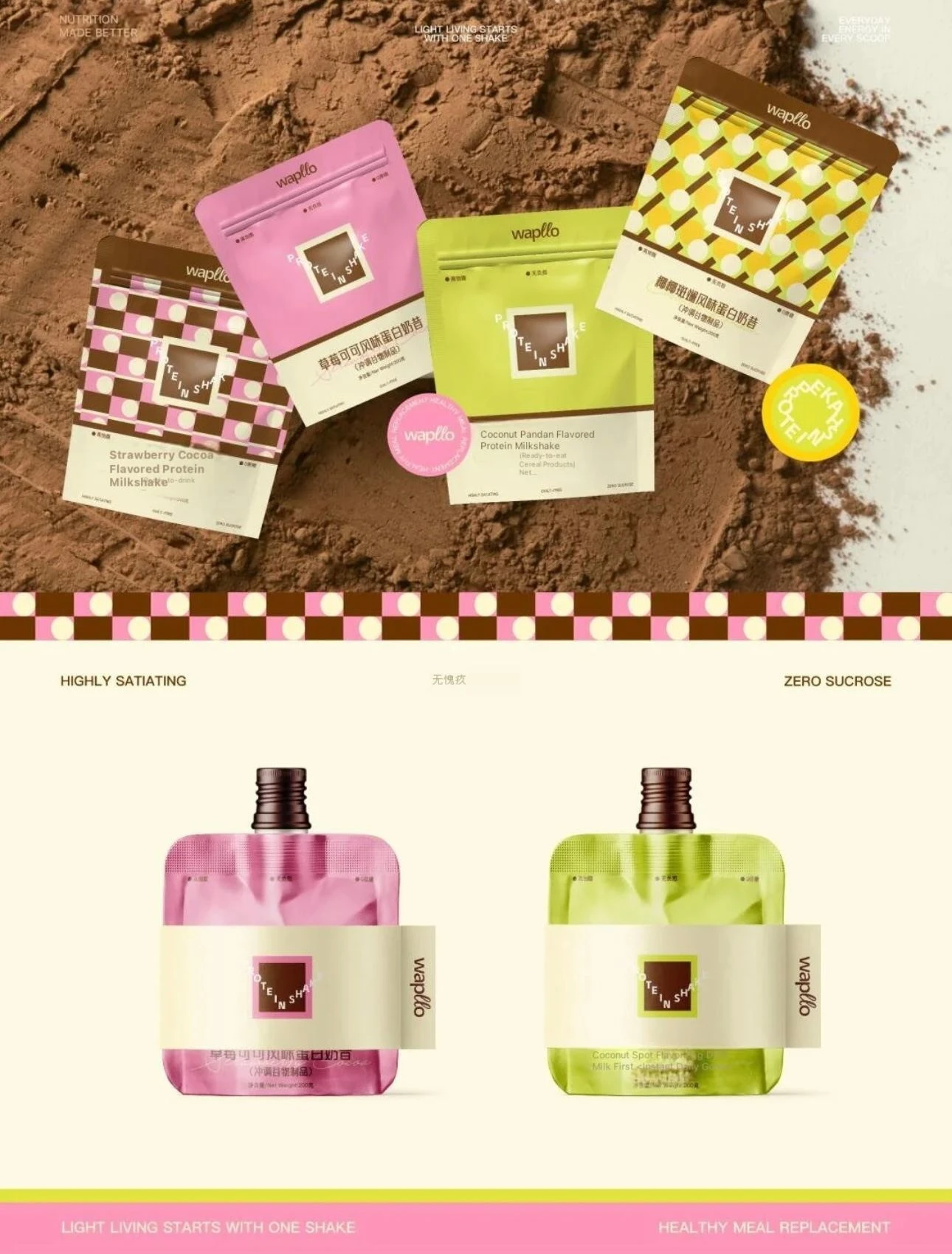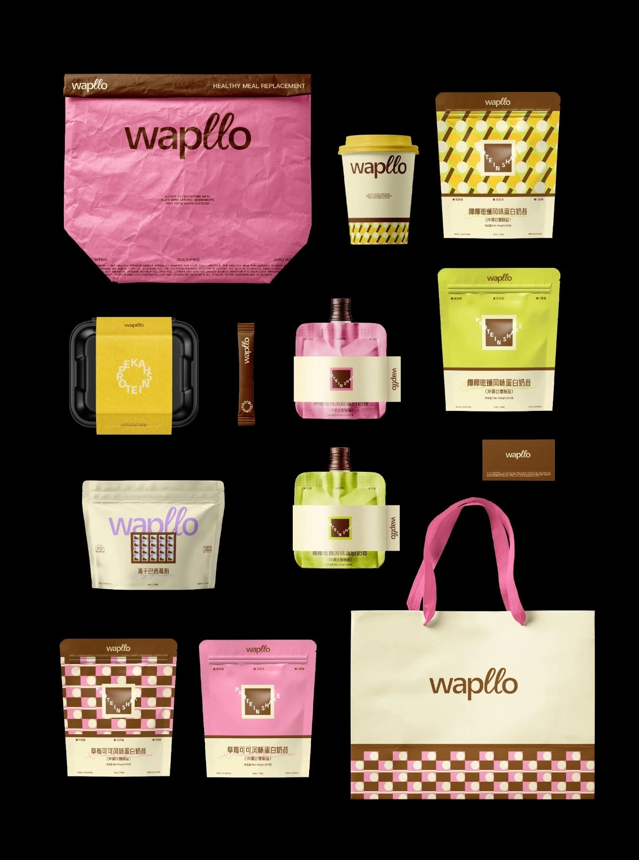 The packaging uses playful circles, geometric line blocks, and cheerful checkerboard patterns, forming a dynamic system across SKUs. These repeatable shapes bring rhythm and personality to the product line, helping Wapllo stand out in a category often dominated by minimal, clinical aesthetics.