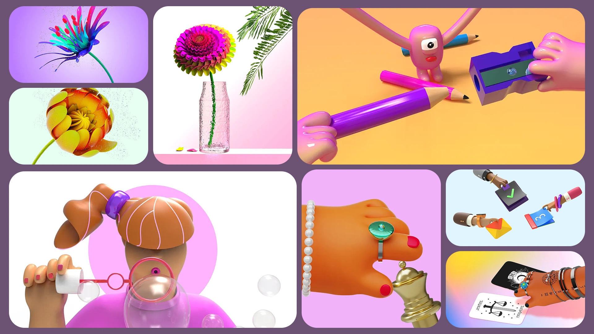 A vibrant exploration of form and feeling. From serene, balanced stillness to the beautiful innocence of creative play, these works translate the journey of pushing 3D design toward something that feels deeply empathetic. It’s a process of constant curiosity, experimenting with light and color to see just how far a creative spark connects.