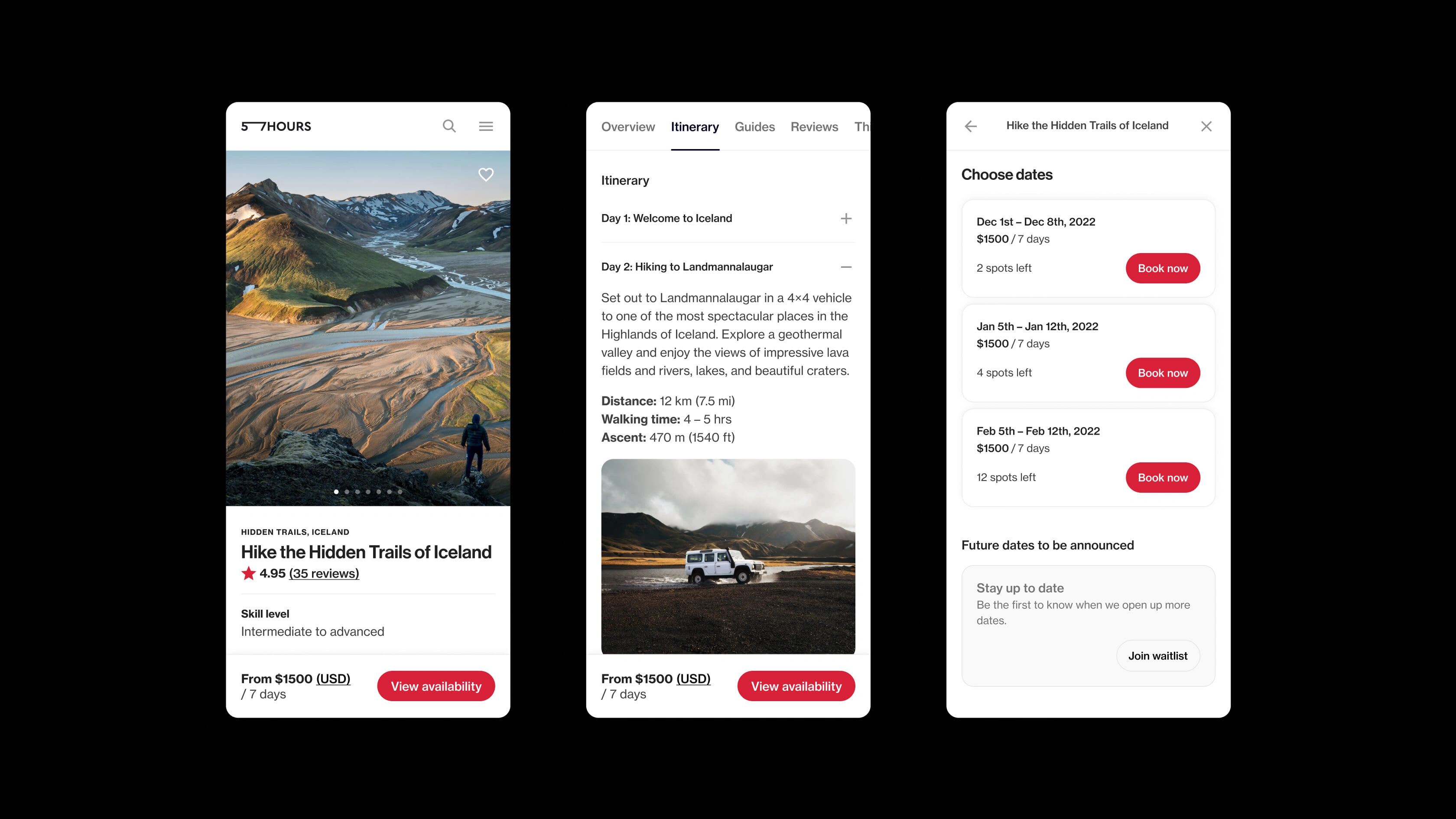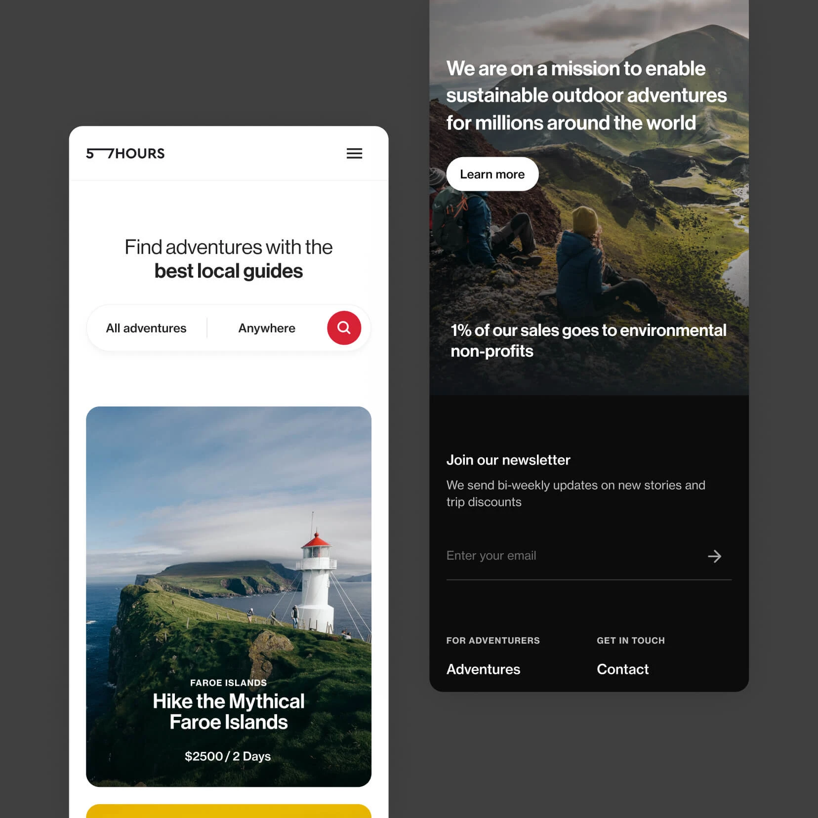 57hours is an outdoor adventures booking platform. As a member of the early design team in 2017, I helped create the product from scratch. Five years later and 4x larger, the company recognised the need for a front-end redesign to address accumulated inconsistencies, reduce maintenance costs, and ensure scalability. I was hired for a redesign project.