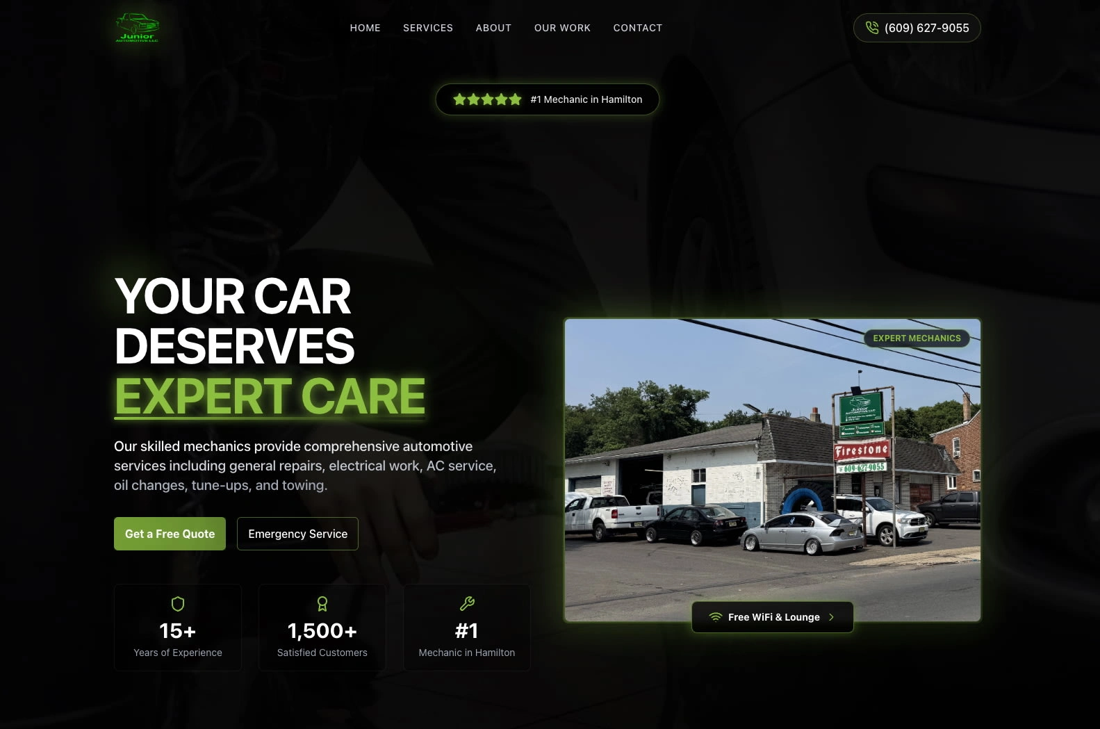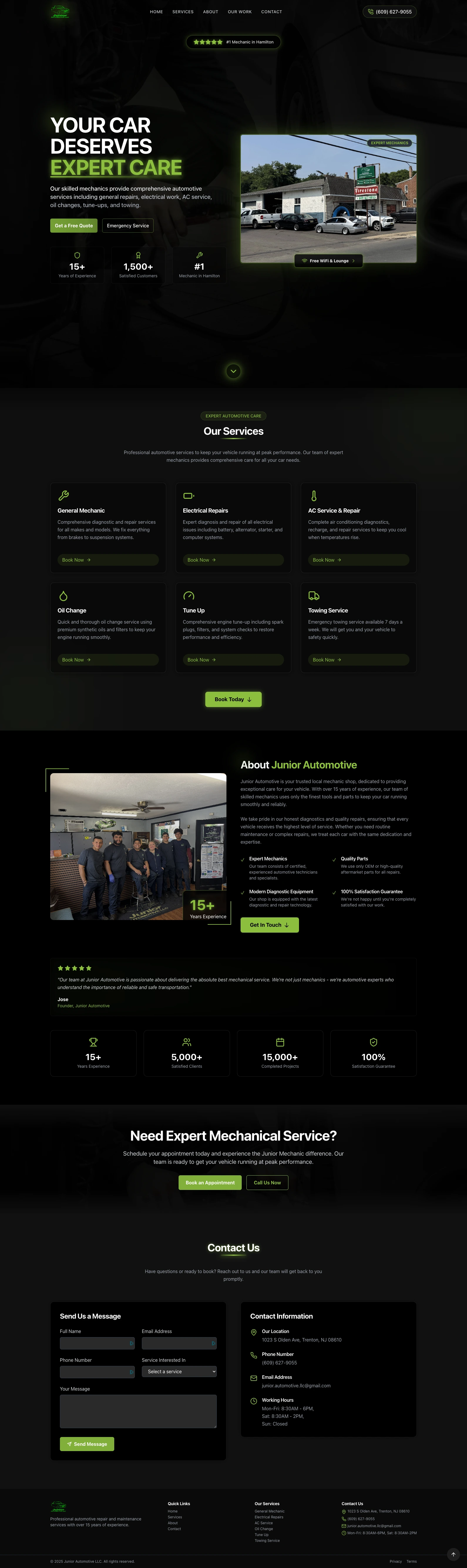 A clean, professional website built for an automotive repair service. Designed in Figma and rapidly coded with Windsurf for quick deployment, the site emphasizes services, customer credibility, and booking CTAs. Features include a responsive service catalog, testimonial highlights, and optimized SEO structure to rank locally. The design ensures customers can easily find, trust, and contact the shop, while delivering a modern look and fast load speeds.
