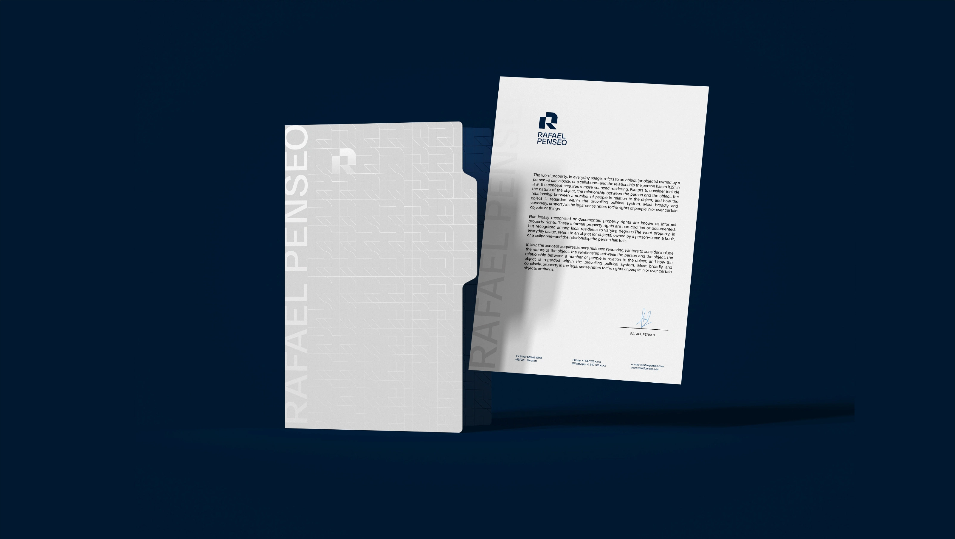 BRIEF: Rafael Penseo, a real estate lawyer, required a distinctive brand identity that reflects his expertise in property law and complex real estate transactions. The goal was to create a logo that embodies structure, precision, and professionalism.