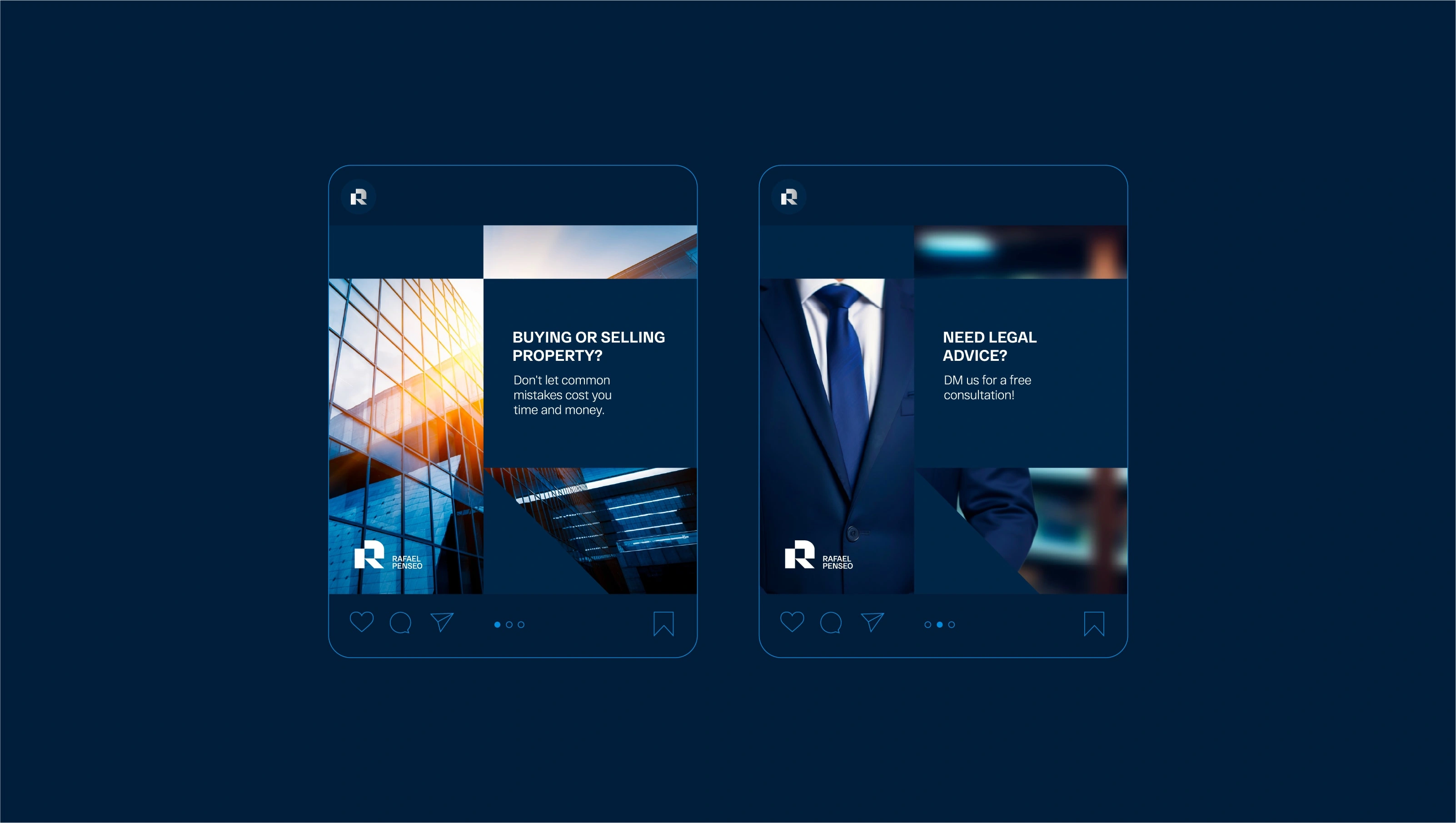 RESULTS: The final design successfully communicates Rafael Penseo’s commitment to providing clear, precise, and dependable legal support in real estate matters. The modern aesthetic ensures a professional presence across both digital and print platforms, strengthening his brand image.