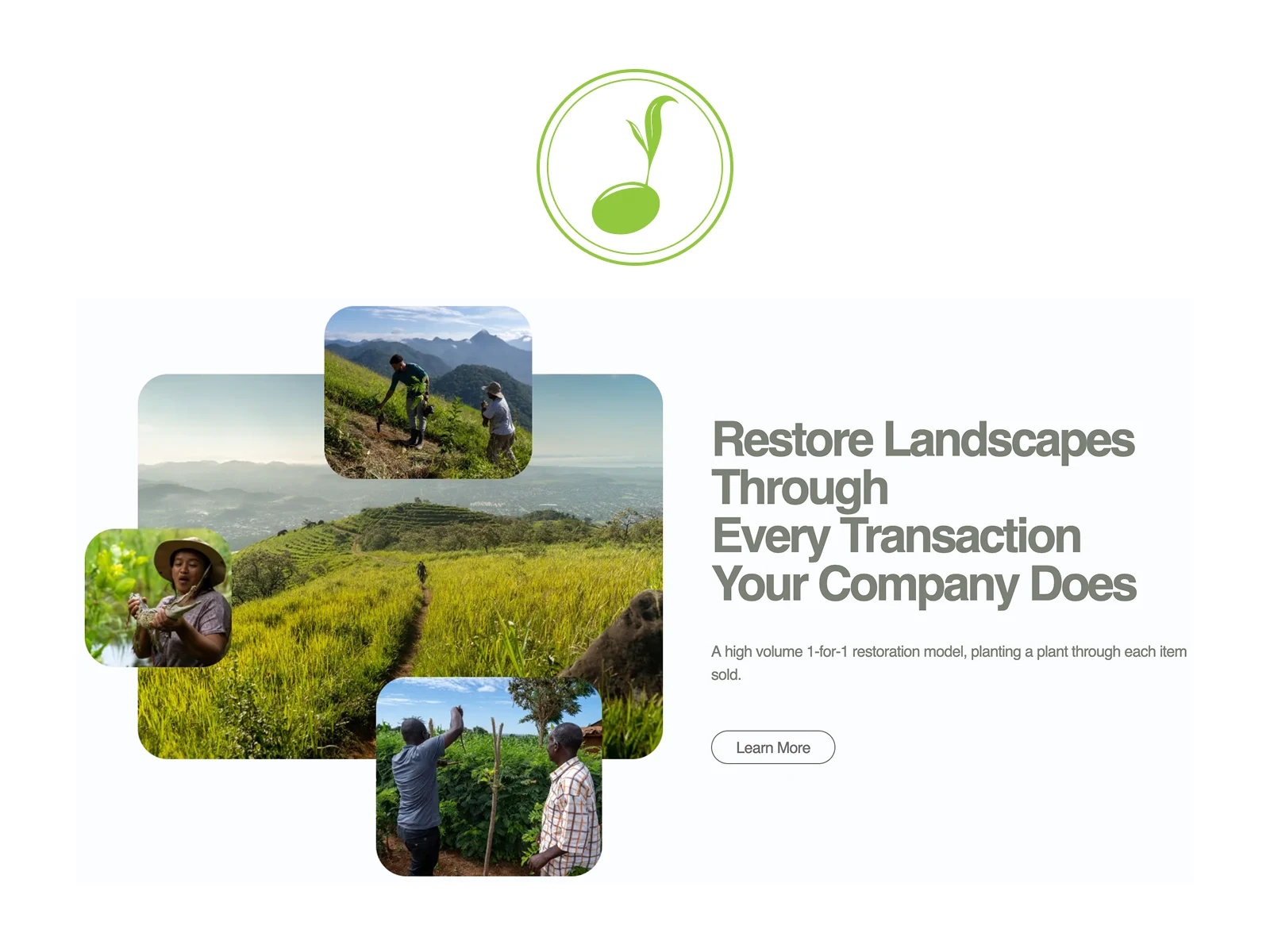 Canva) to submit real-time transactions for 1-to-1 pairing with individual trees planted all over the world, as well as view aggregated summaries of their total restoration impact in the application dashboard.