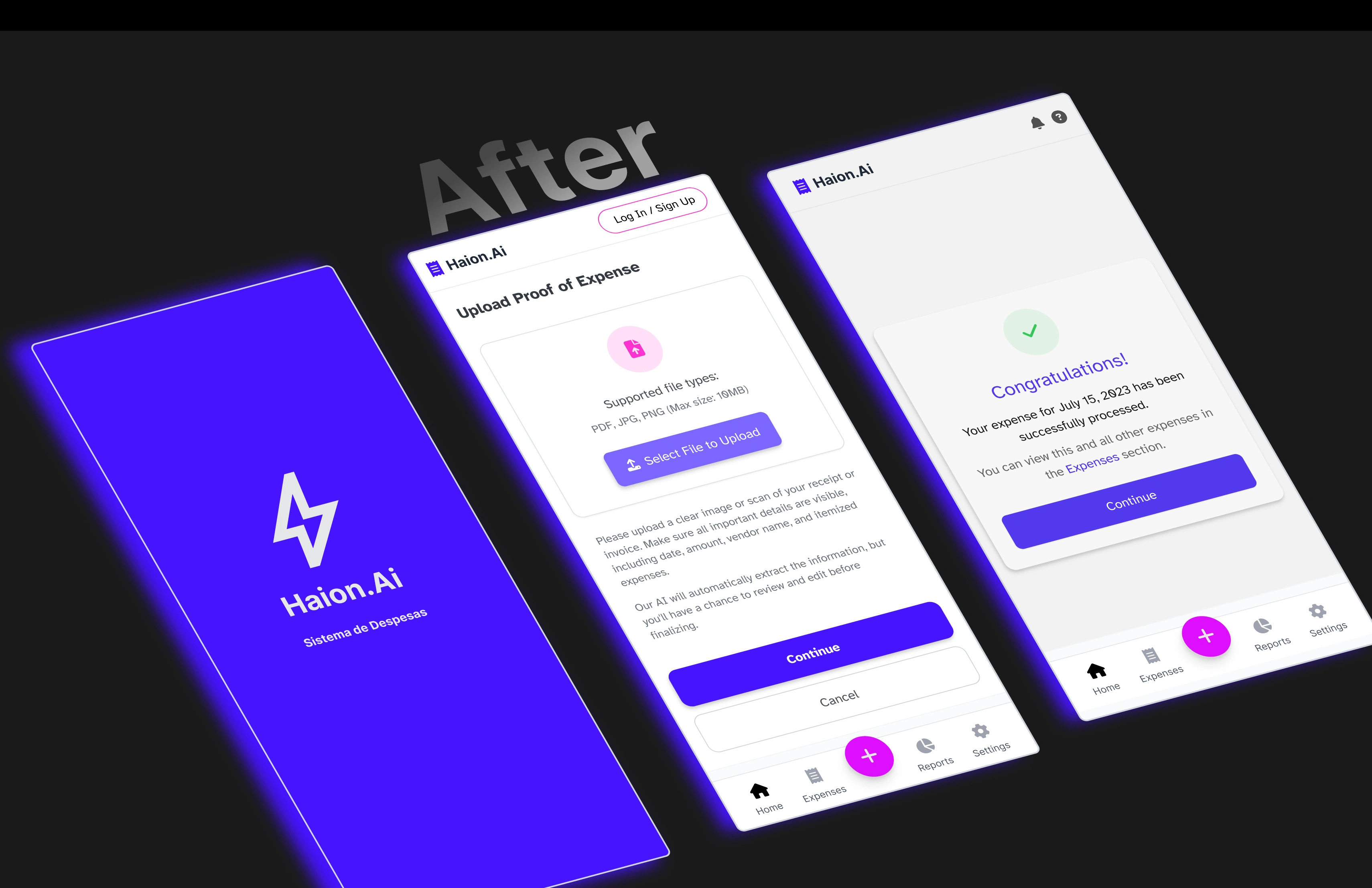 Haion.AI Expense App Redesign This project focused on improving the usability and visual design of an expense management application. The original version lacked hierarchy, clarity, and a modern interface, which made it difficult for users to upload receipts and confirm submissions with confidence. The redesign introduced a cleaner layout, consistent branding, and clearer calls-to-action. By applying modern UX principles and a more engaging visual system, the updated interface creates a smoother, more human-centered experience for freelancers, professionals, and businesses.