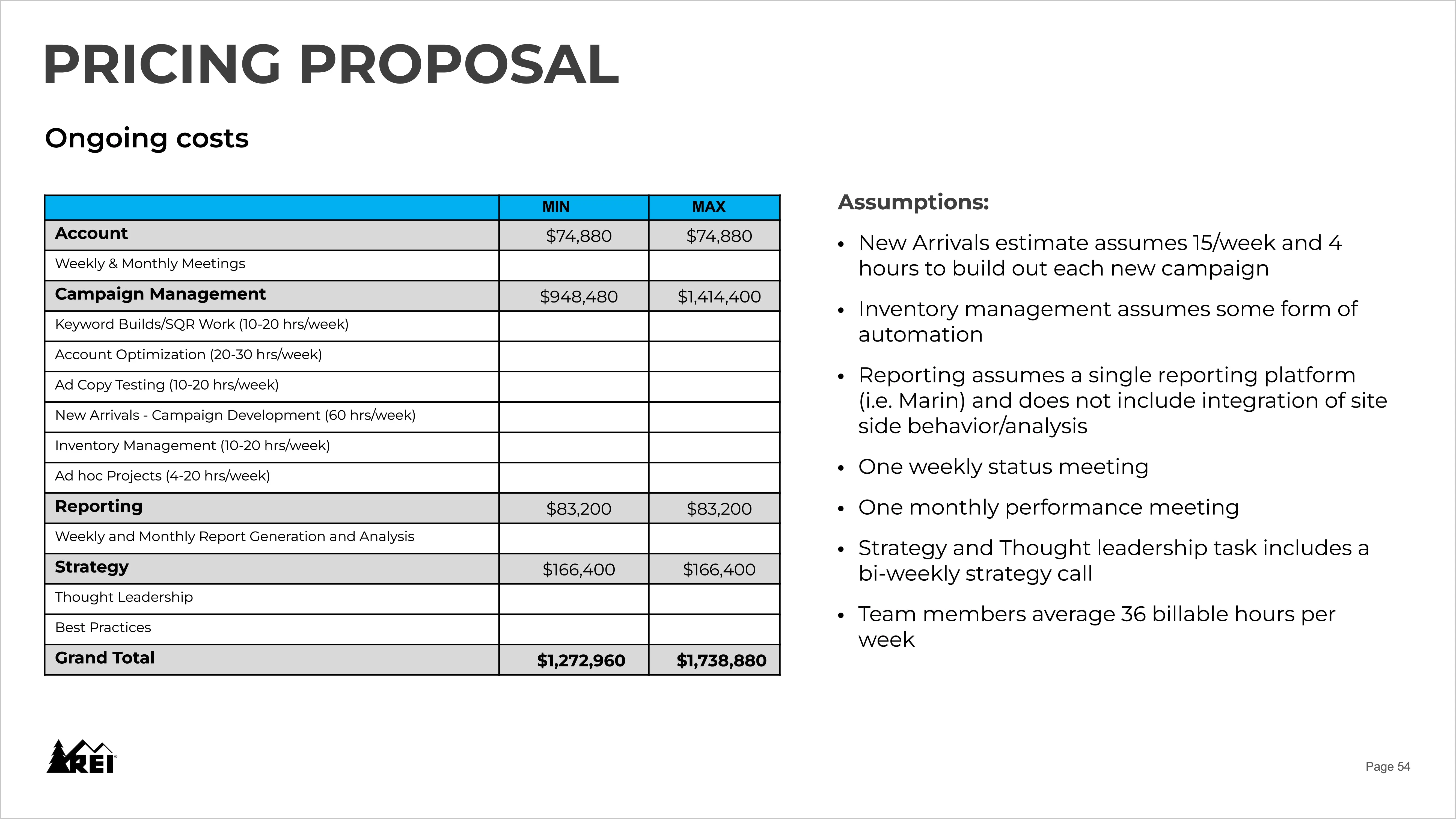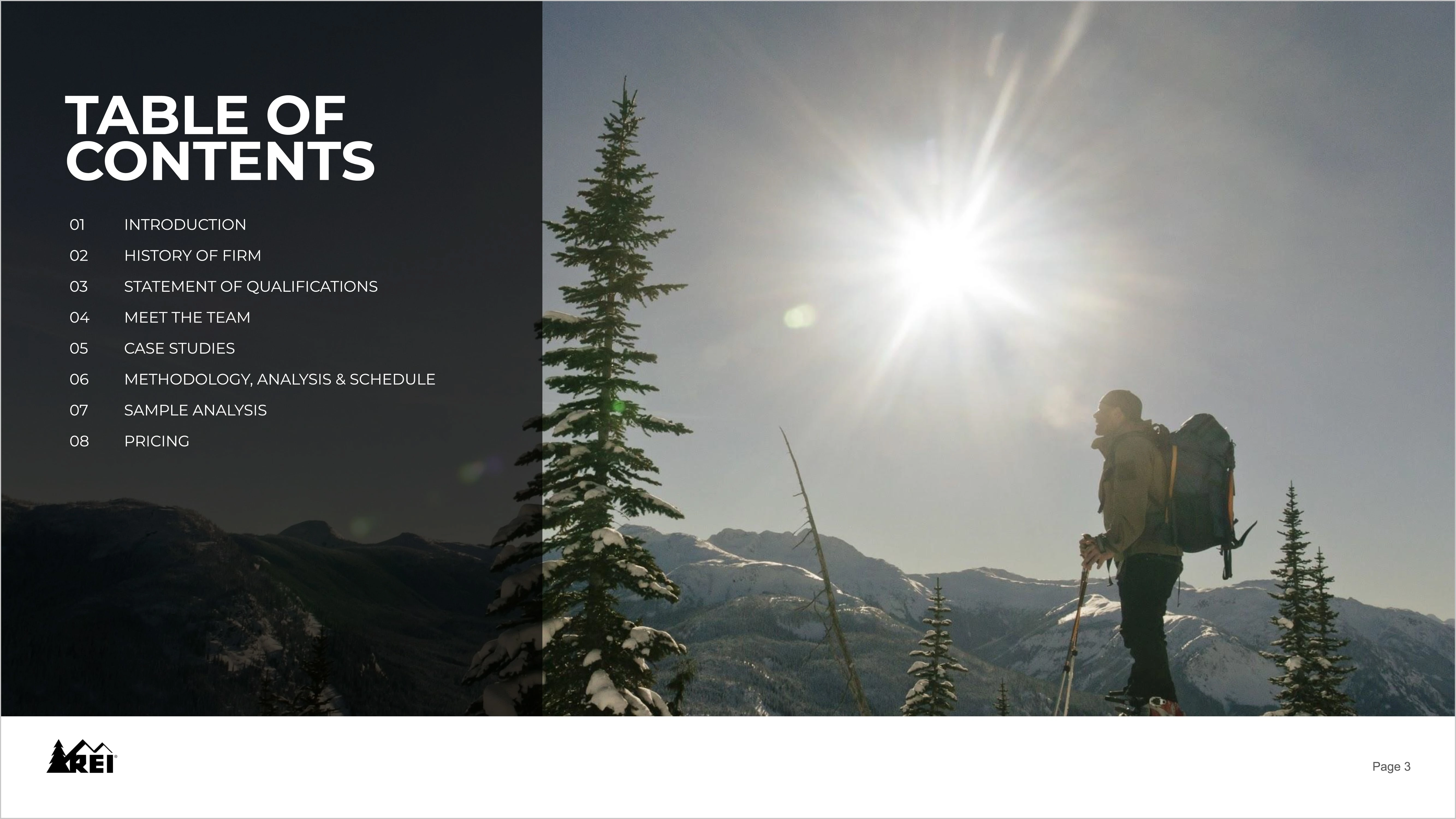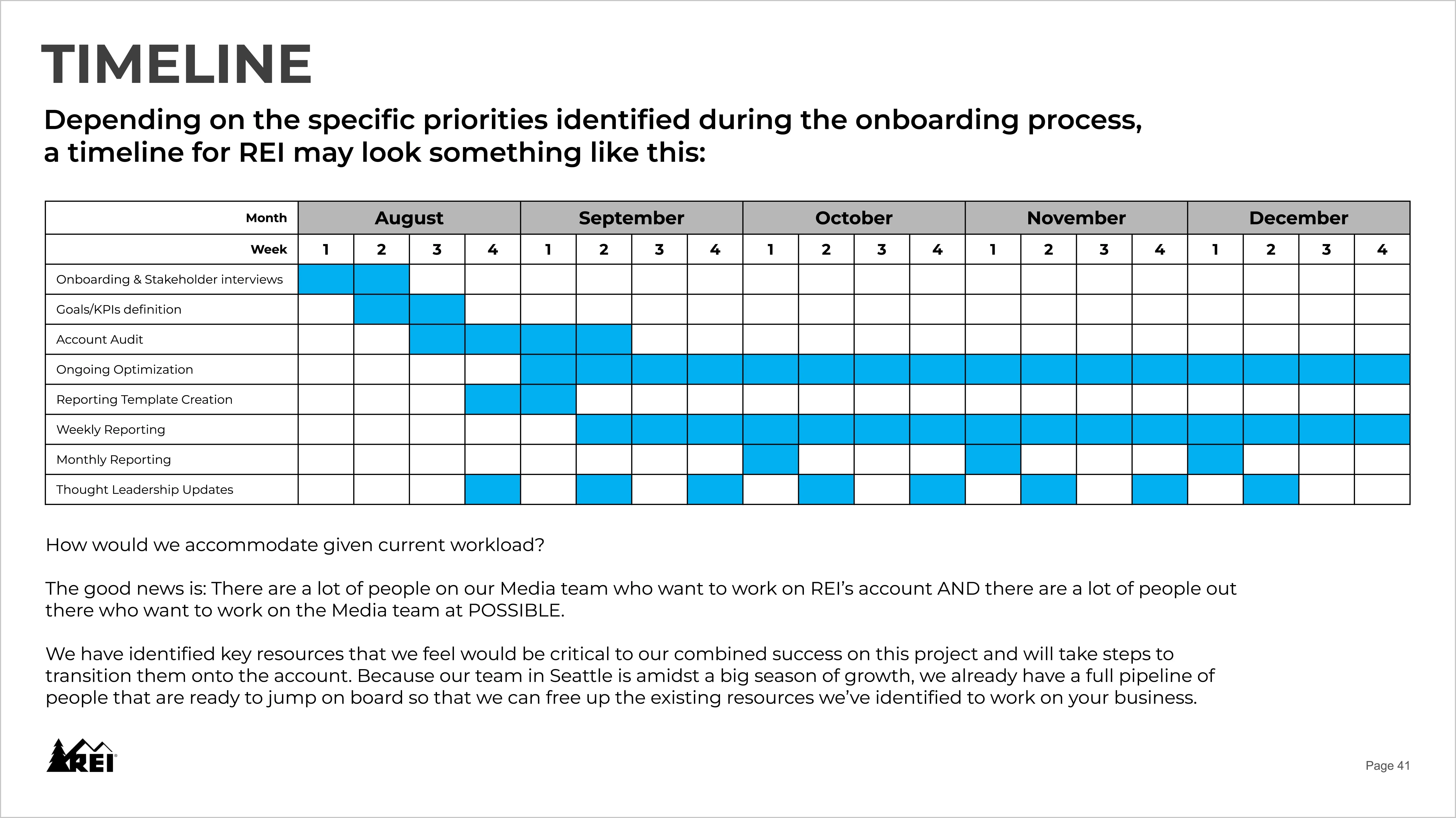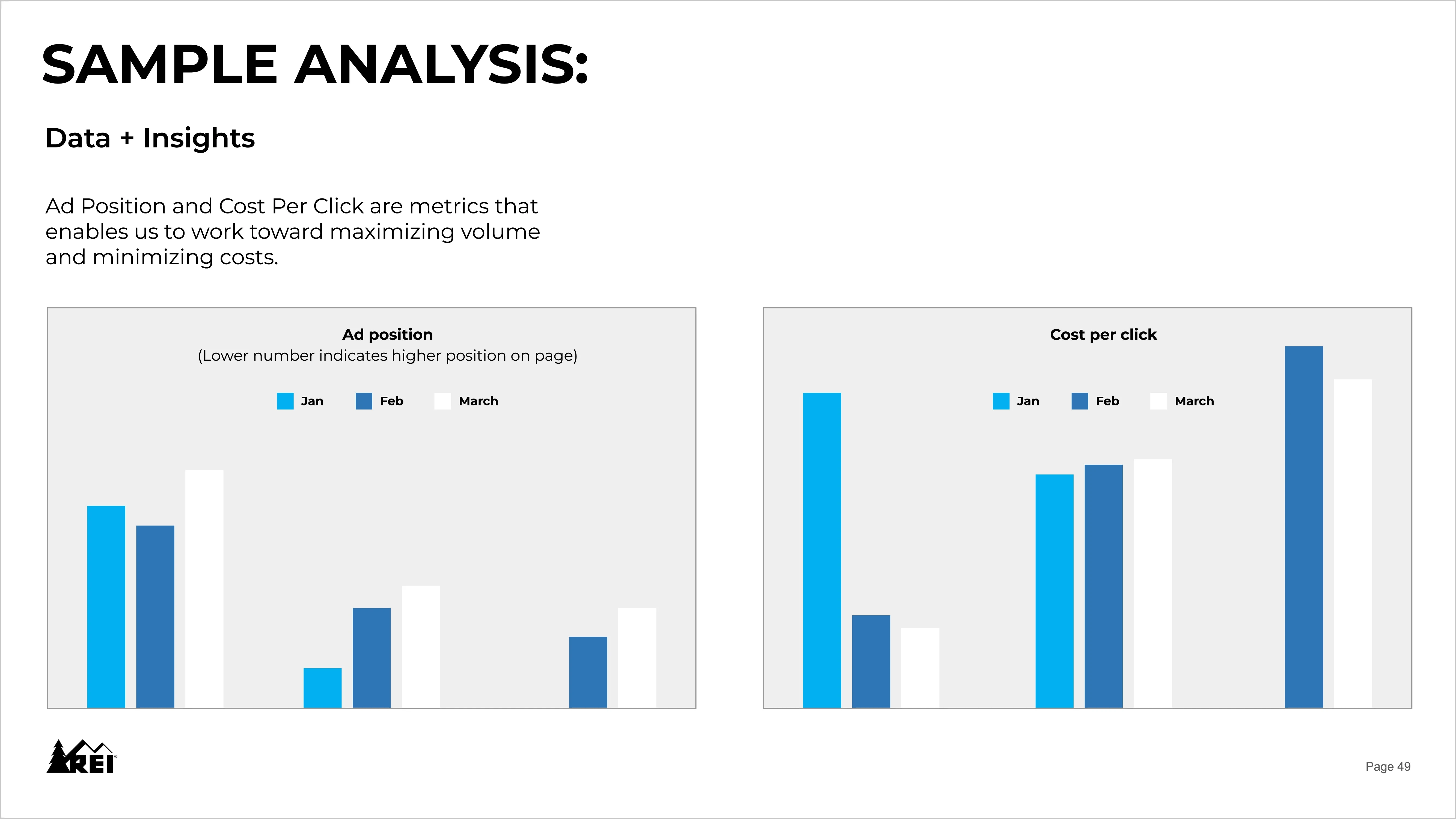 Helped design the presentation deck for POSSIBLE Worldwide’s RFP response to REI’s Paid Search initiative. Collaborated with the creative team to develop clean, professional layouts that supported strategic and data-heavy content, ensuring clarity, consistency, and visual hierarchy across all slides.