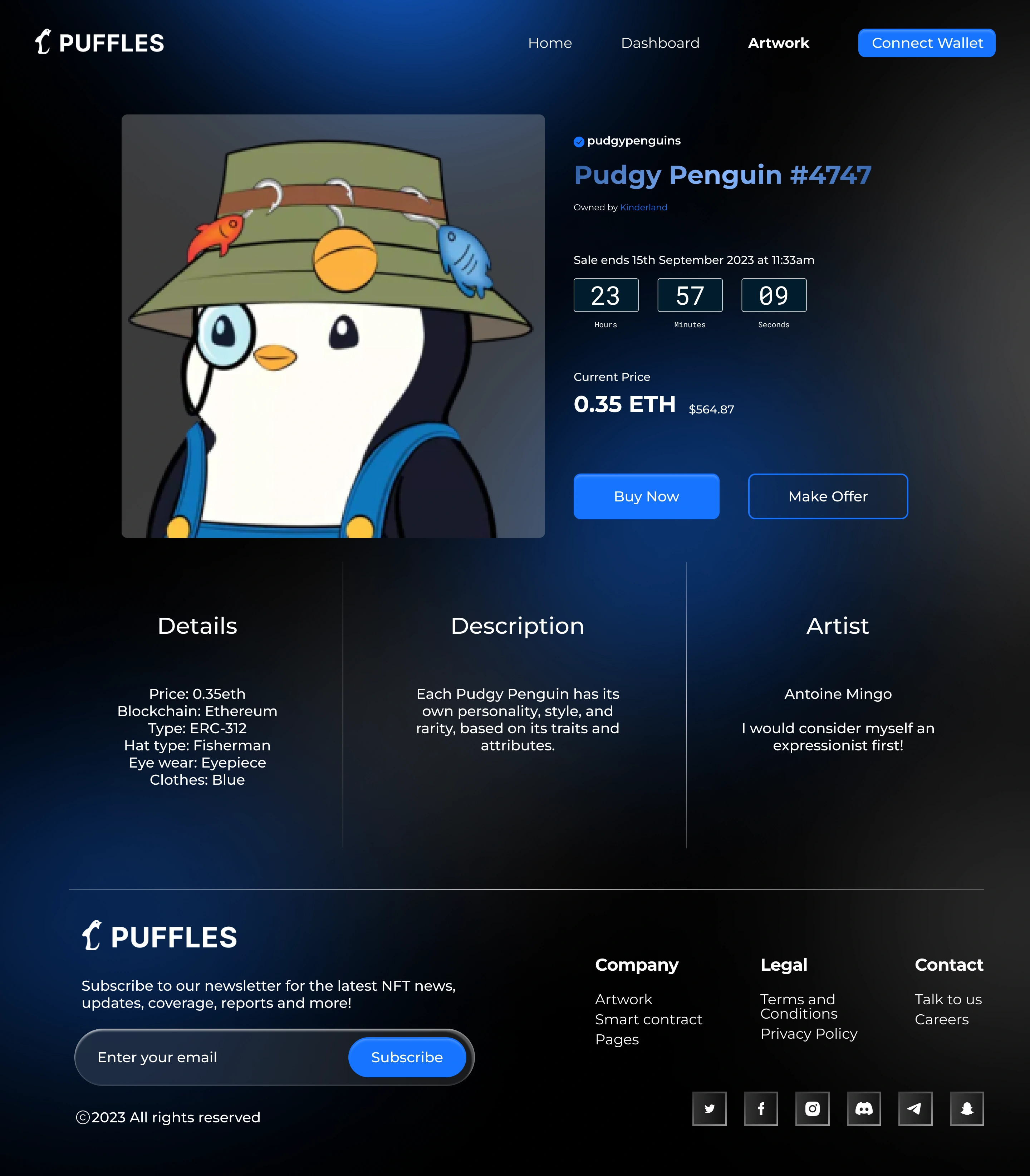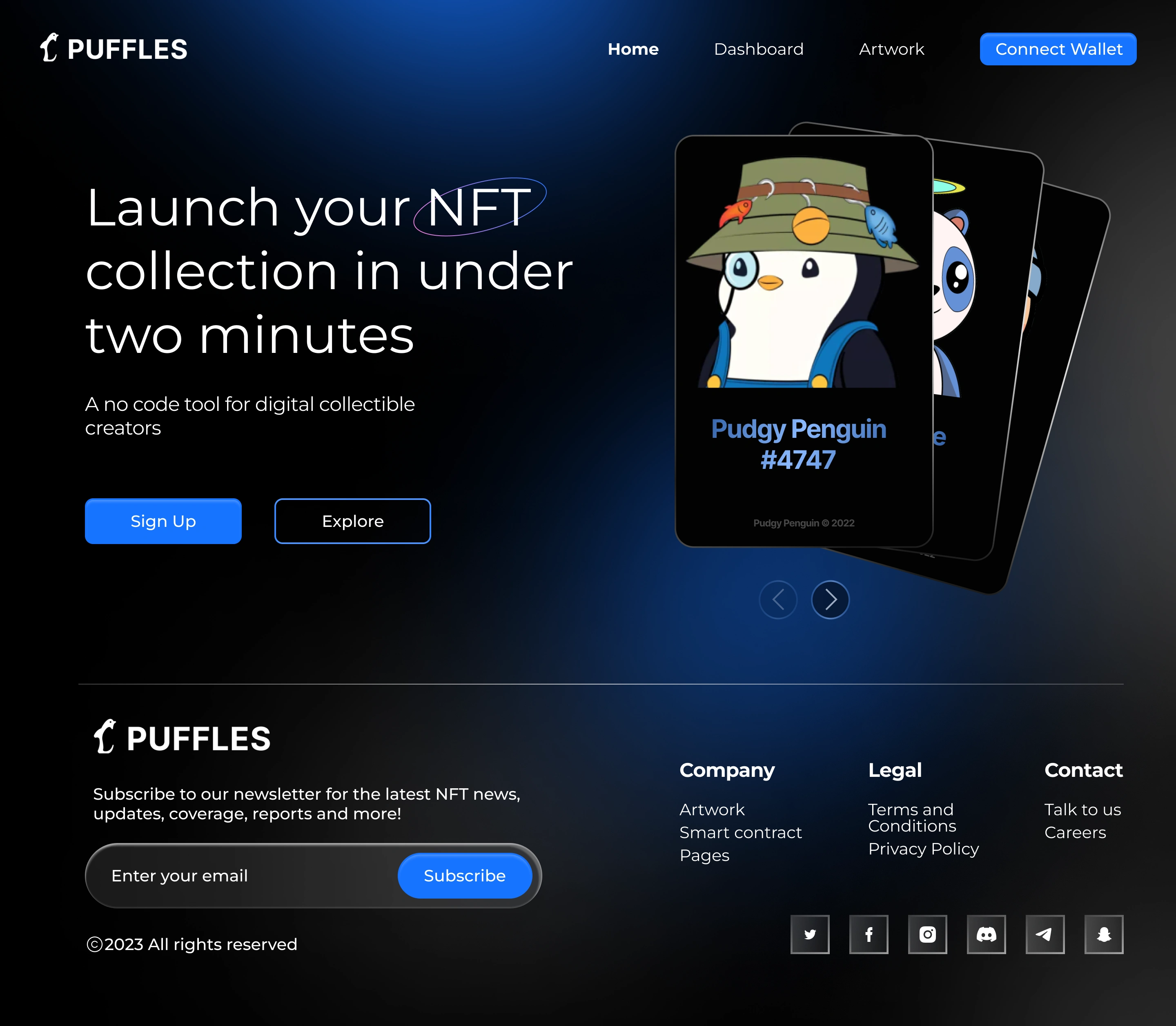 Website design for an NFT launchpad website: Hero section and mint landing page. Design theme: Glassmorphic and Dark