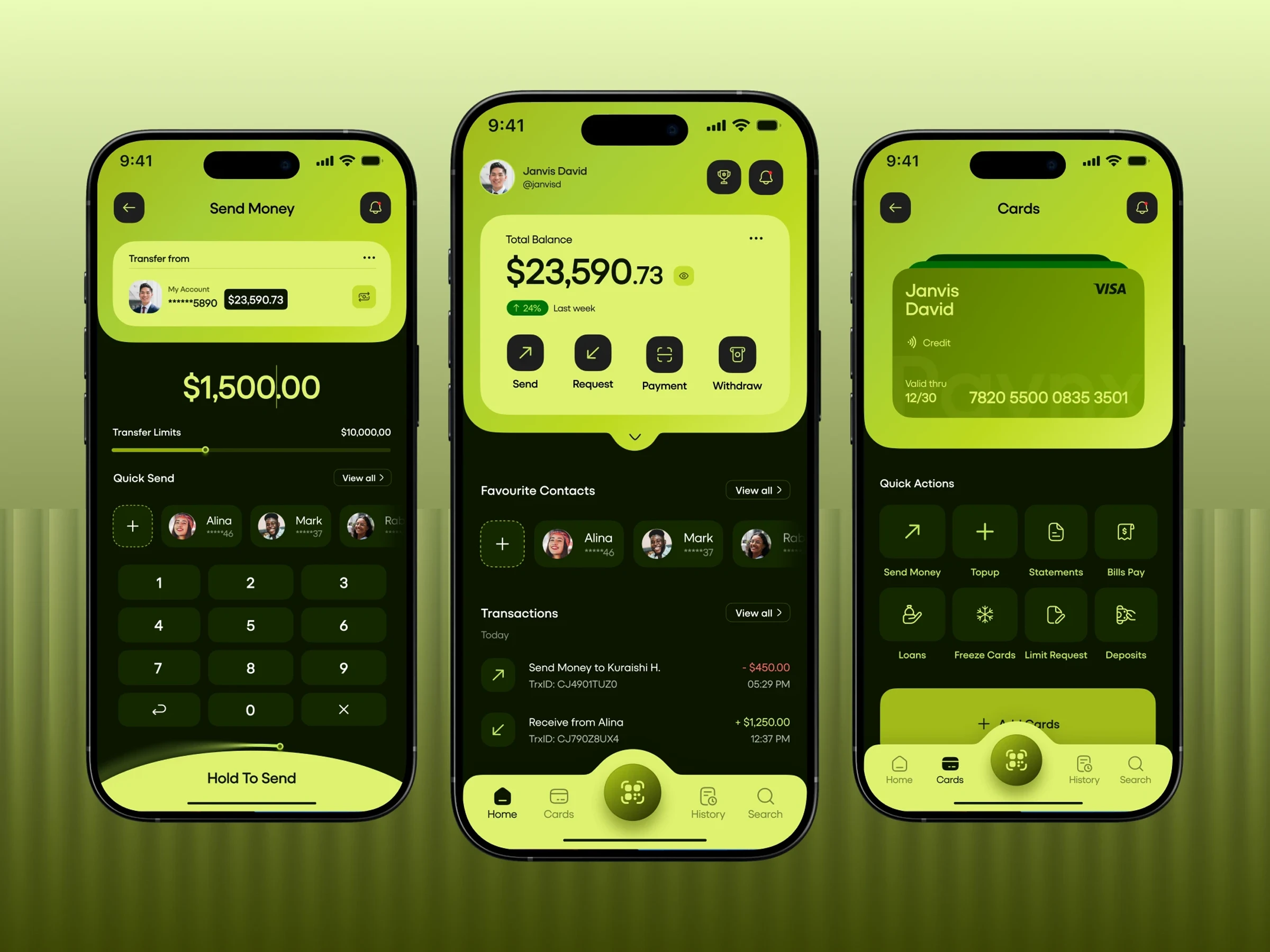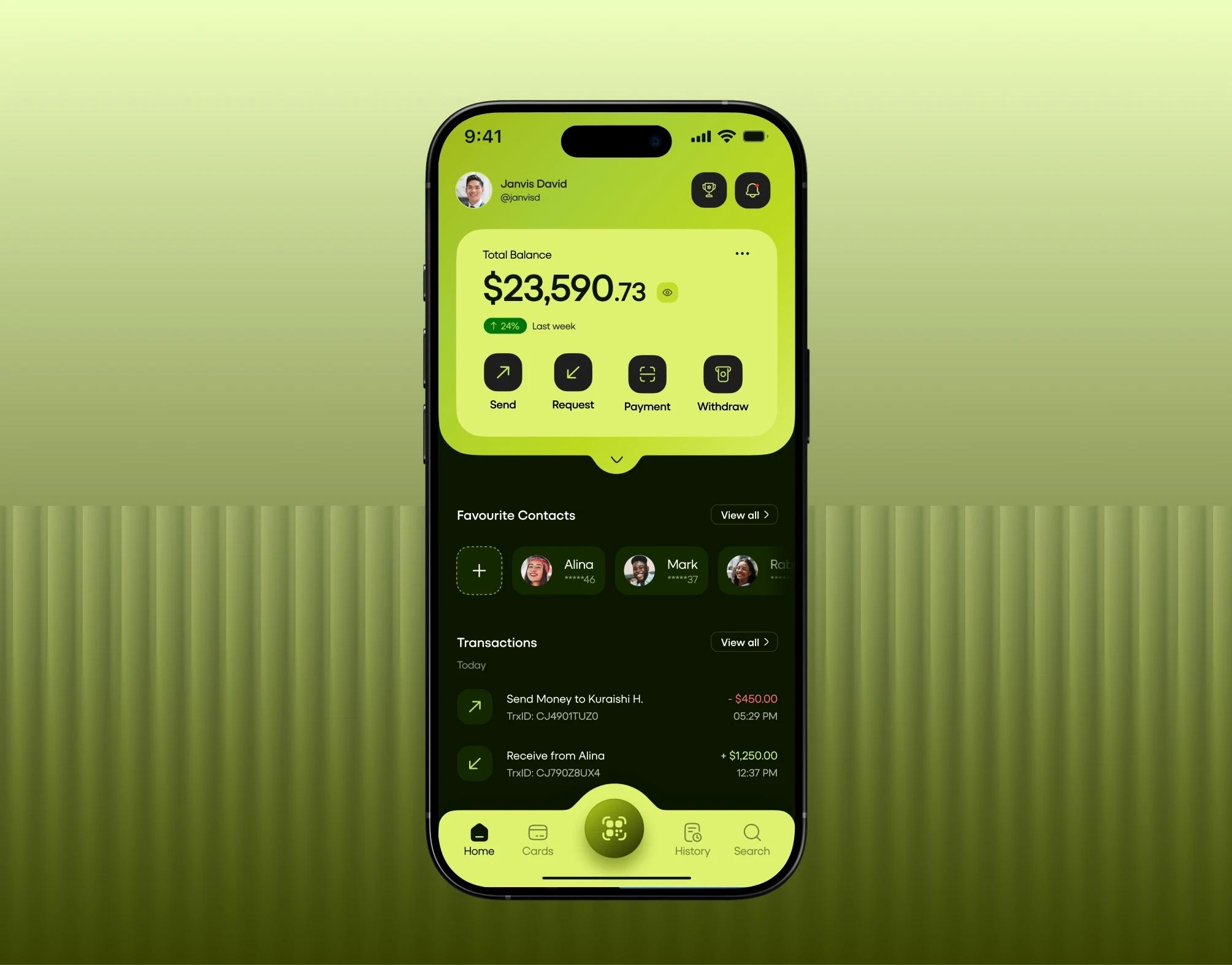 Quick Actions: One-tap access to send, request, and payments