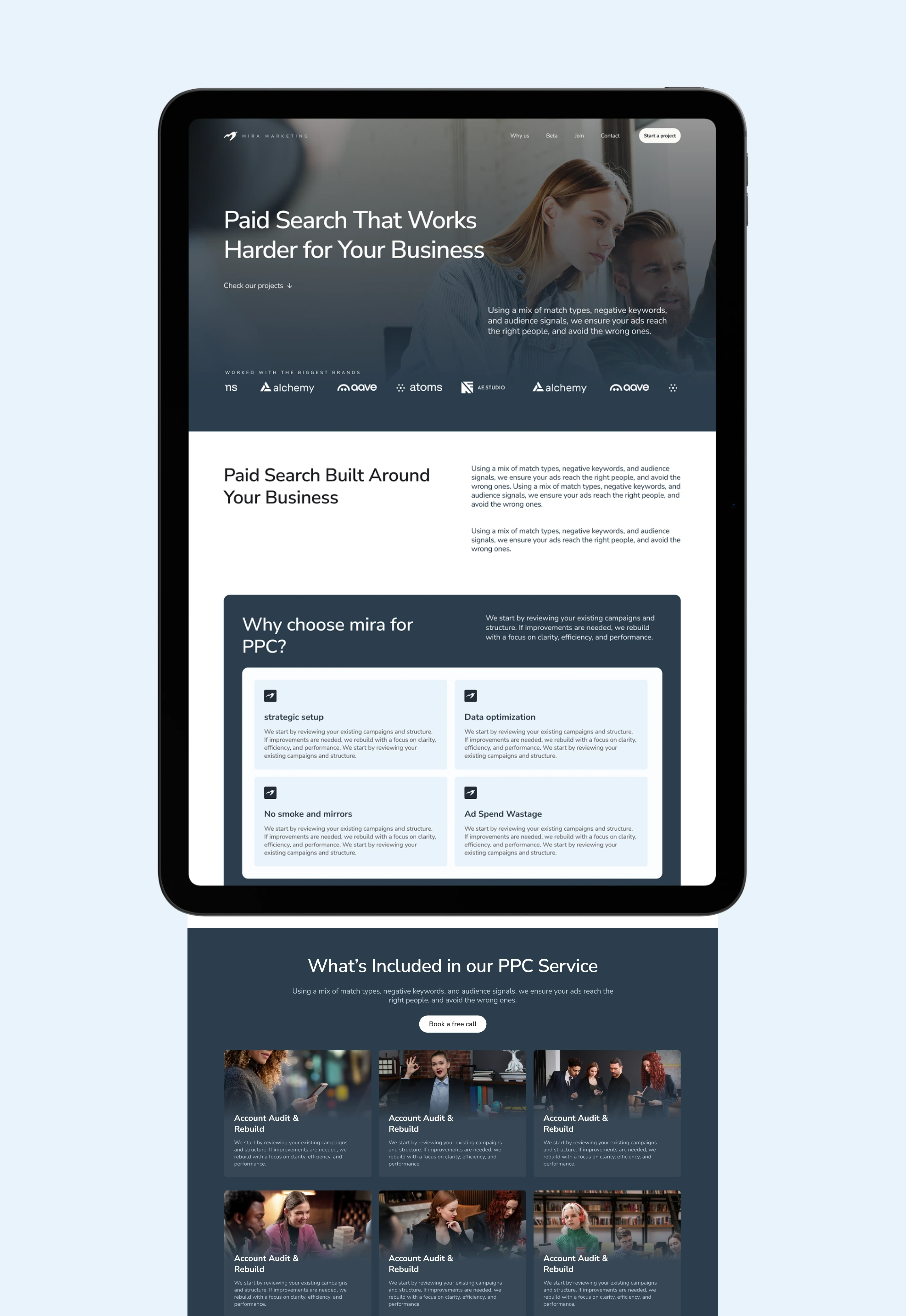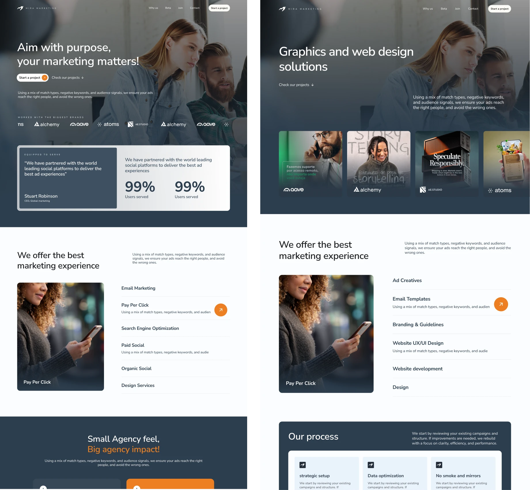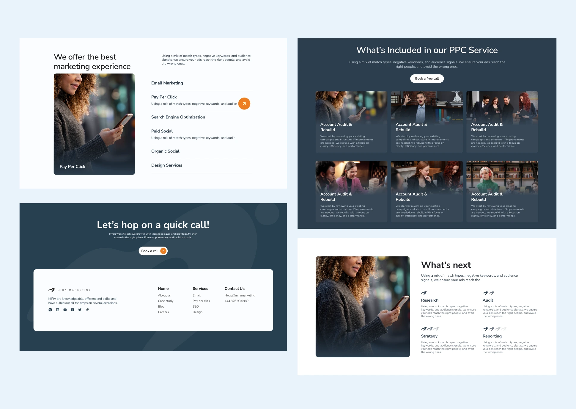 Mira Marketing is a growth-focused digital agency helping brands scale through data-driven marketing and standout creative. I was brought on to lead the end-to-end design of their new web presence as they expanded their service offering and repositioned themselves in the market.