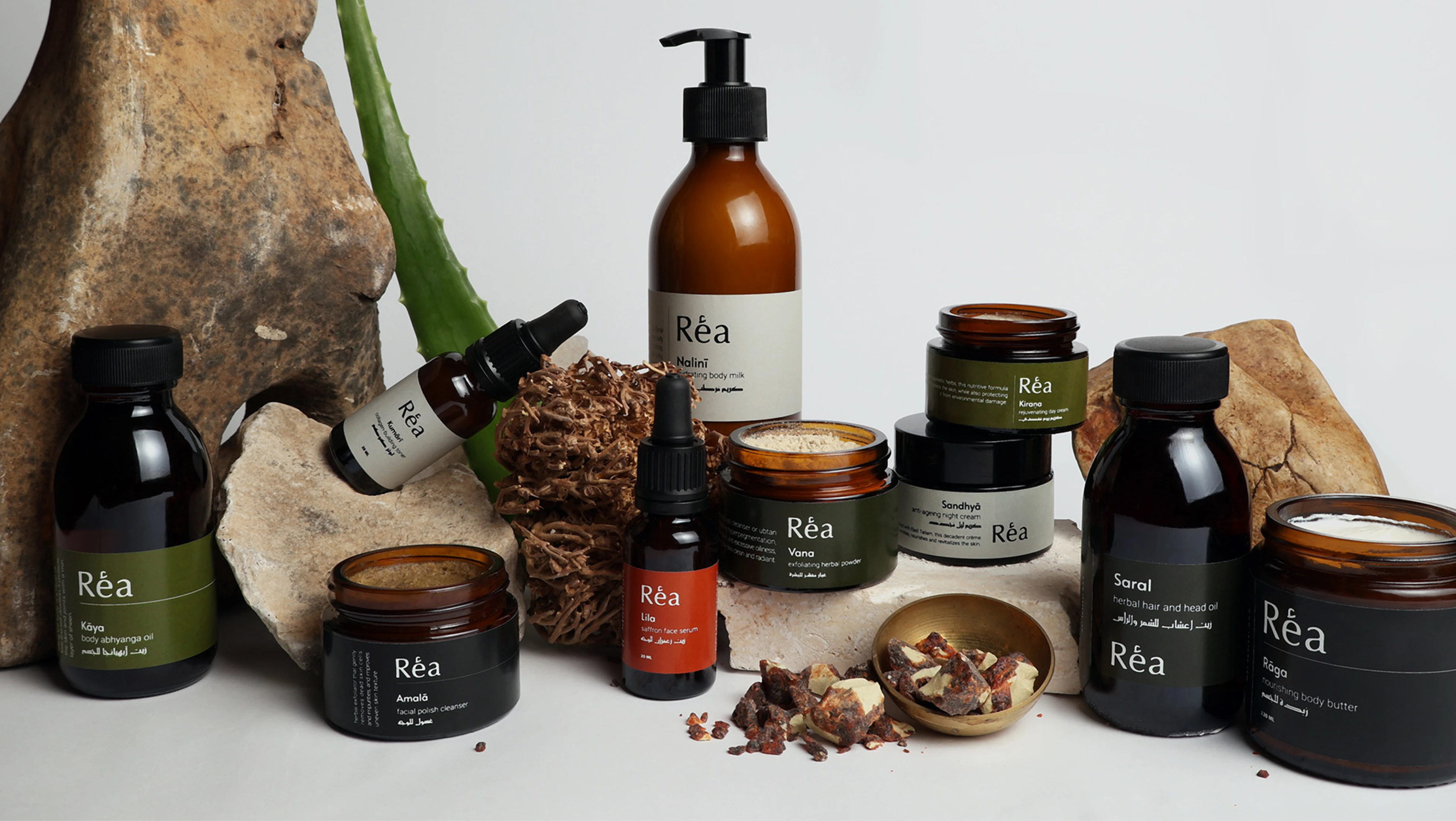 The brand identity is rooted in simplicity, tradition, and earthiness. Drawing inspiration from Ayurveda and traditional medicine, the visual language is clean and understated, allowing the authenticity of the products to shine. The color palette of warm ochres, deep greens, and rich clay, evokes the natural origins of each ingredient. Typography blends modern minimalism with cultural nuance, elegantly pairing English and Arabic scripts to reflect a bridge between heritage and contemporary self-care. REA’s creative direction embraces a grounded yet elevated aesthetic, where every detail from amber glass bottles to the spacious, intentional layout tells a story of purity, ritual, and timeless beauty.