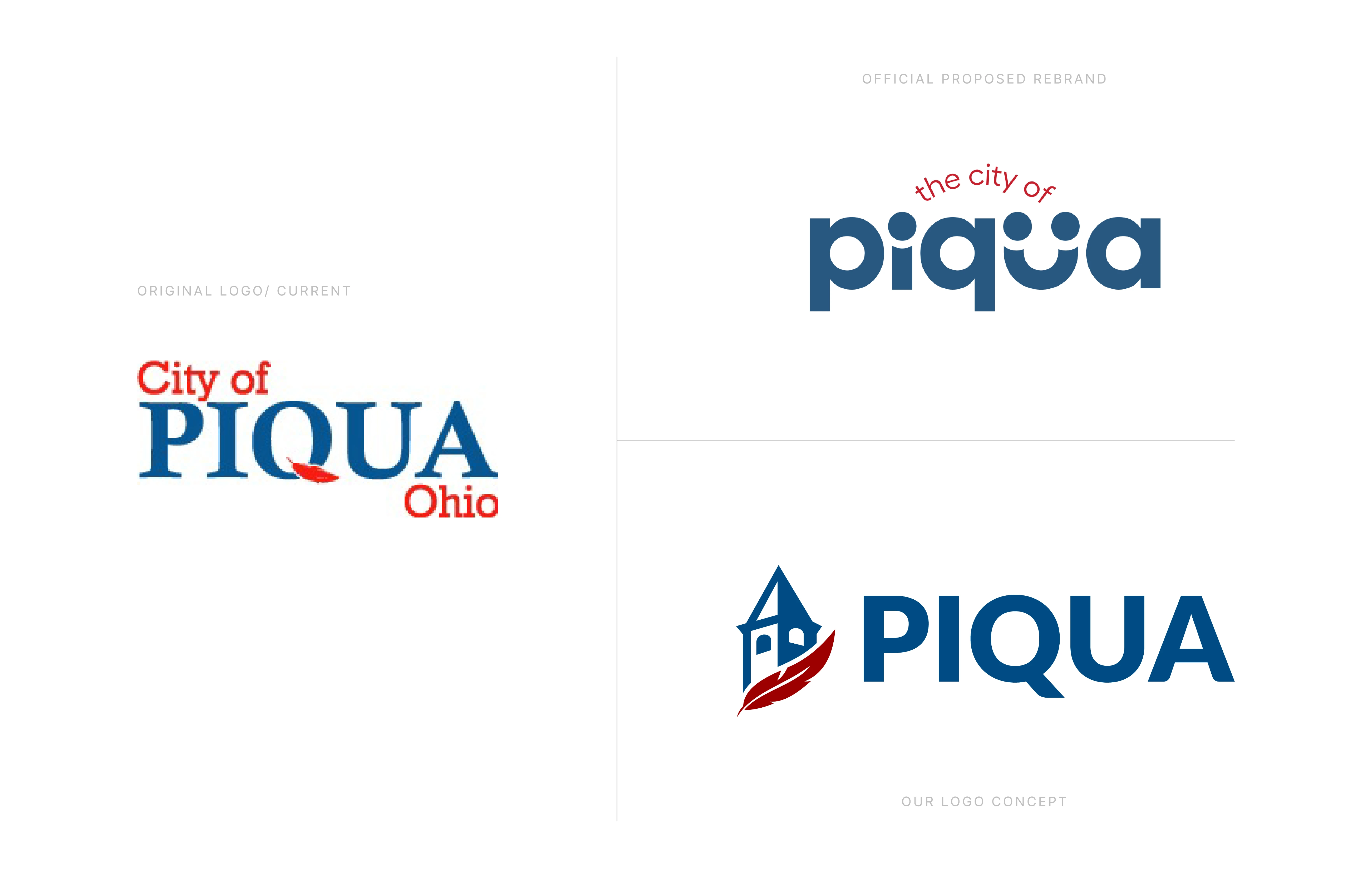 As I reviewed city forums, public discussions, and the shared research from the original rebrand effort, one theme surfaced consistently. Residents wanted an identity that tied back to Piqua’s history. Even subtle references mattered. People wanted to see themselves, their landmarks, and their story reflected rather than abstracted.