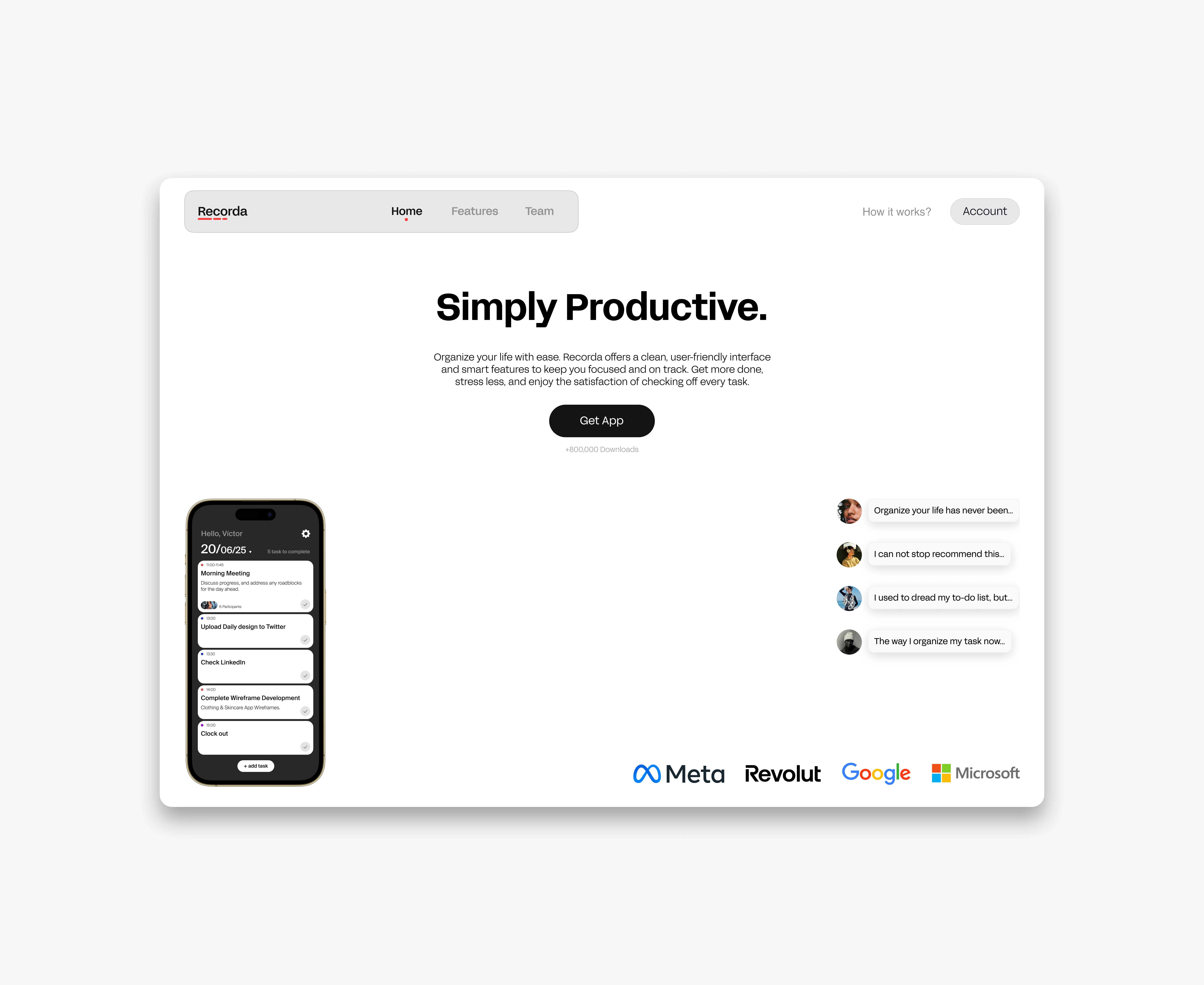 Designing an entire web and app for a task management application, with a strong emphasis on a clean, minimalist, and functional design.