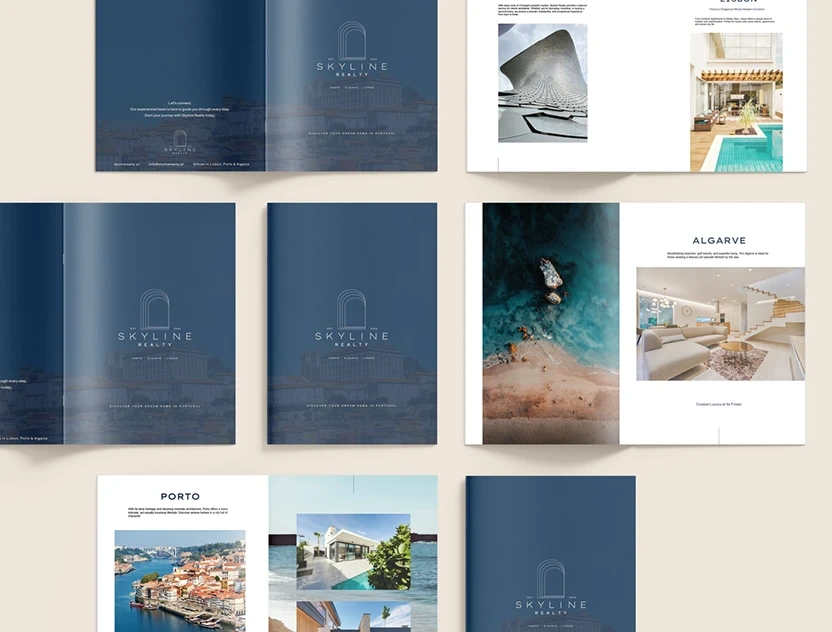 The new identity gave Skyline Realty a professional presence that aligned with their target market. The brochure has been successfully used at client-facing events, helping to position the company as a trustworthy and premium option for luxury real estate in Portugal. Since launching the new branding, Skyline Realty has attracted new interest from high-end international buyers and partners.