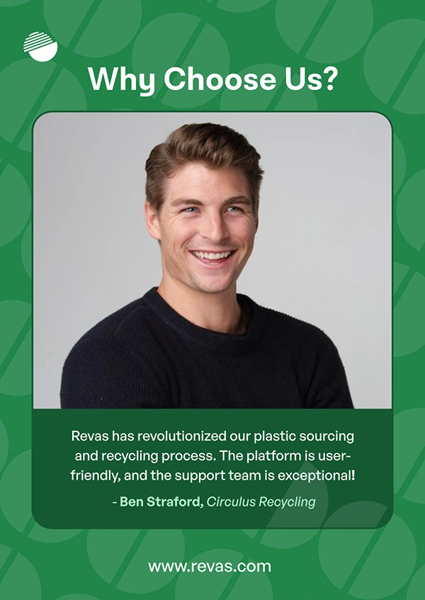 Revas Plastic Exchange provides a digital platform that connects buyers and sellers of recycled plastics worldwide.