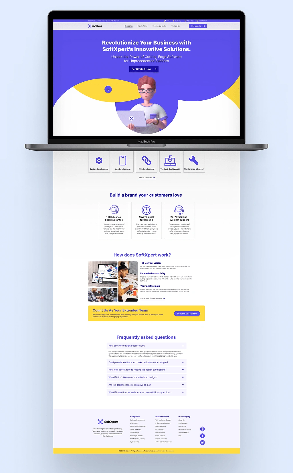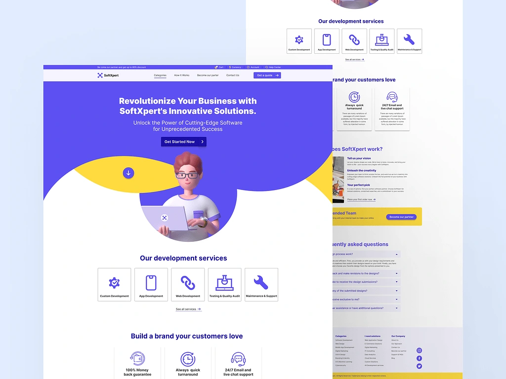 I created a landing page design concept for a Software Development Company. For the color palette, I have chosen two main color combinations blue and yellow.