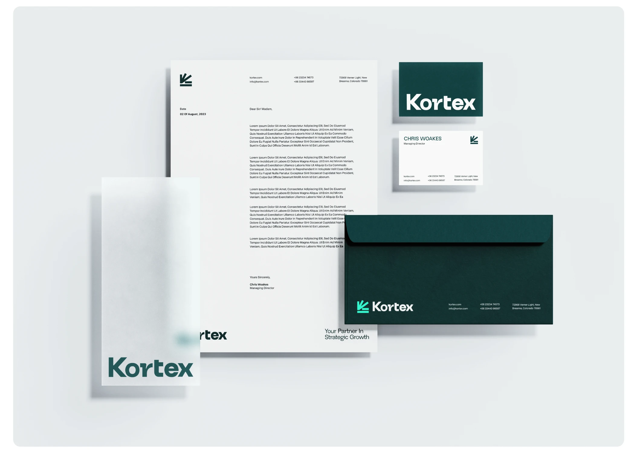 Brand Identity design for Kortex, a forward-thinking business consulting firm dedicated to driving exceptional results