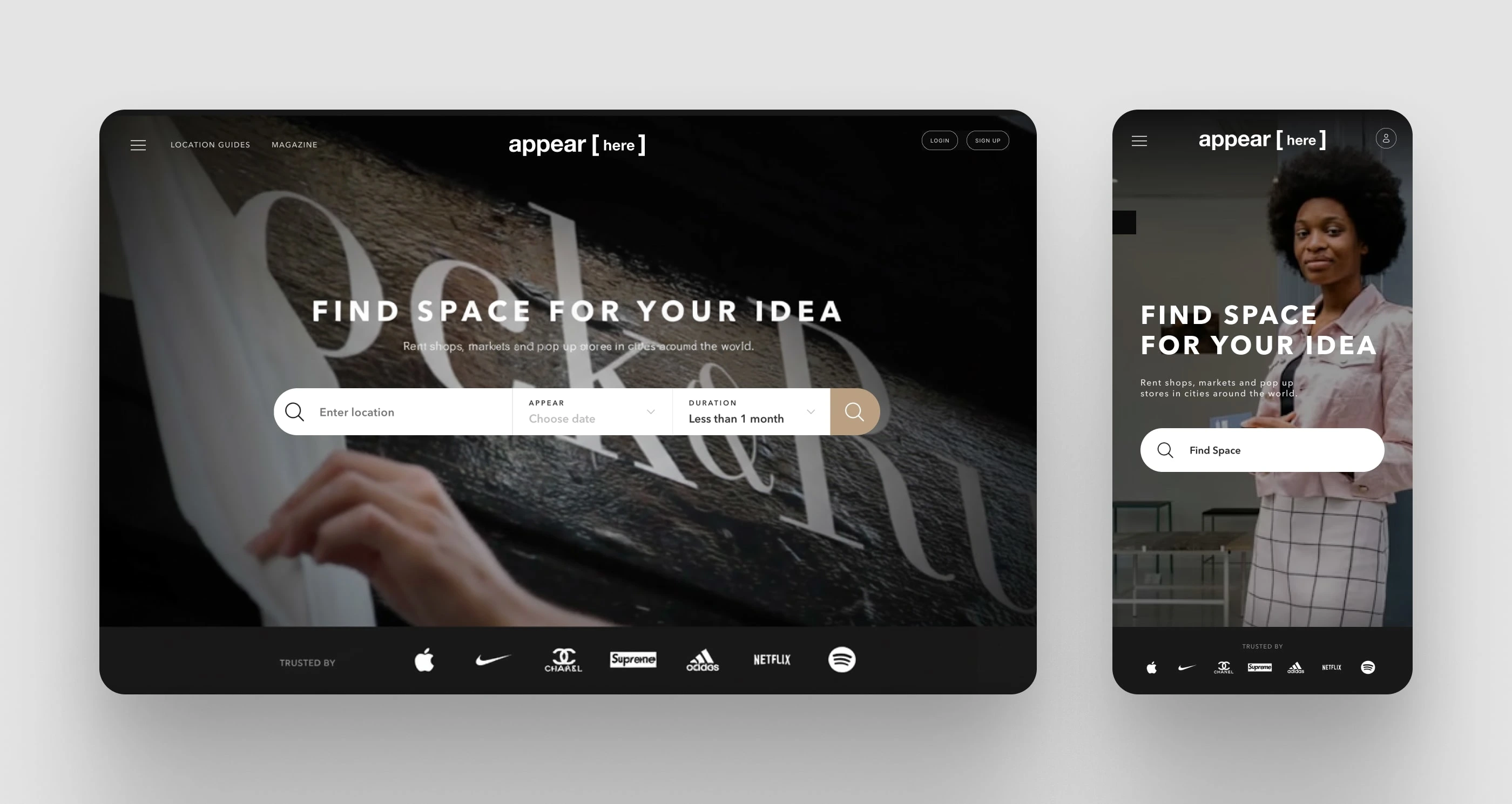 appear [here] is the brainchild of entrepreneur Ross Bailey (who happened to be an ex-student of mine), and is an online marketplace for retail space. Using the idea of the 'pop up' as its core concept and by utilising empty retail units, it allowed creative startups and brands to showcase their ideas and products with ease and speed. Since the company was founded in 2014, it has facilitated the opening of over 10,000 stores in the UK, US, and France.