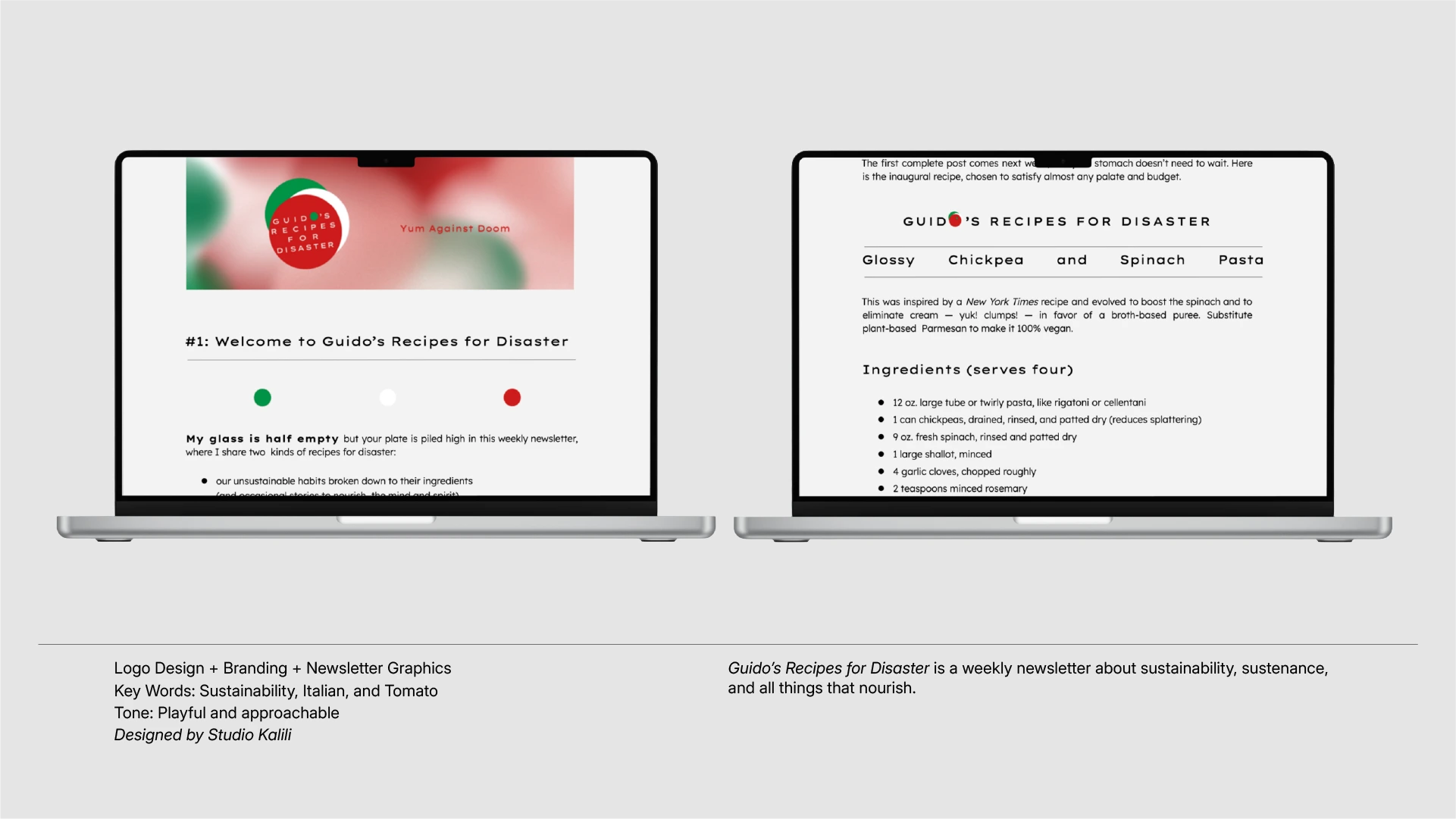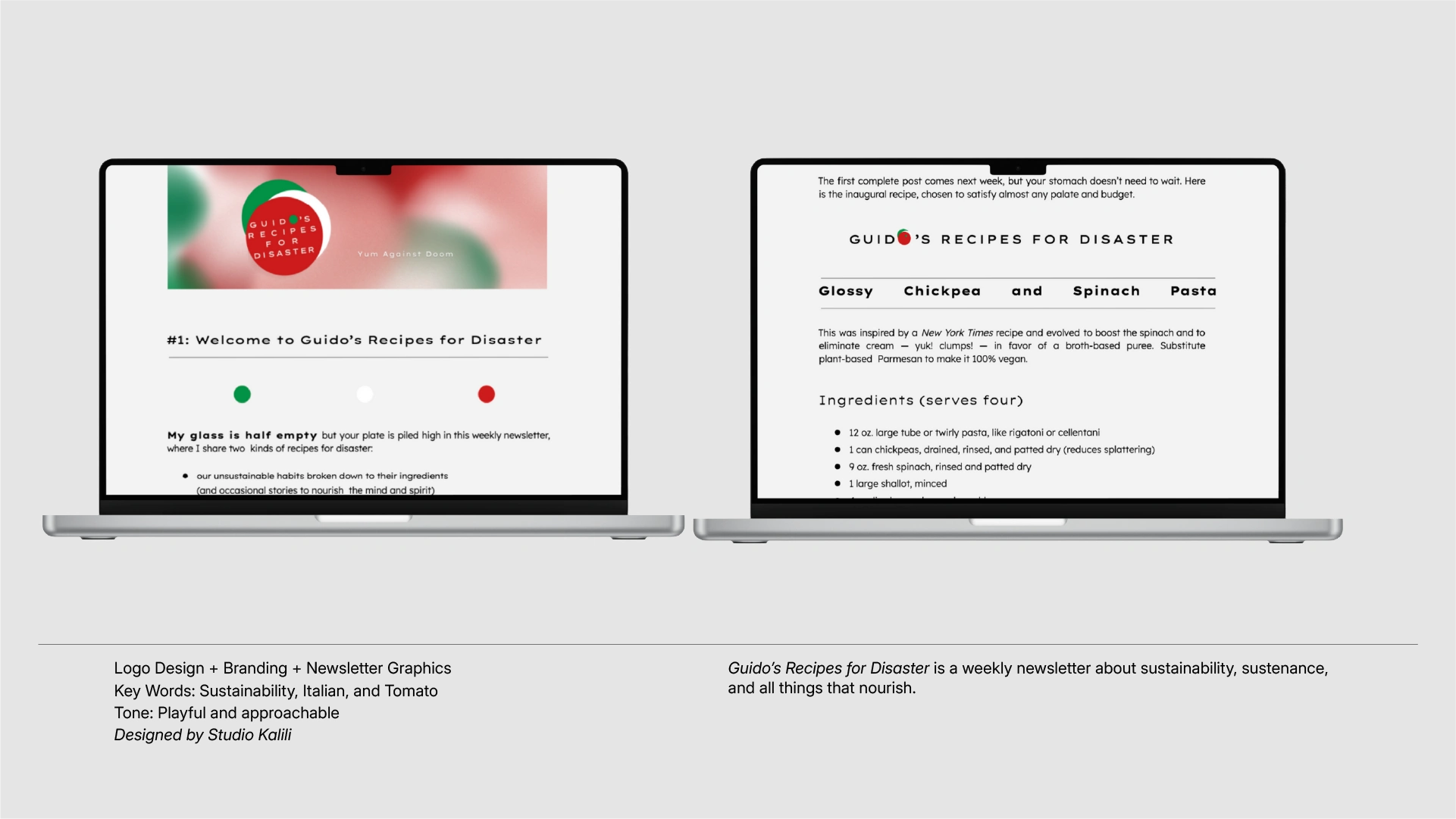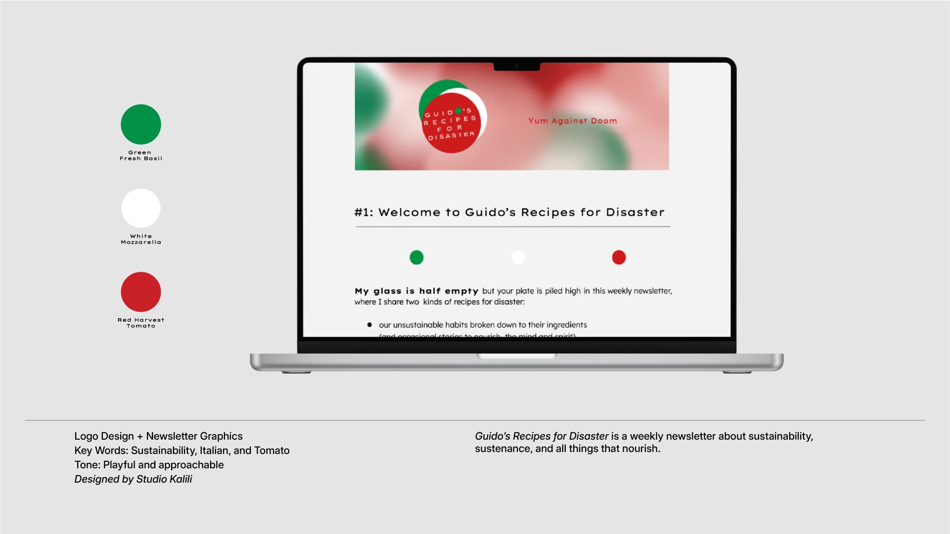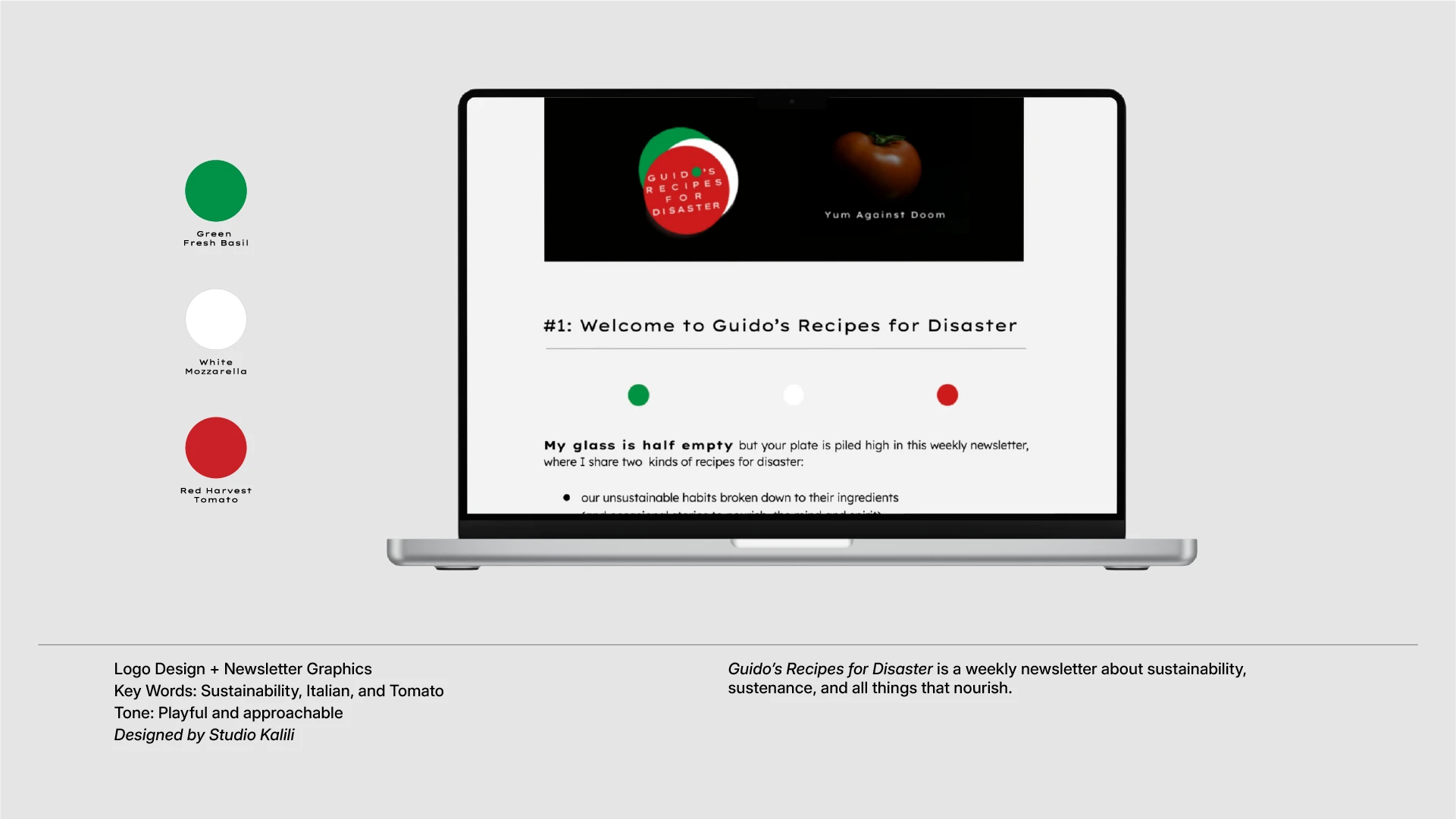 Guido’s Recipes for Disaster is a weekly newsletter about sustainability and all things that nourish. I designed the logo and created templates and graphics.