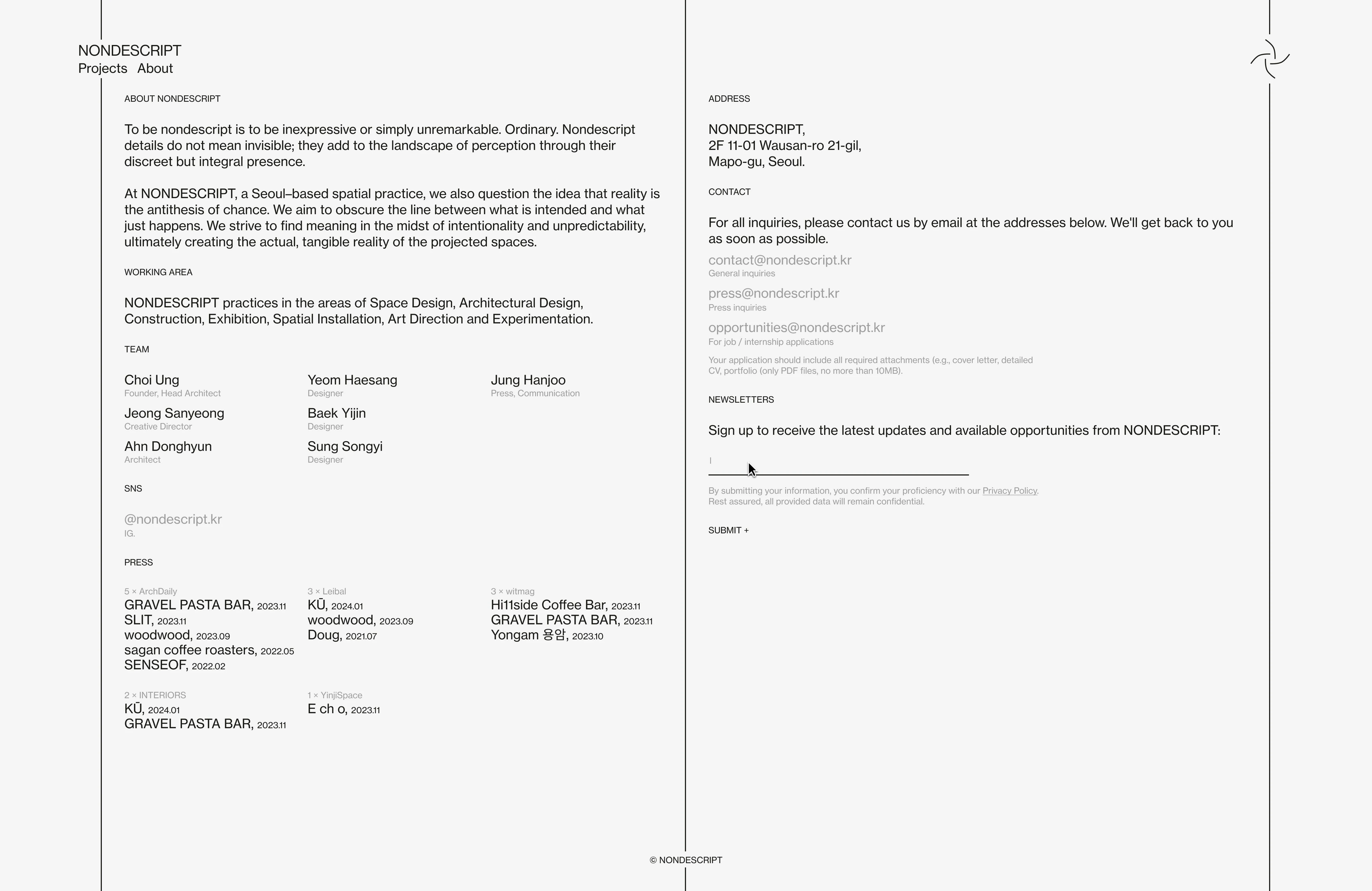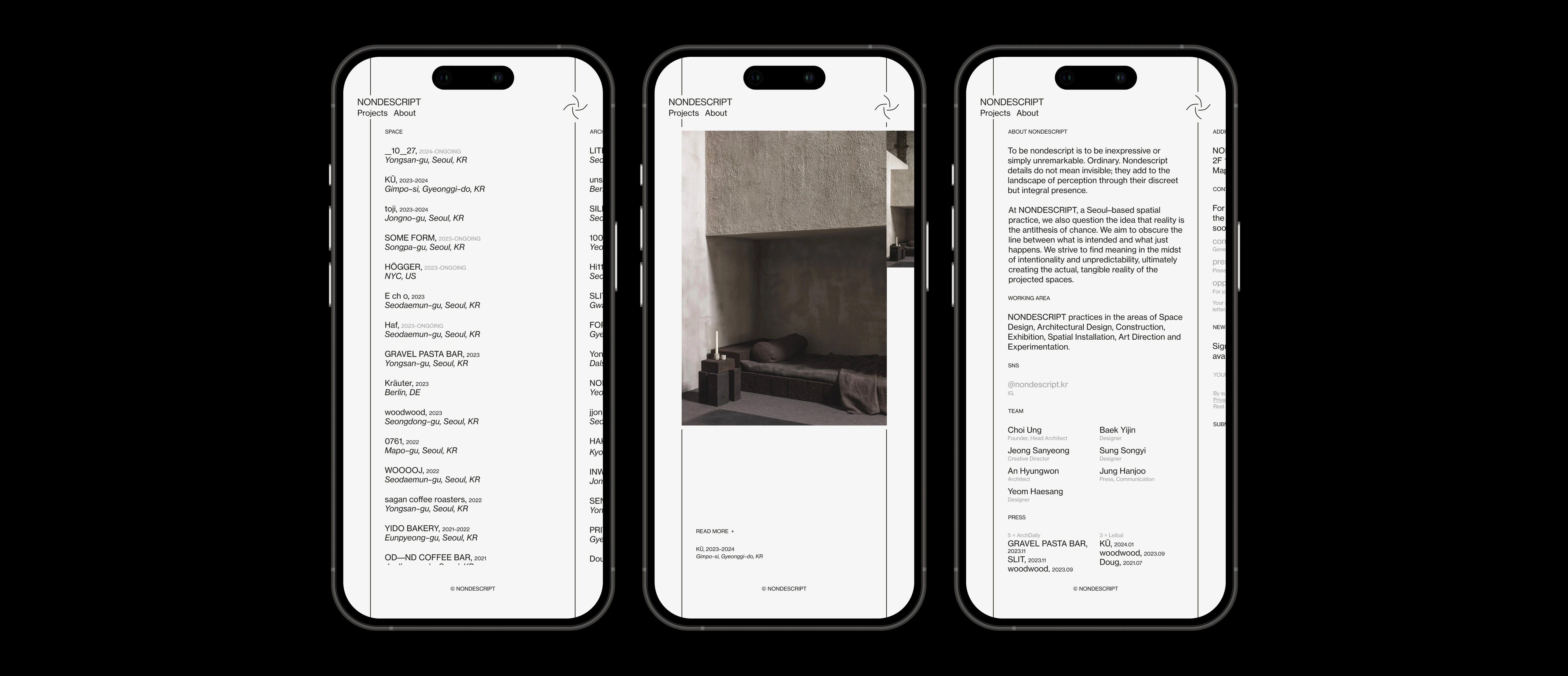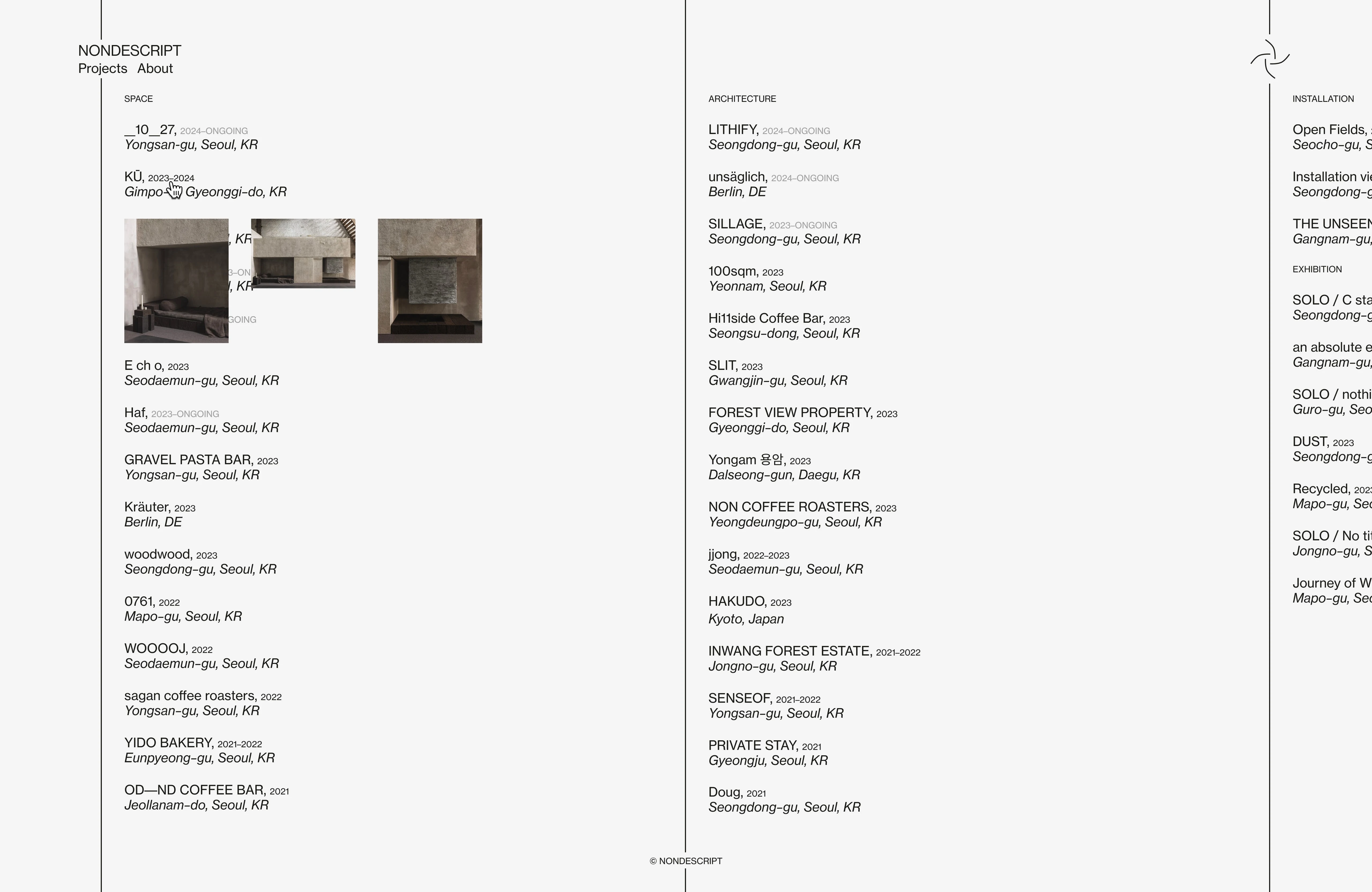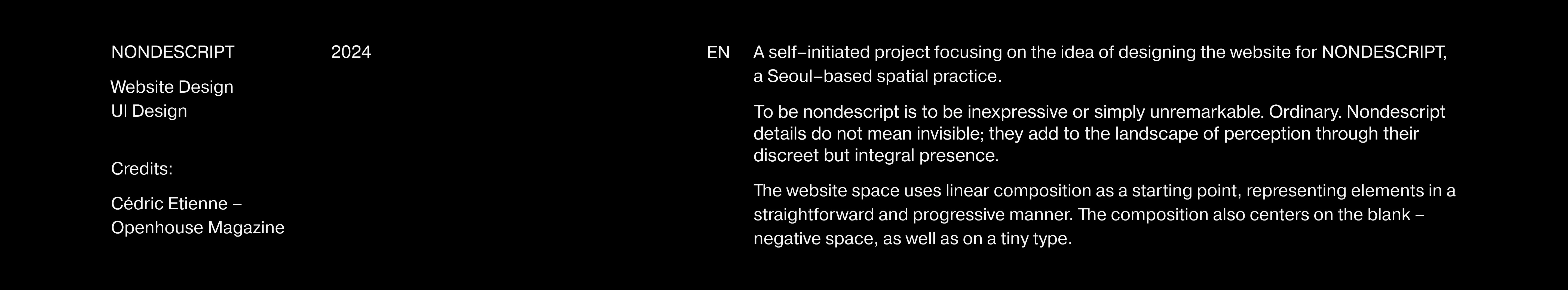 A self–initiated project focusing on the idea of designing the website for NONDESCRIPT, a Seoul–based spatial practice.
