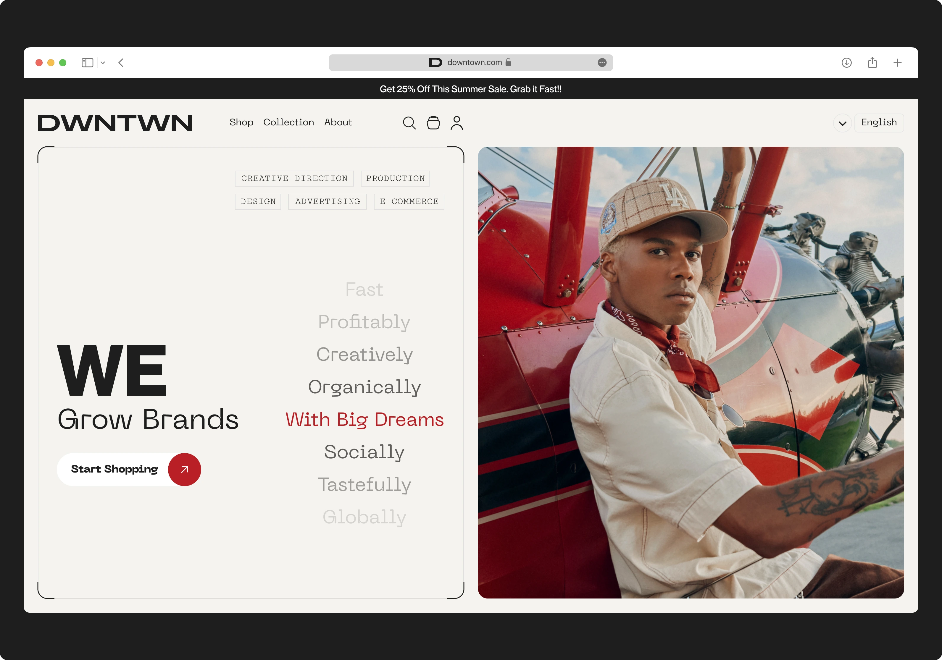 The goal was to create a landing page and shopping experience that captures Downtown’s streetwear identity, showcasing the collection in a way that feels simple, dynamic, and engaging. The redesign aims to make browsing and purchasing feel natural while reflecting the brand’s bold, urban personality.