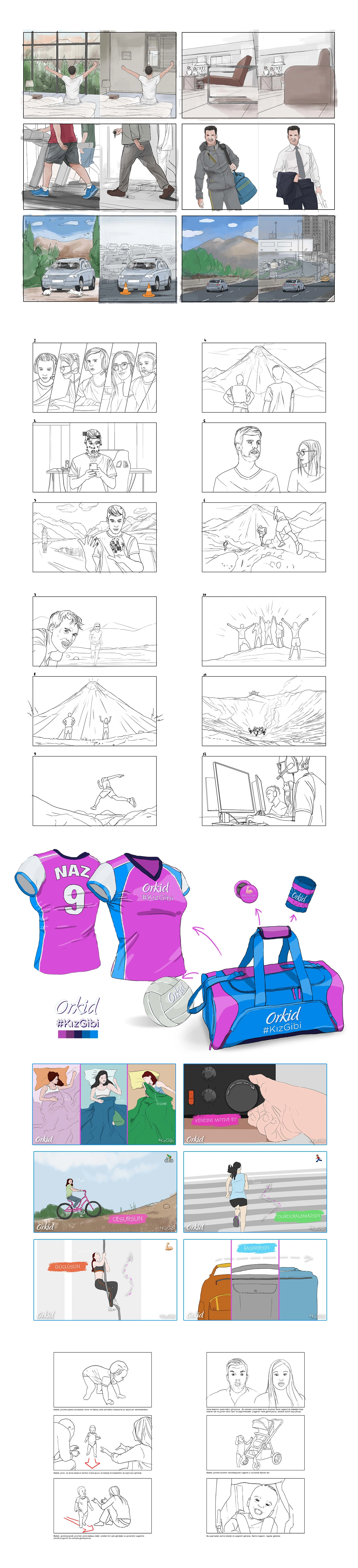 Examples of storyboards for 4 different advertising campaigns