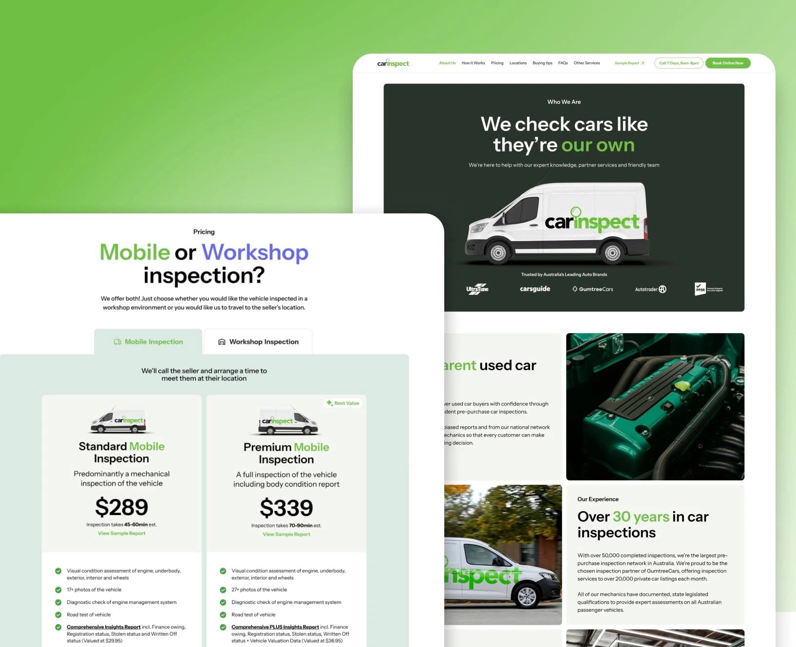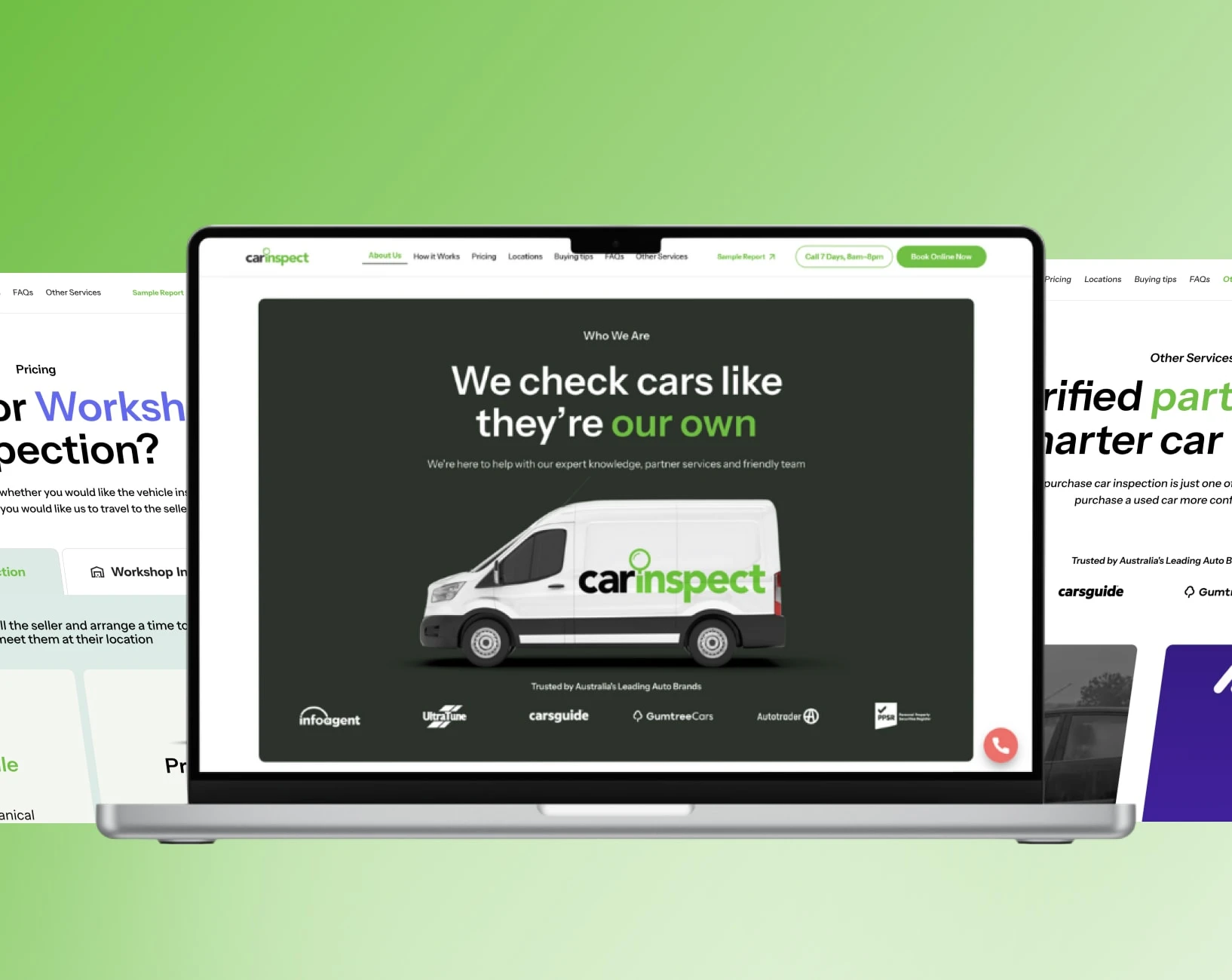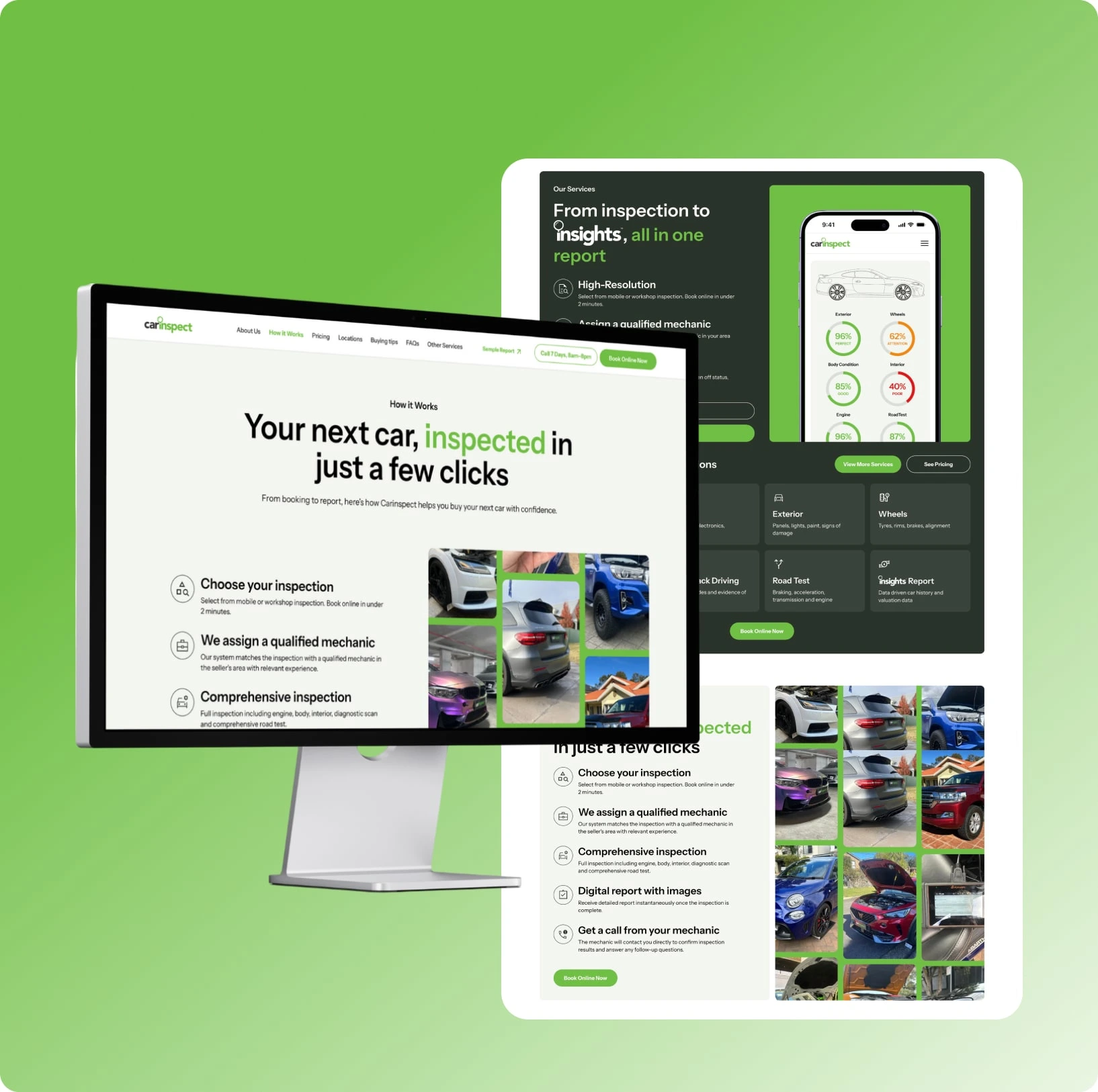 Redesigned Carinspect's website to boost customer confidence and modernise visual identity.