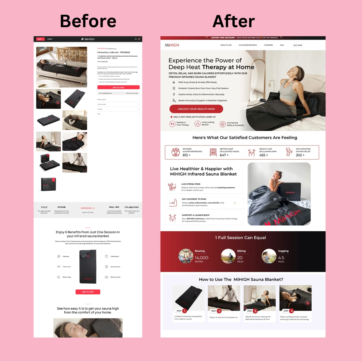 Designed a clean, conversion-focused Shopify landing page for Sauna Blanket landing page to boost sales with strong CTAs, product highlights, and seamless UX.