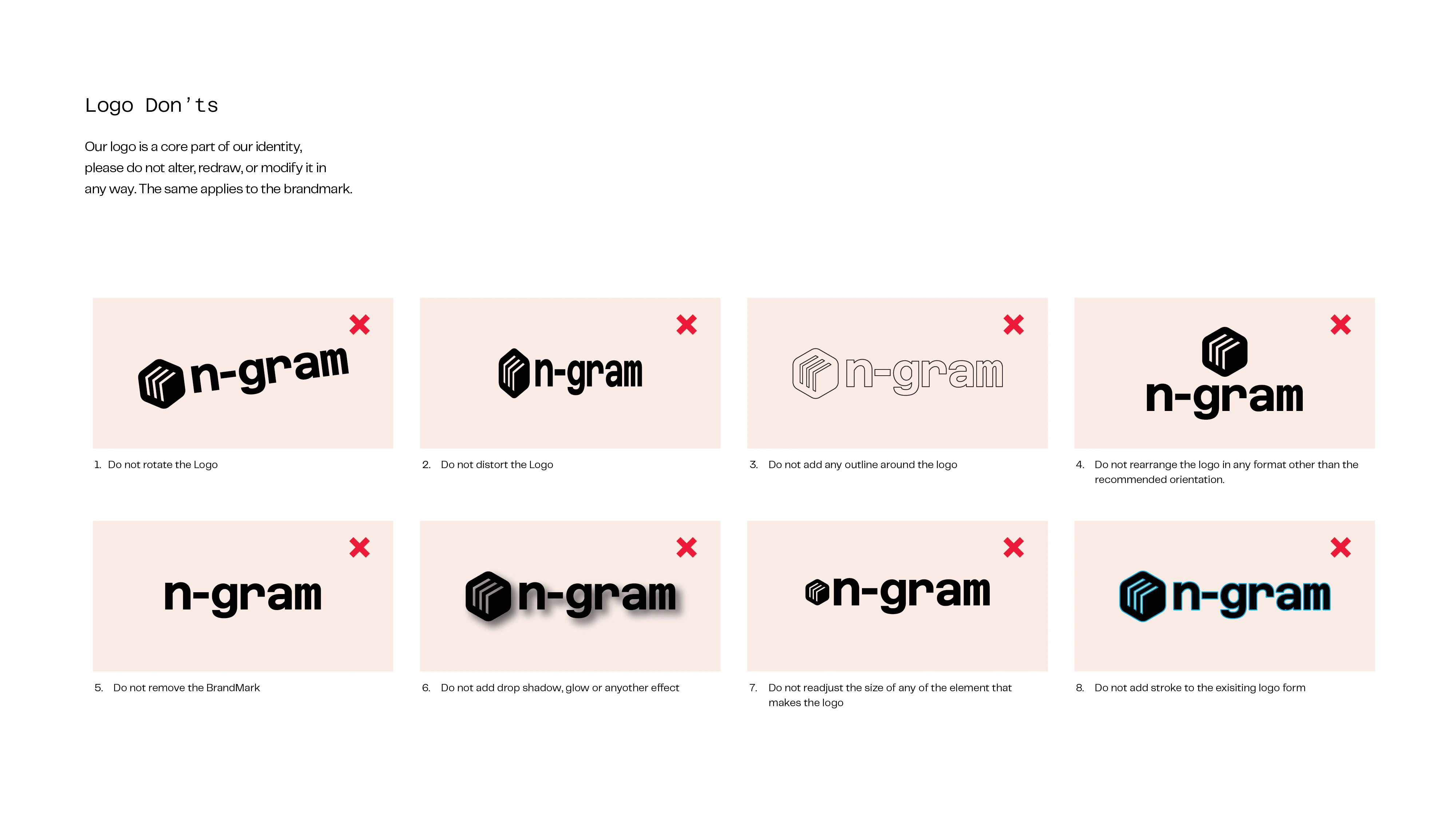 The visual language was built for scalability, adapting seamlessly from product UI and dashboards to marketing materials, investor decks, and social media. The result is a cohesive, future-proof identity that communicates N-gram’s commitment to making AI-powered auditing more human, accessible, and impactful.