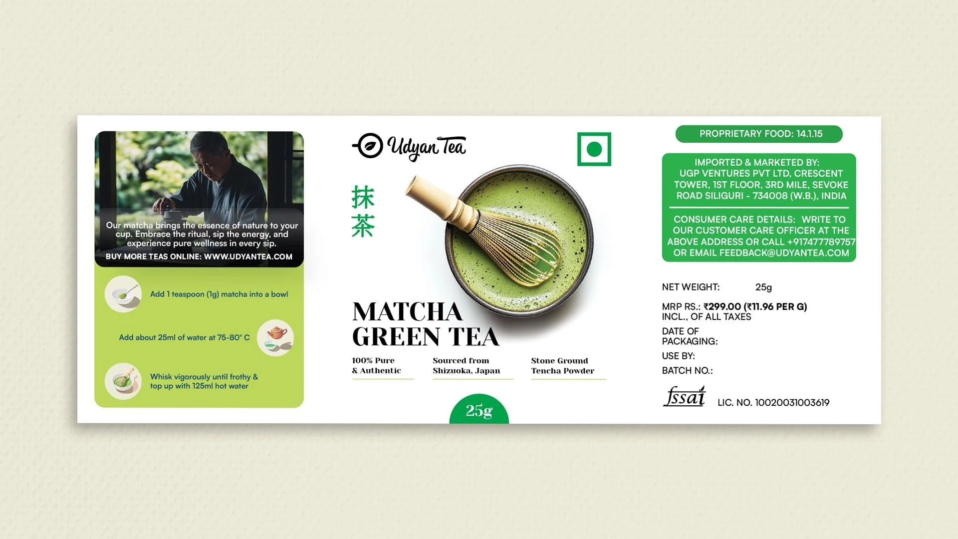 The client needed standout packaging for a new line of matcha tea, entering a highly competitive market. Lack of distinct branding risked poor shelf presence and failure to attract health-conscious tea buyers.