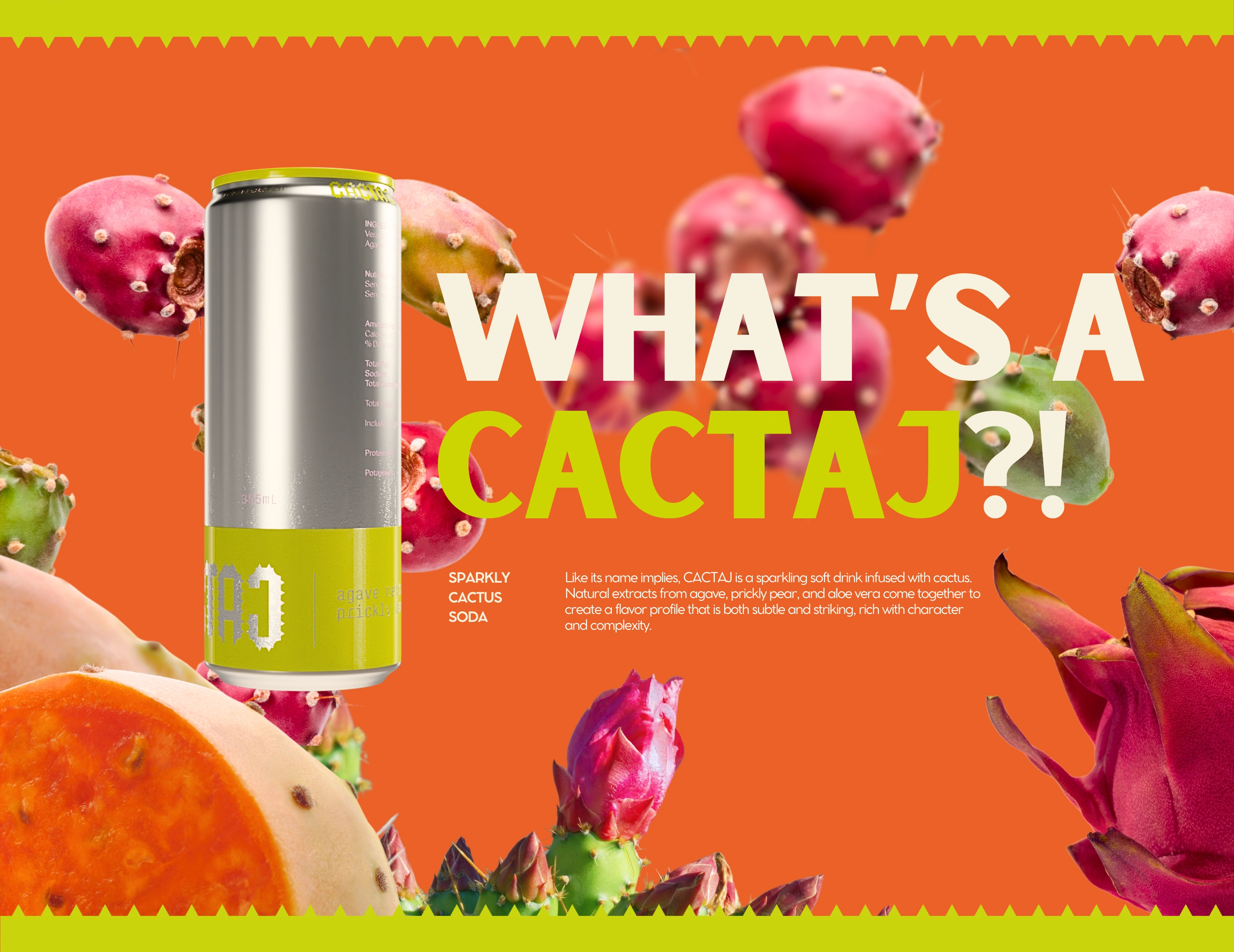 Finished visual identity for a cactus based soft drink. https://oleras.digital/portfolio/cactaj-sparkling-soft-drink/