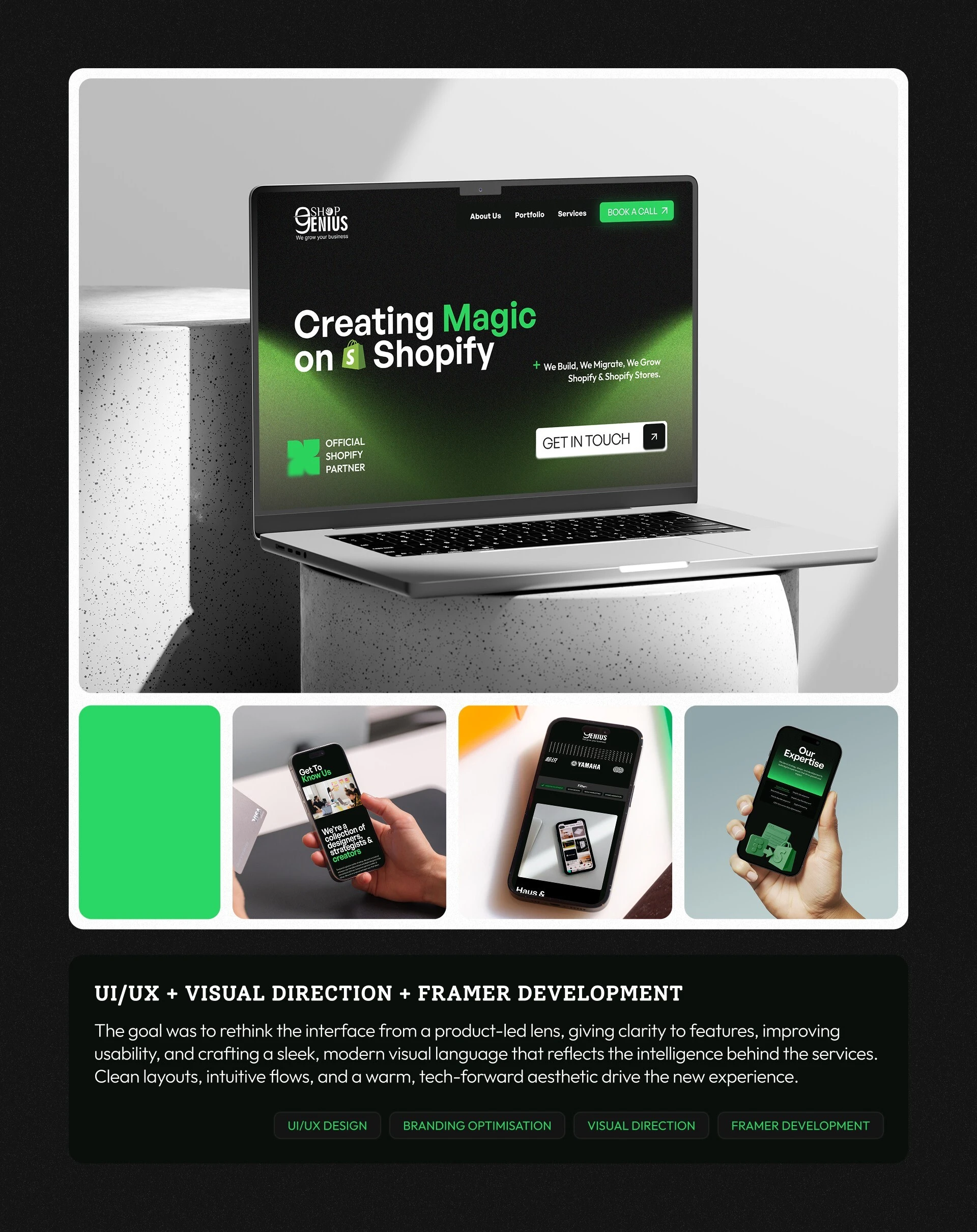 Eshop Genius, a service-based agency website, was falling short due to a cluttered layout, confusing navigation, and lack of visual appeal. The site felt outdated, and the brand’s value wasn’t being communicated clearly — resulting in low engagement and weak lead generation.