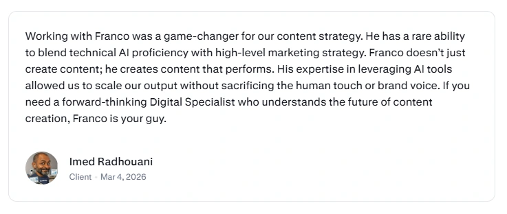 Rankfender´s Messaging Audit: Reframed positioning from monitoring to "AI Erasure". Optimized hooks and CTAs, resulting in a 5-star review for strategic impact.