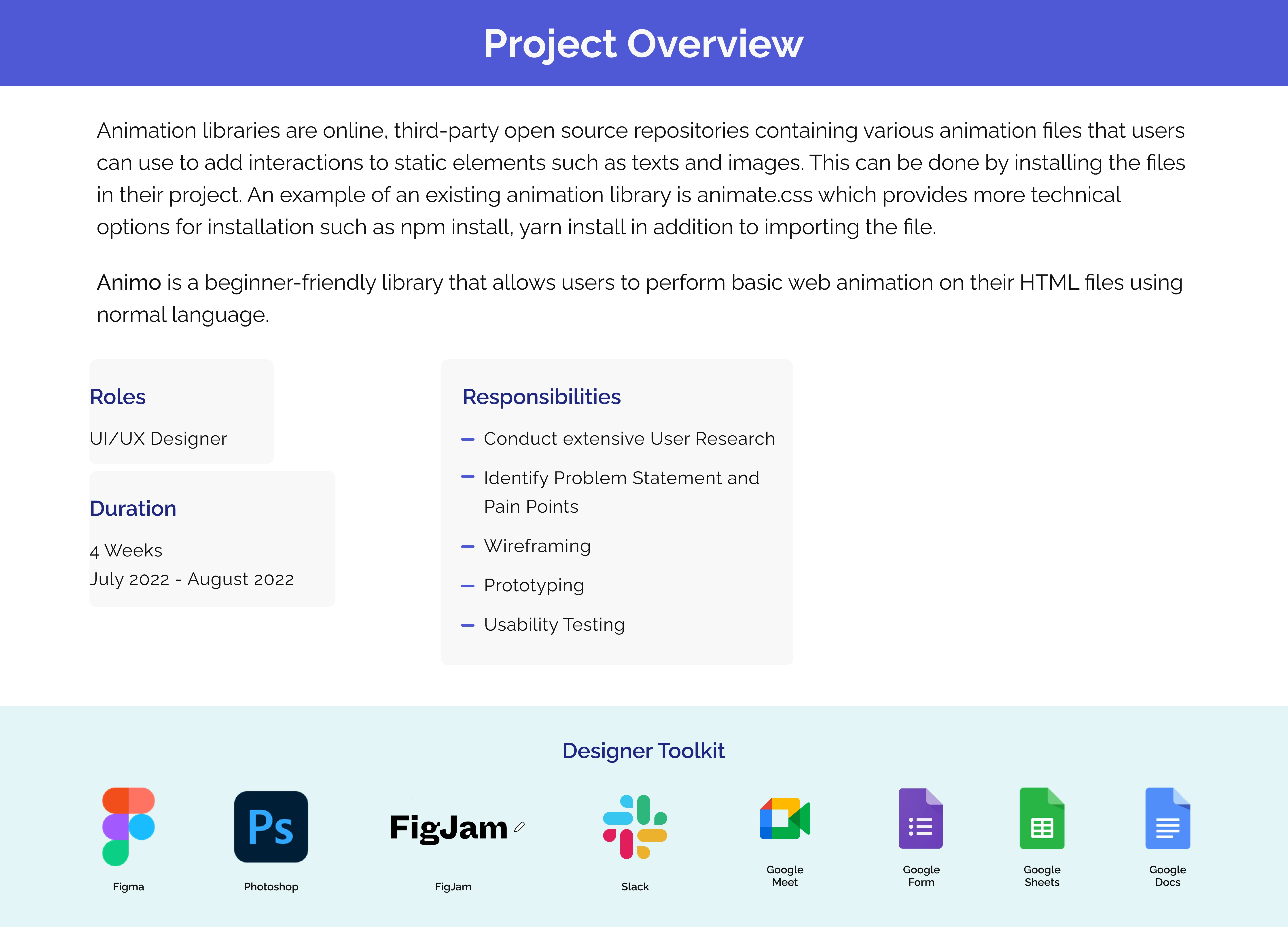 Led design for a beginner-friendly animation library that allows developers to perform basic web animations on their html files using normal language.