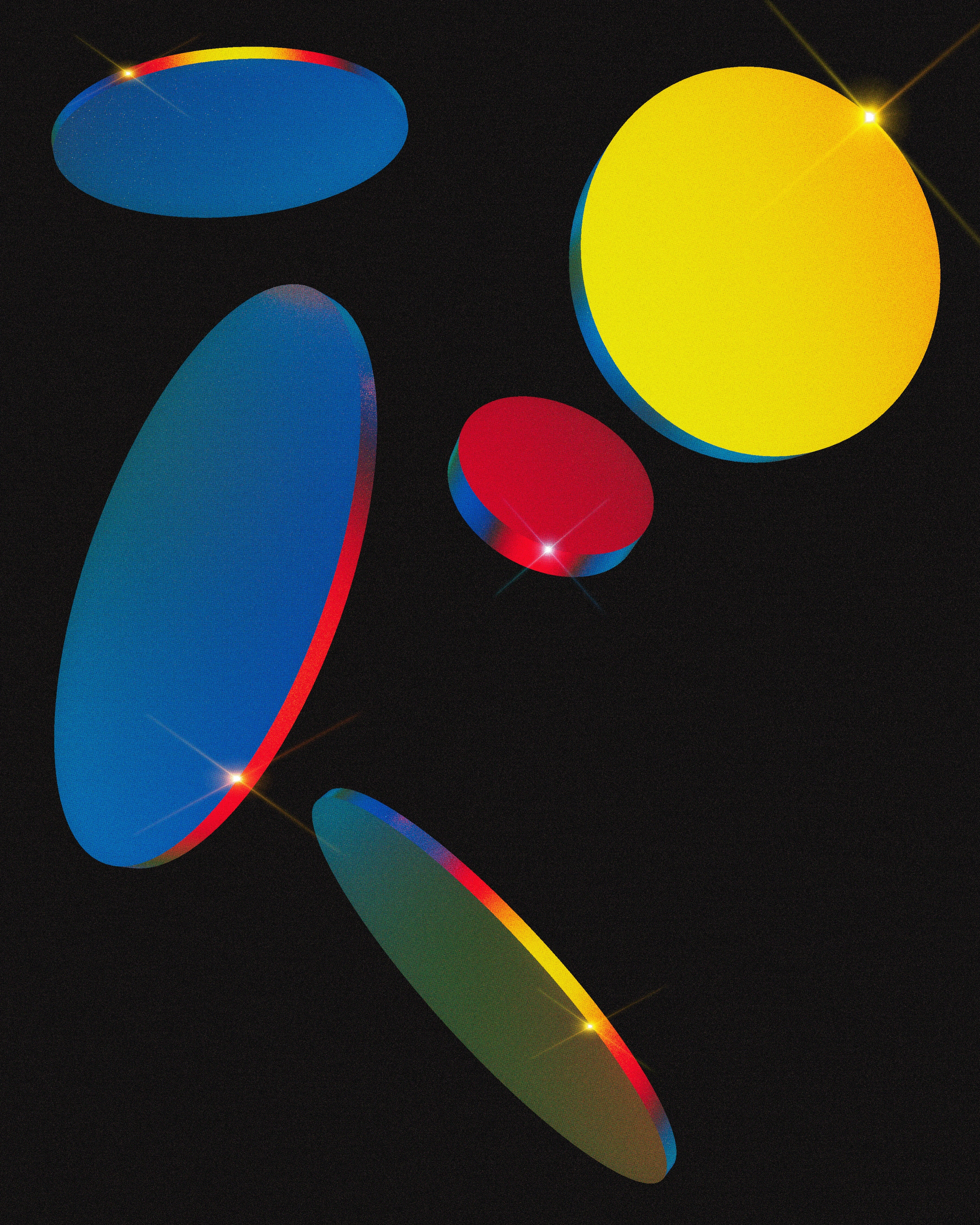 My first experiments with gradient colours, light, and texture using 3D software.