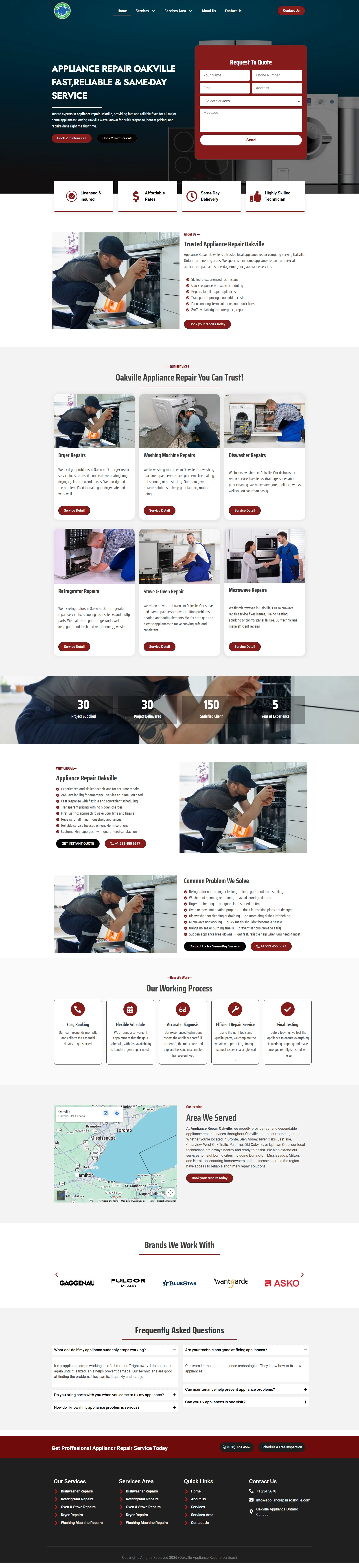 WordPress website for an appliance repair business in Canada. Includes service pages, contact form, responsive design, and local SEO