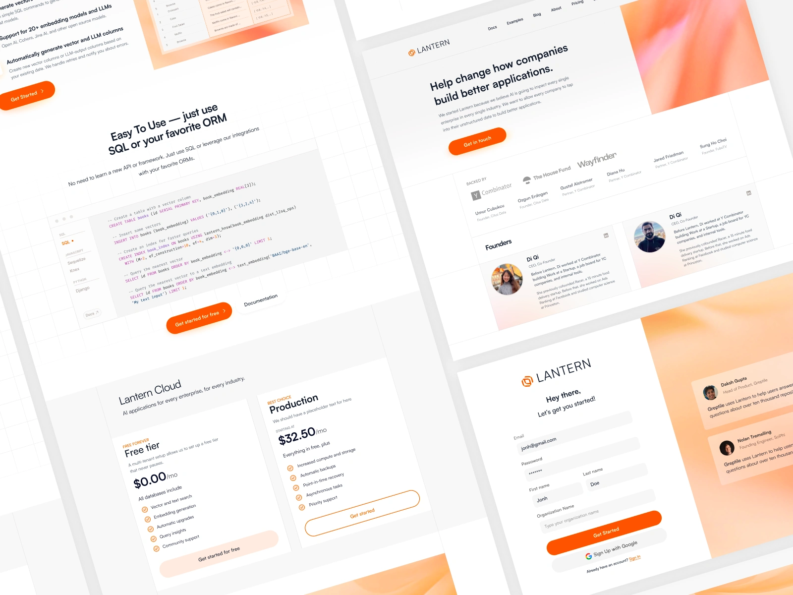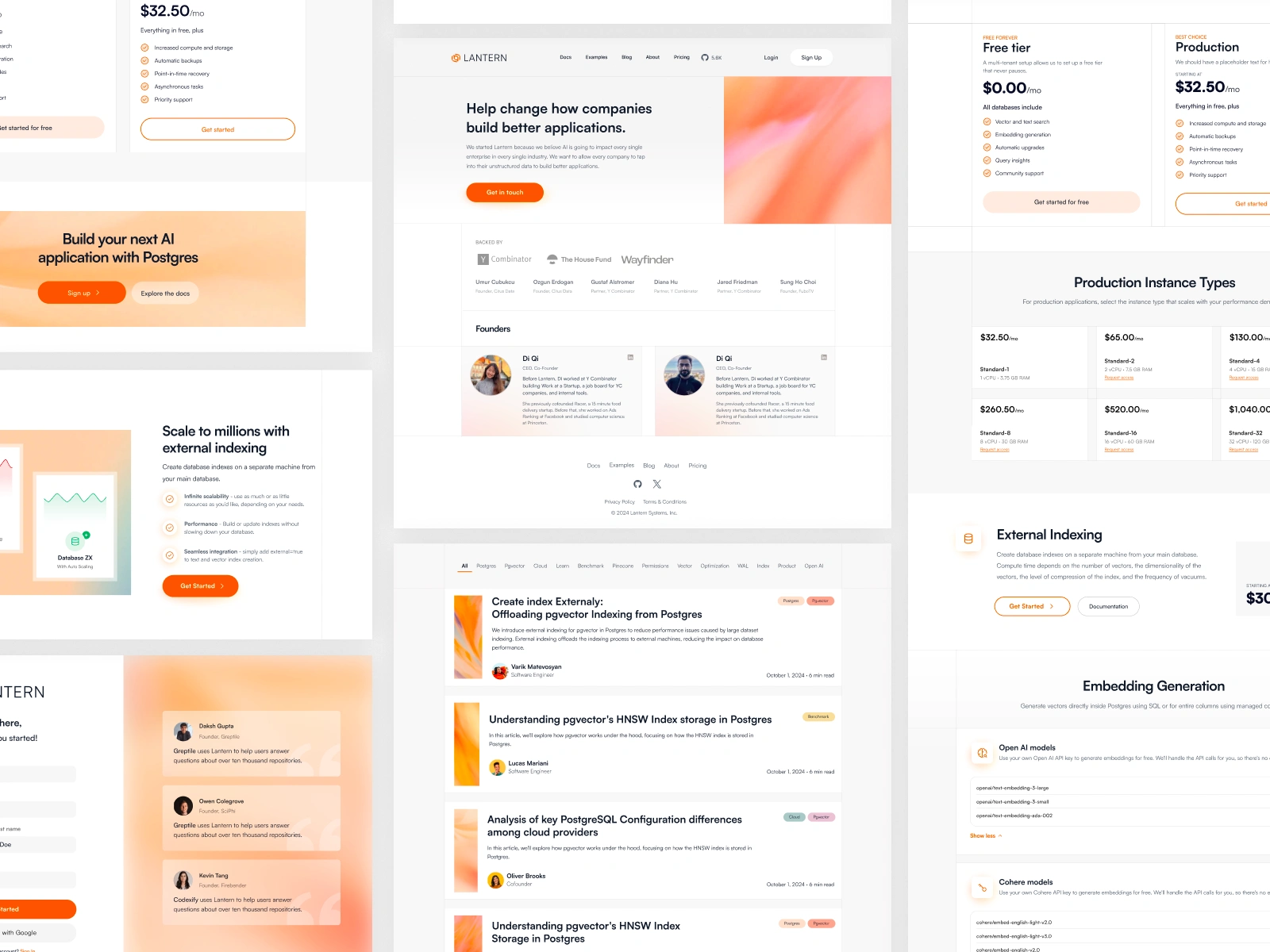 I've just redesigned the Lantern website for Numi. Lantern Cloud is an open-source Postgres vector database.