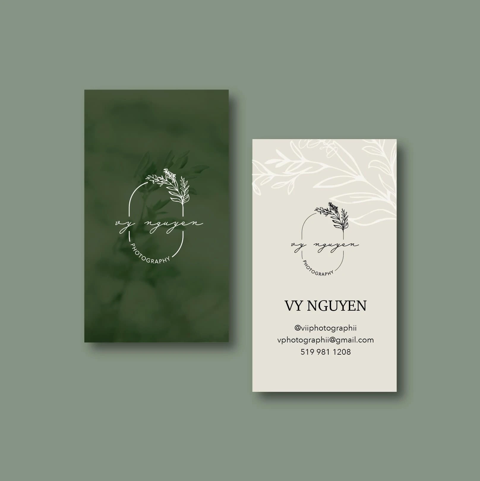 A delicate, modern, and organic feel, created and perfected for a photography brand with a refined artistic touch. The elegant script typography adds a personal, handcrafted quality, while the minimalist circular layout creates balance and sophistication. The botanical illustration reinforces a natural and timeless aesthetic, appealing to clients who appreciate authenticity and beauty. The deep green background enhances the brand’s connection to nature, evoking a sense of tranquility and creativity.